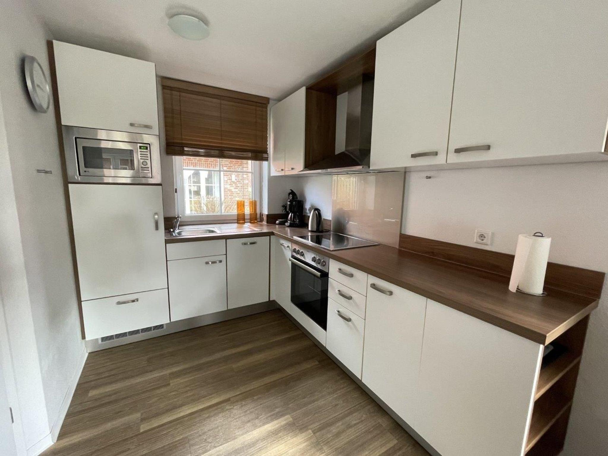 Vollständig ausgestattete Küche mit Backofen, Ceranfeld, Geschirrspüler, Kühlschrank mit Gefrierfach, Mikrowelle, Kaffeemaschine, Eierkocher, Toaster, Wasserkocher und allen weiteren notwendigen Utensilien.