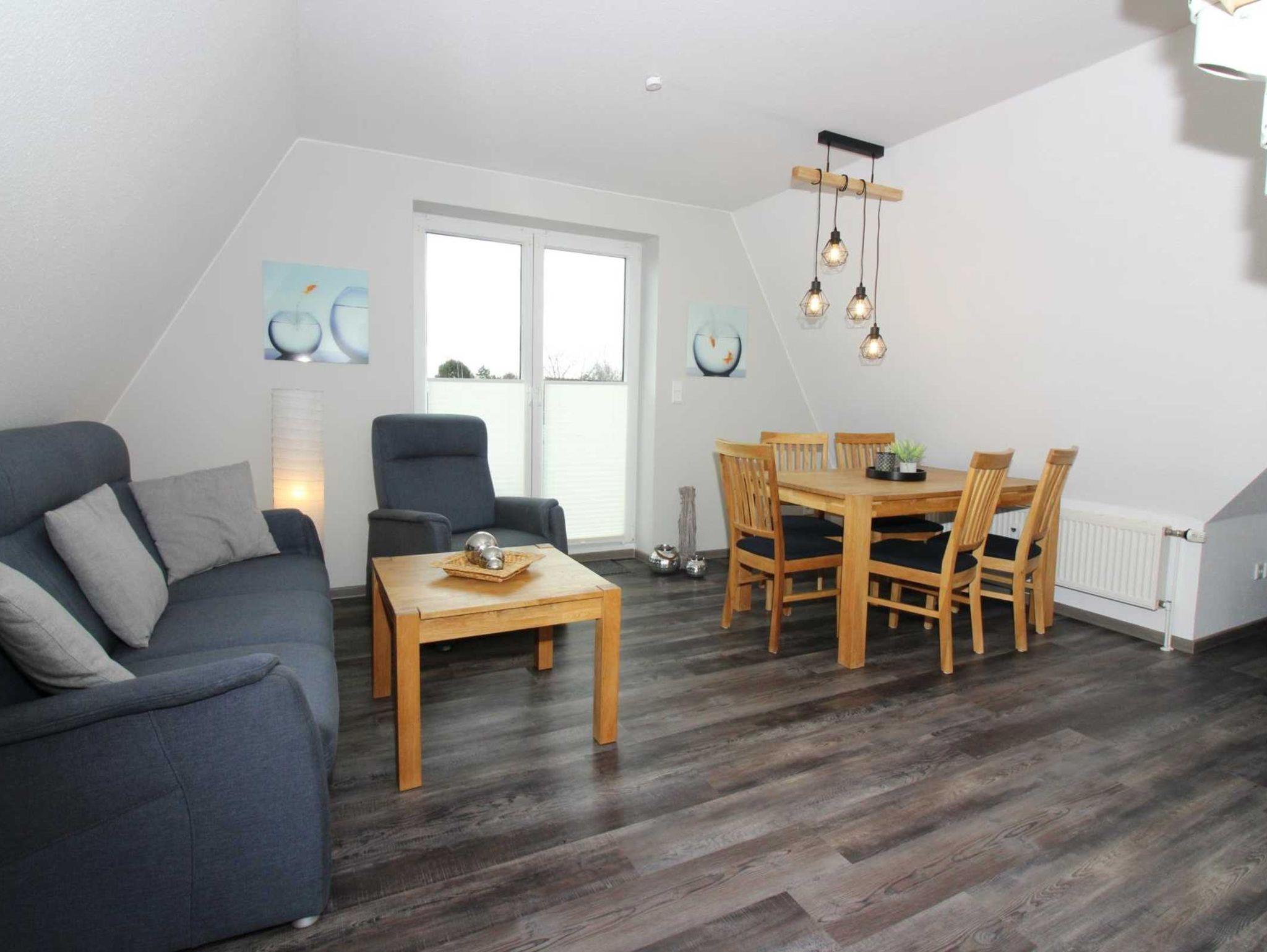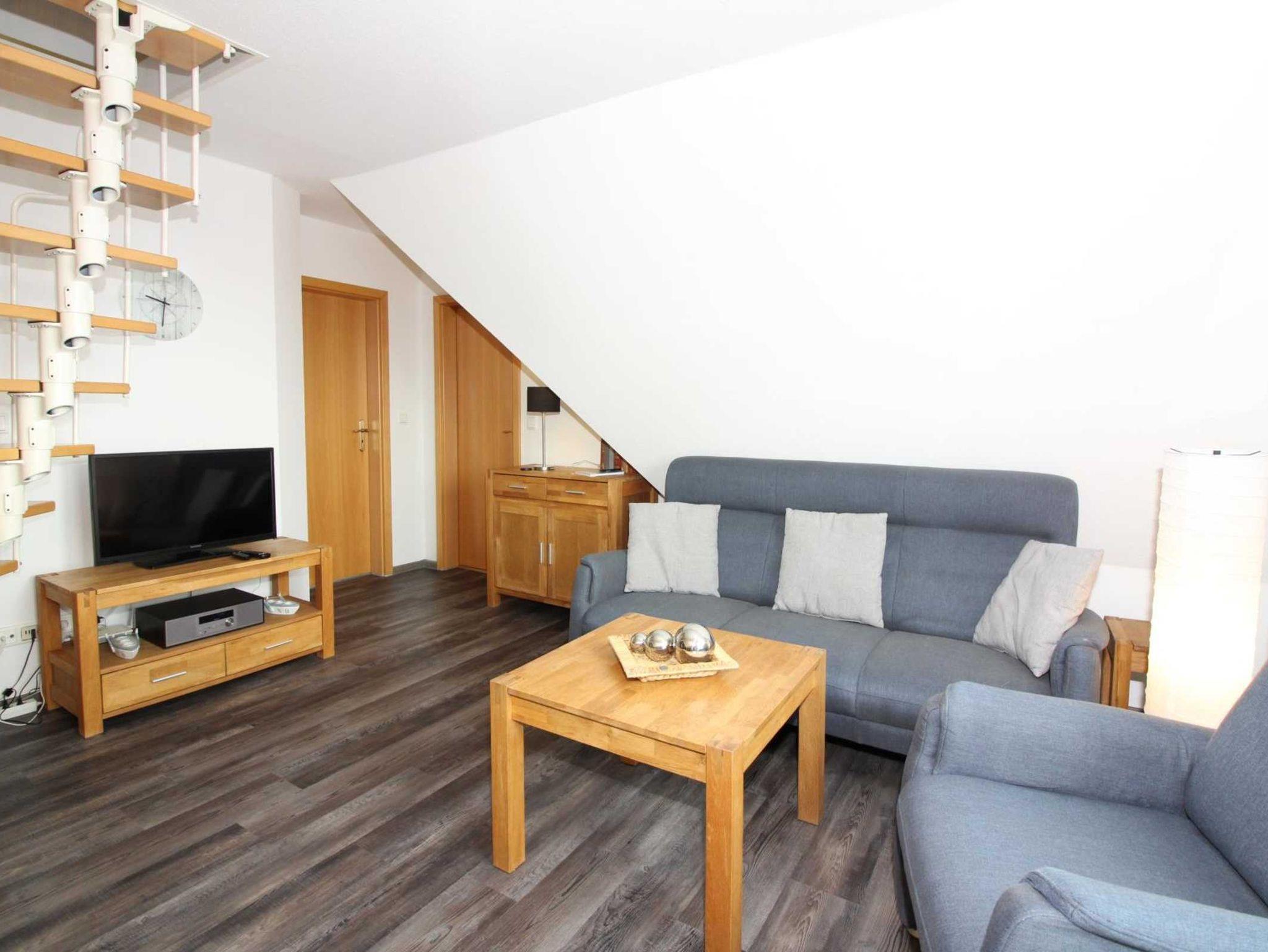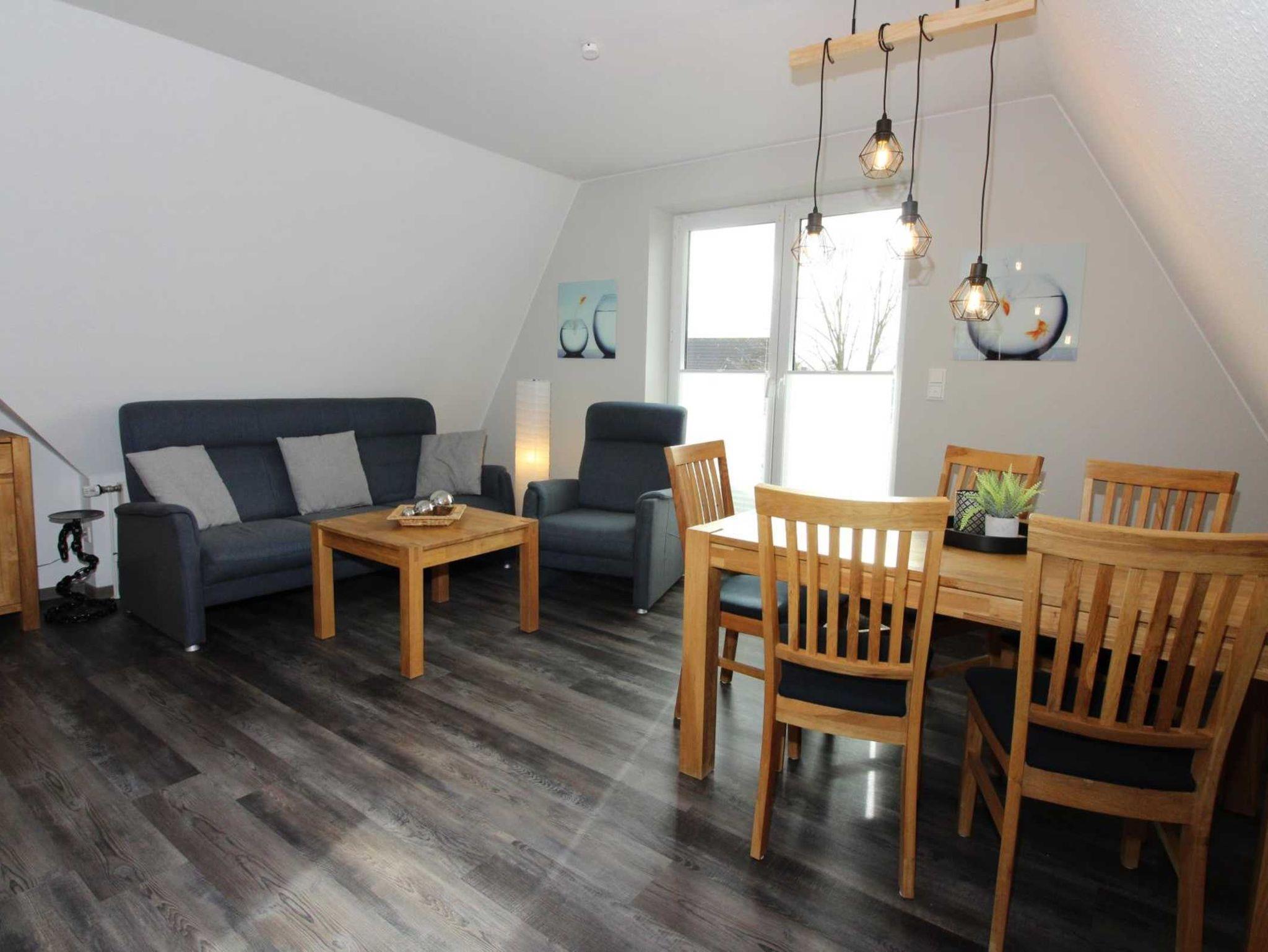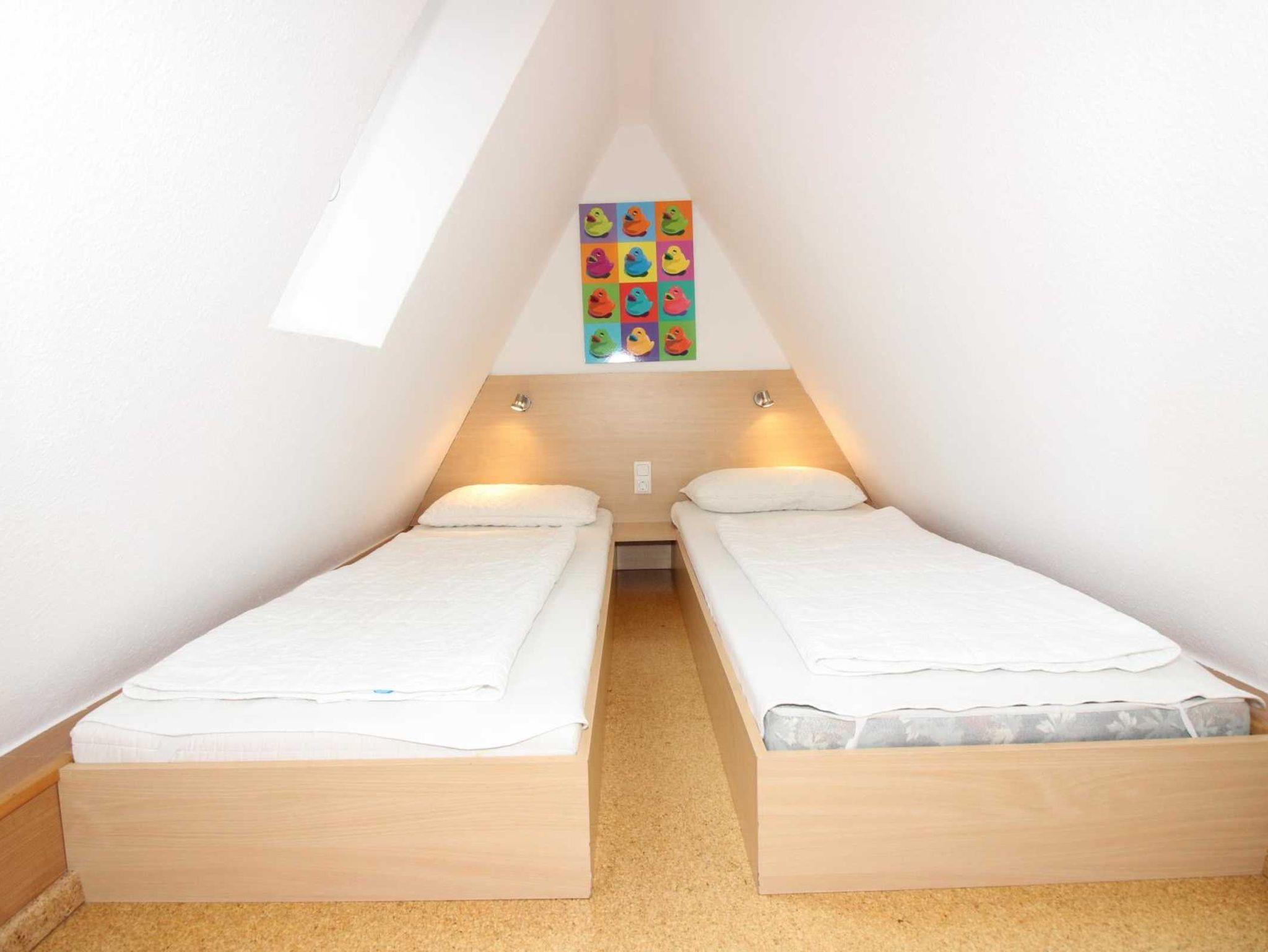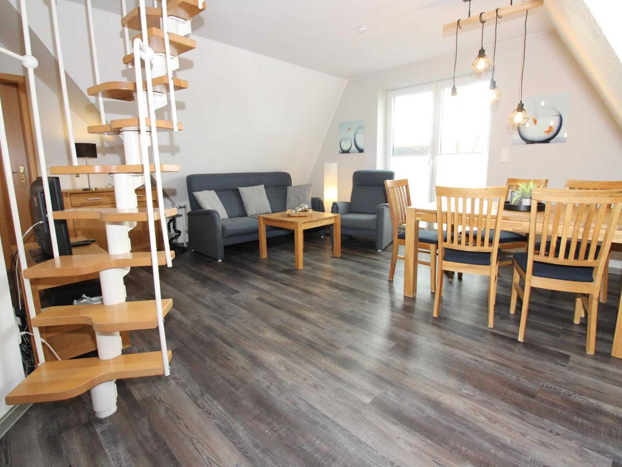 Besonderheit ist der ausgebaute und über eine Wendeltreppe zugängliche Spitzboden mit zwei Betten. Welche Kids könnten hier widerstehen, zumal der Blick aus dem Dachfenster über den Deich auf das offene Meer geht.