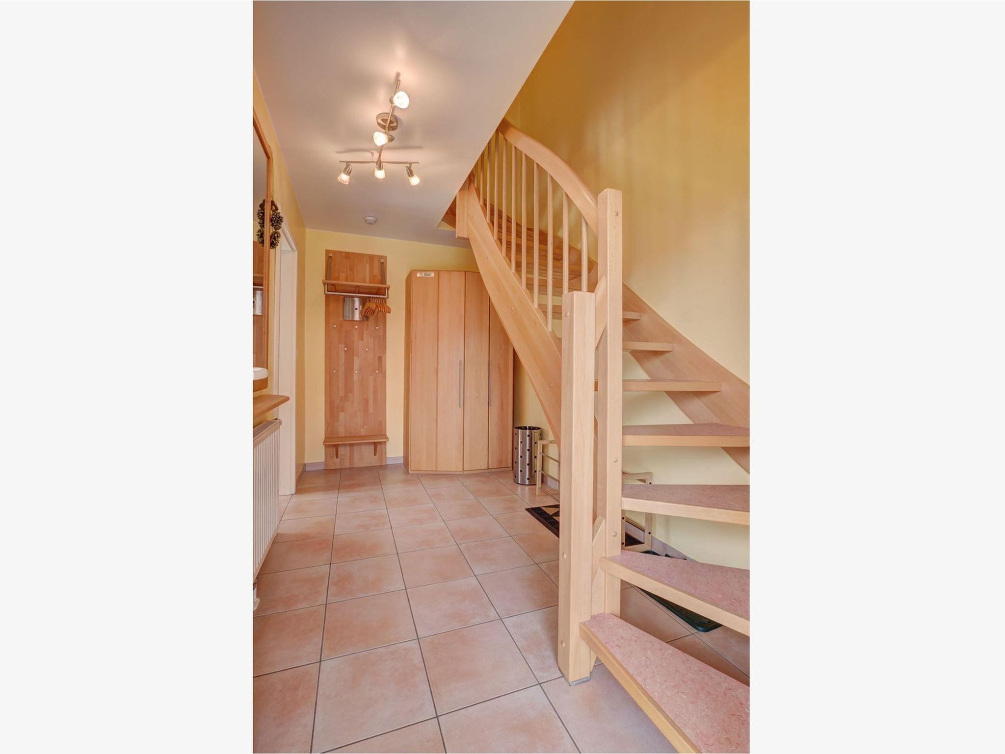 Im Erdgeschoss erwartet Sie ein großzügiger Wohnraum mit komfortablen Couchmöbeln, einem Fernseher, Schränke, sowie die offene, vollständig ausgestattete Küche mit Esstisch. Von hier können Sie auf Ihre private Terrasse treten, welche voll möbliert ist und Sie zum gemütlichen Zusammensitzen einlädt. Ein Badezimmer mit Dusche, WC, Waschbecken und Ihrer eigenen Sauna.
