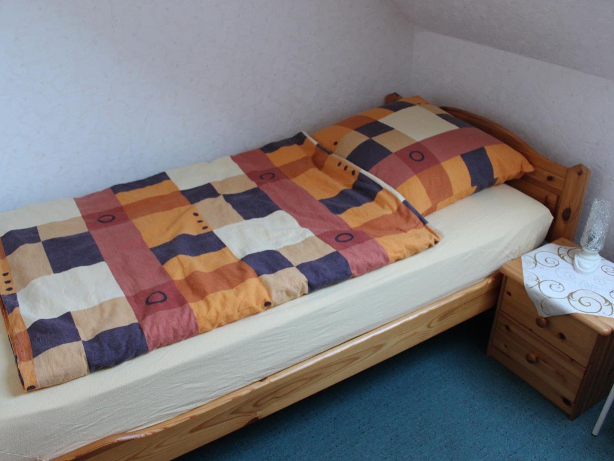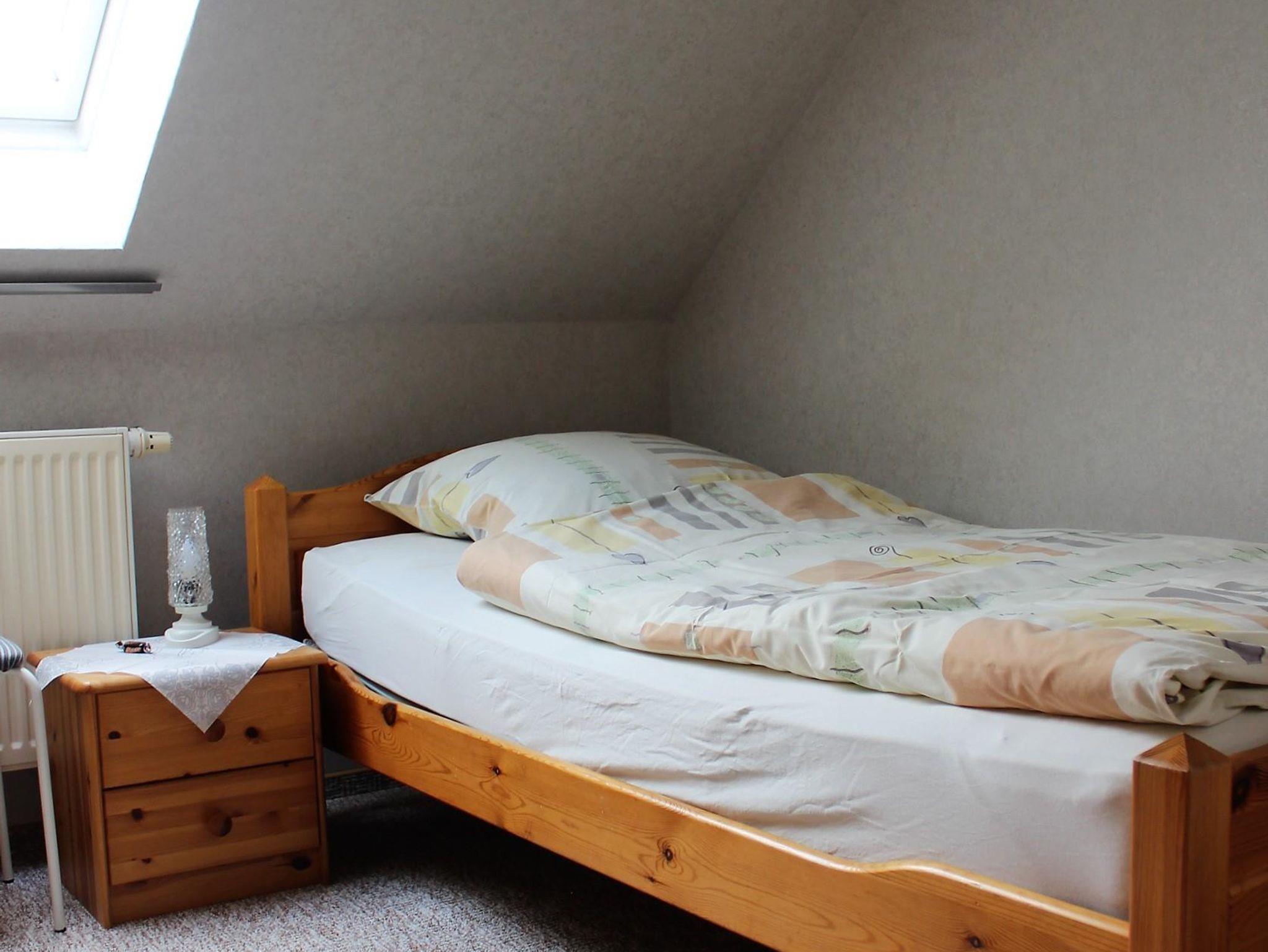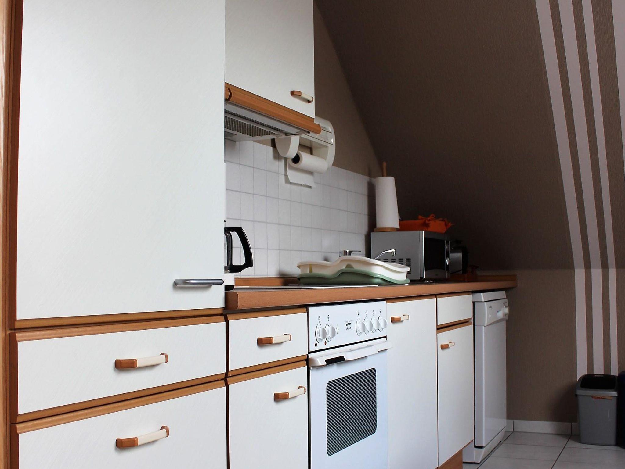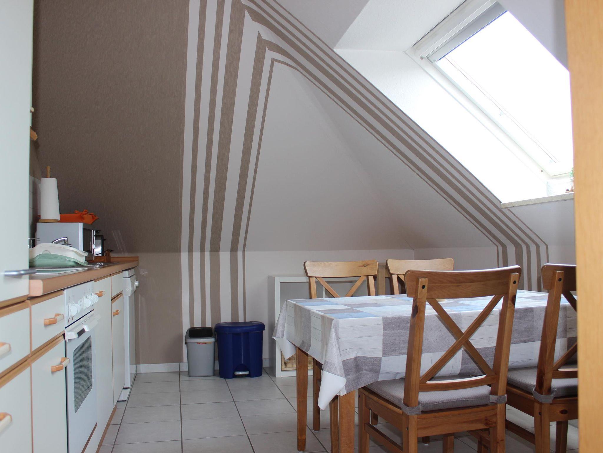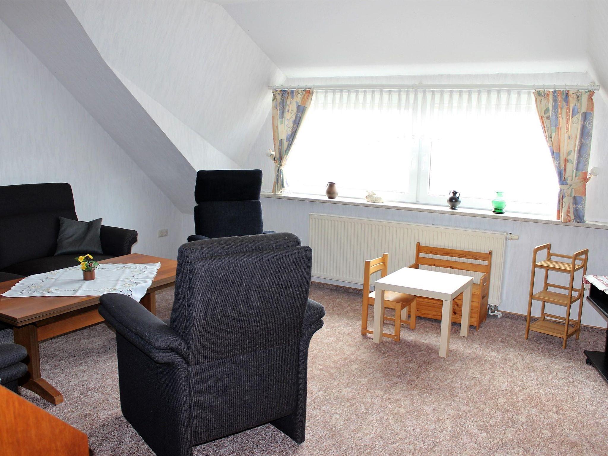 Die 80 qm große Ferienwohnung liegt im Dachgeschoss eines Einfamilienhauses in ruhiger Lage und verfügt über ein Wohnzimmer (Kabel-TV, Radio) mit Sitzecke, eine separate Küche (Herd mit Ceranfeld und Backofen, Geschirrspüler, Mikrowelle, Kaffeemaschine, Wasserkocher, Toaster) mit Essecke, ein Schlafzimmer mit einem Doppelbett und einem Kinderbett, ein Schlafzimmer mit zwei Einzelbetten sowie ein Badezimmer mit Dusche / WC. Im Garten befindet sich eine eigene Sitzecke, eine Liegewiese und Sandmuschel zur Mitbenutzung. Spielsachen und ein Kinderhochstuhl stehen auf Anfrage zur Verfügung. Fahrradunterstellmöglichkeiten sind vorhanden. Der Strand liegt ca. 8 Gehminuten entfernt.
