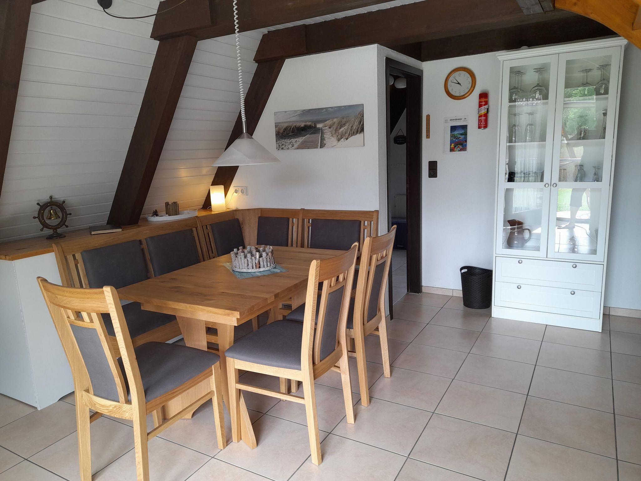 Im Erdgeschoss des Nurdachhauses Kurt sien Huus finden Sie einen hellen und gemütlichen Wohn- Essbereich, der über eine gemütliche Wohnecke mit SAT-TV, Stereoanlage, einer Essecke für 6 Personen und einer komplett eingerichteten neuen Küchenzeile mit Geschirrspüler, Mikrowelle, Backofen, Kühlschrank, Kaffeemaschine, Toaster, Eierkocher und Wasserkocher verfügt. Der Eingangsbereich bietet eine Garderobe, einen kleinen Abstellraum und Zugang zum Bad mit Dusche und WC. Im Obergeschoss befinden sich die beiden Schlafräume, eins mit Doppelbett und eins mit Einzelbetten und einem zusätzlichen Kojenbett (140x200m) für 2 Personen unter dem Dach. Beide Schlafzimmer sind mit einem Flachbildfernseher sowie Verdunkelungsrollos ausgestattet. Ein Safe ist ebenfalls vorhanden.
