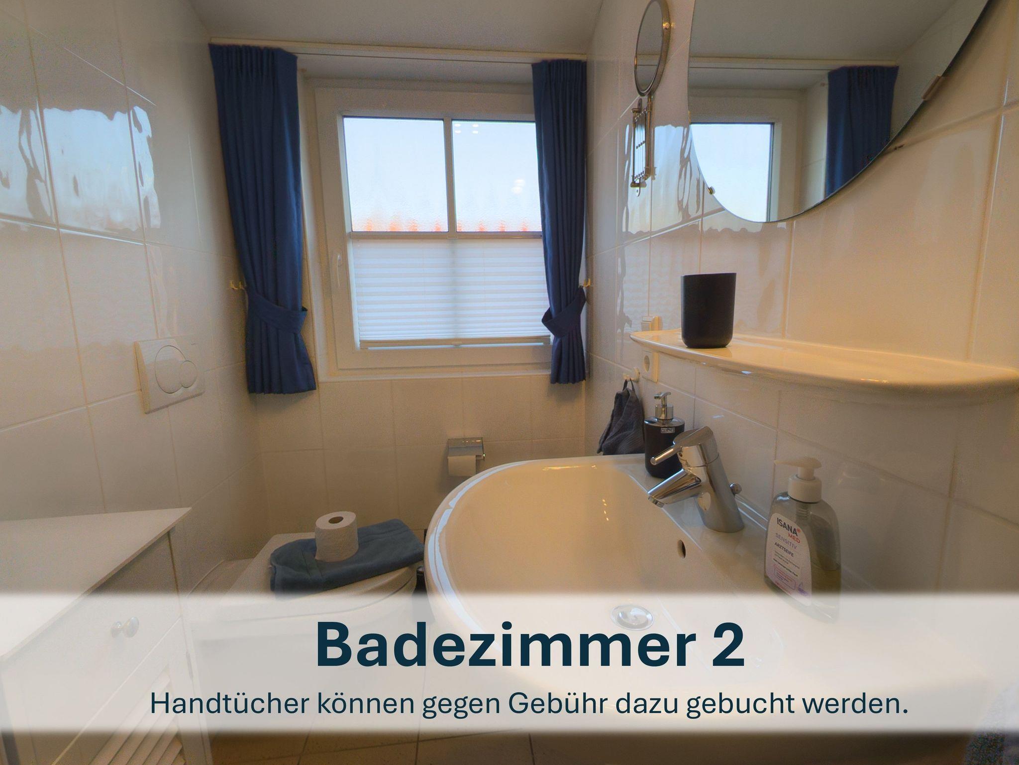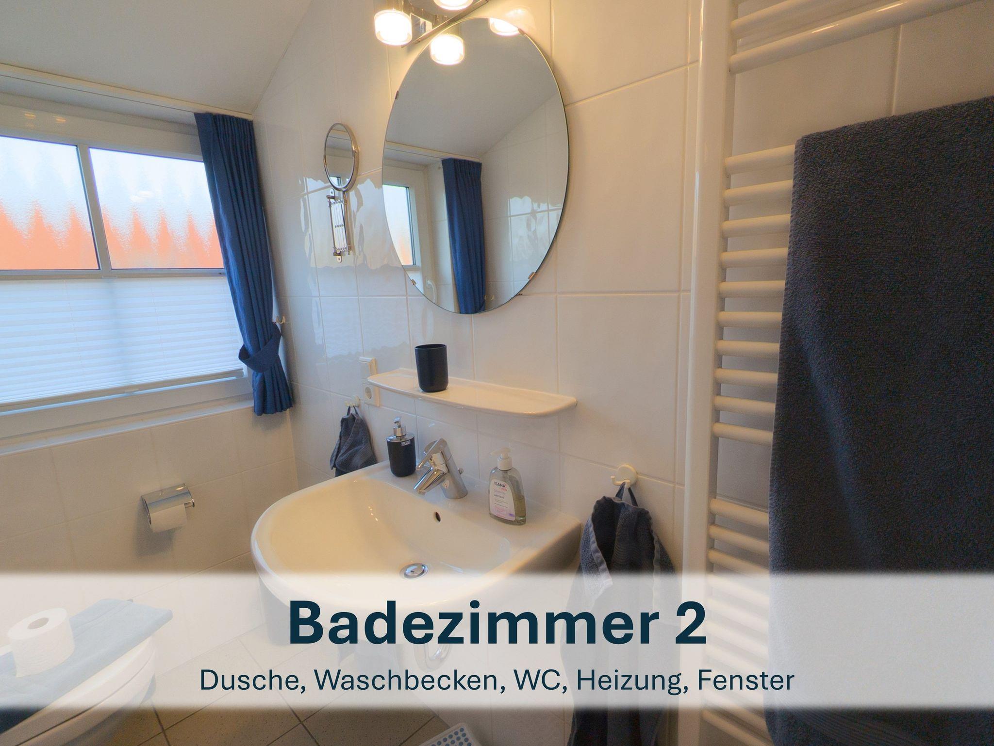 Zwischen den beiden Zimmern liegt das zweite Badezimmer mit Dusche, WC und Waschbecken.