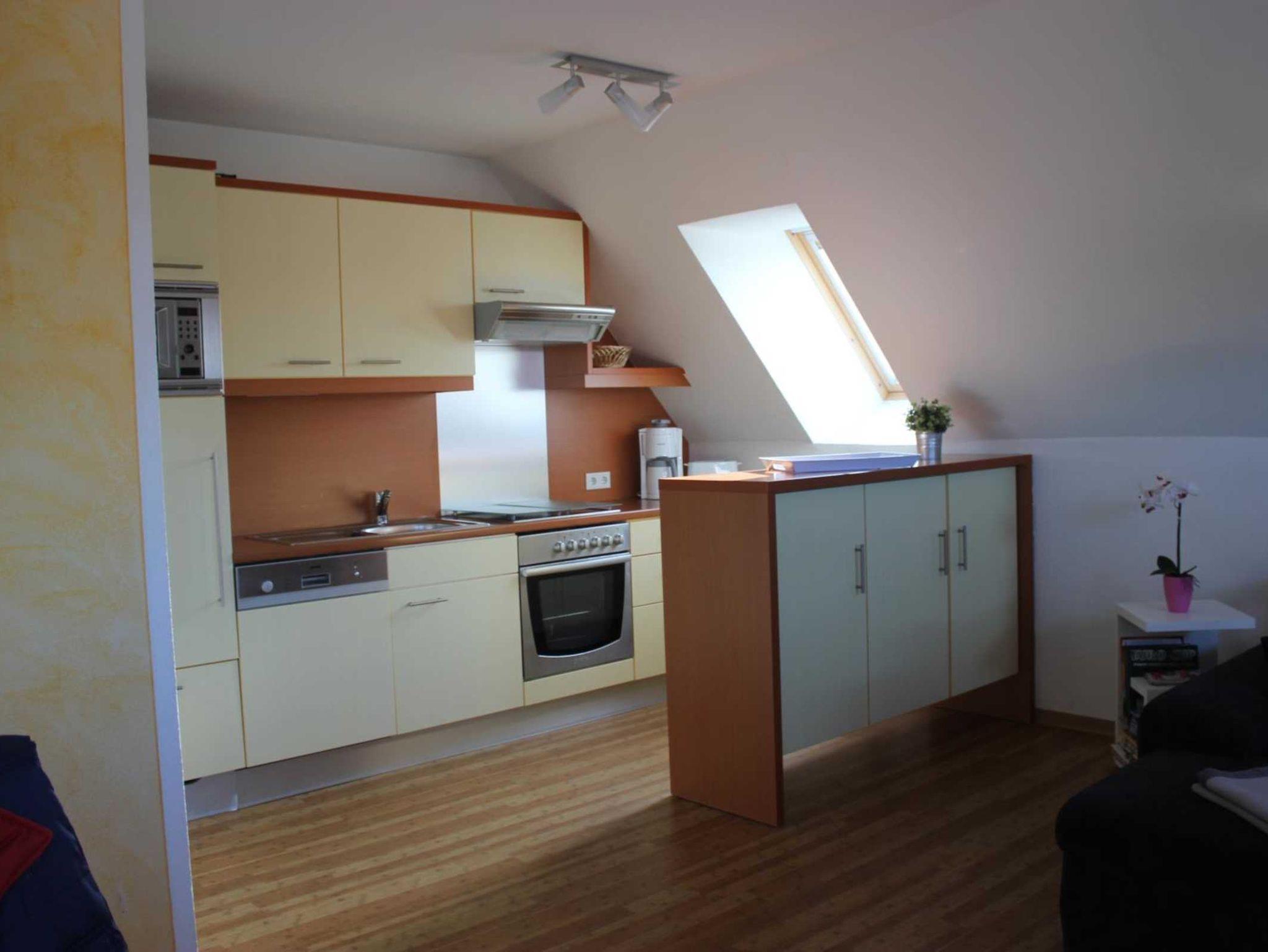 Im unteren Teil finden Sie ein großzügiges Wohn-/Esszimmer. Hier können Sie in der schönen Einbauküche gemeinsam kochen. Die Küche ist für bis zu 6 Pers. umfangreich ausgestattet. Kochinsel mit Ceranfeld und Dunstabzugshaube, gegenüber Backofen und Geschirrspüler sind selbstverständlich vorhanden.