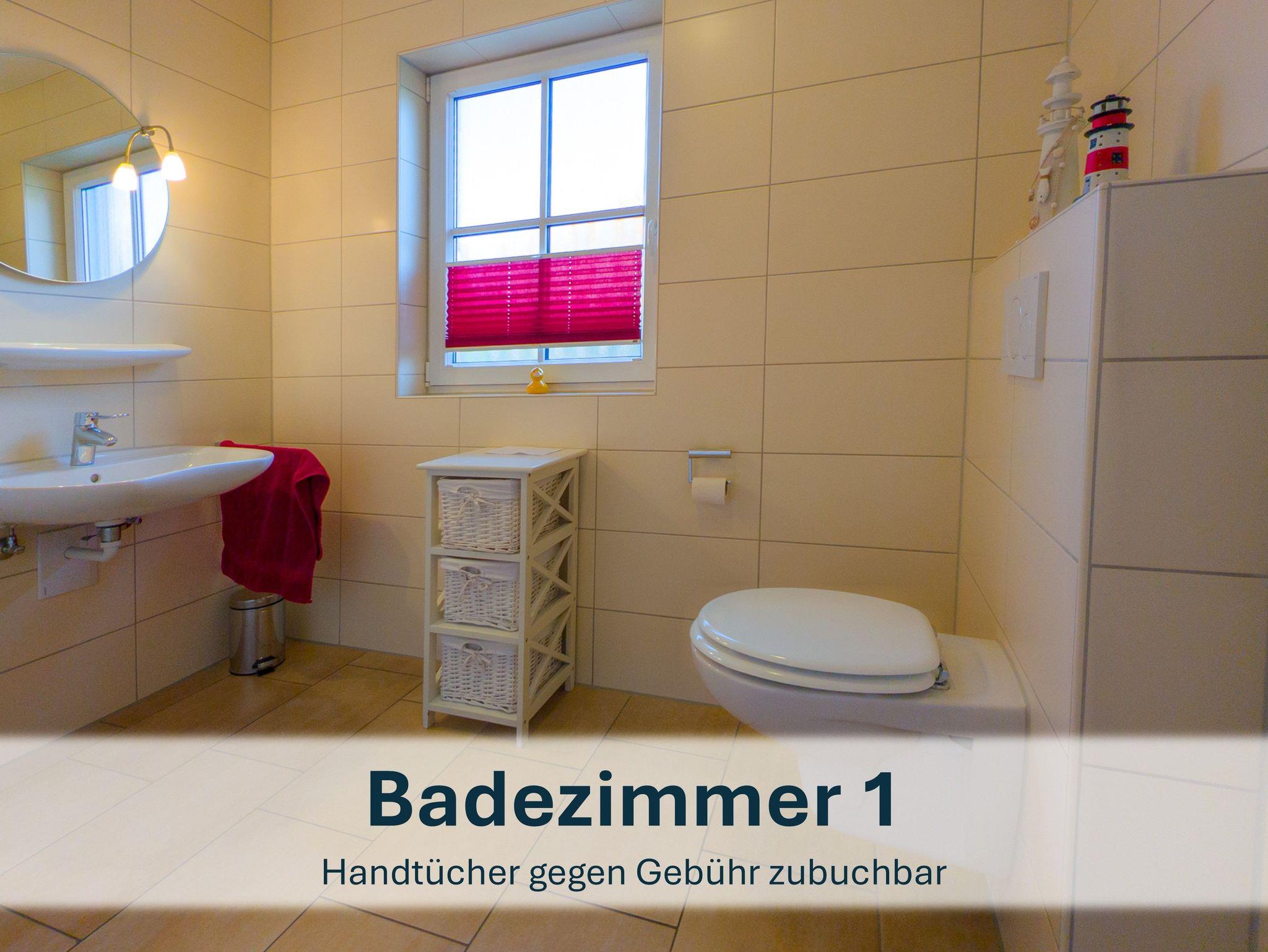 Zwischen den beiden Zimmern liegt das zweite Badezimmer mit Dusche, WC und Waschbecken.