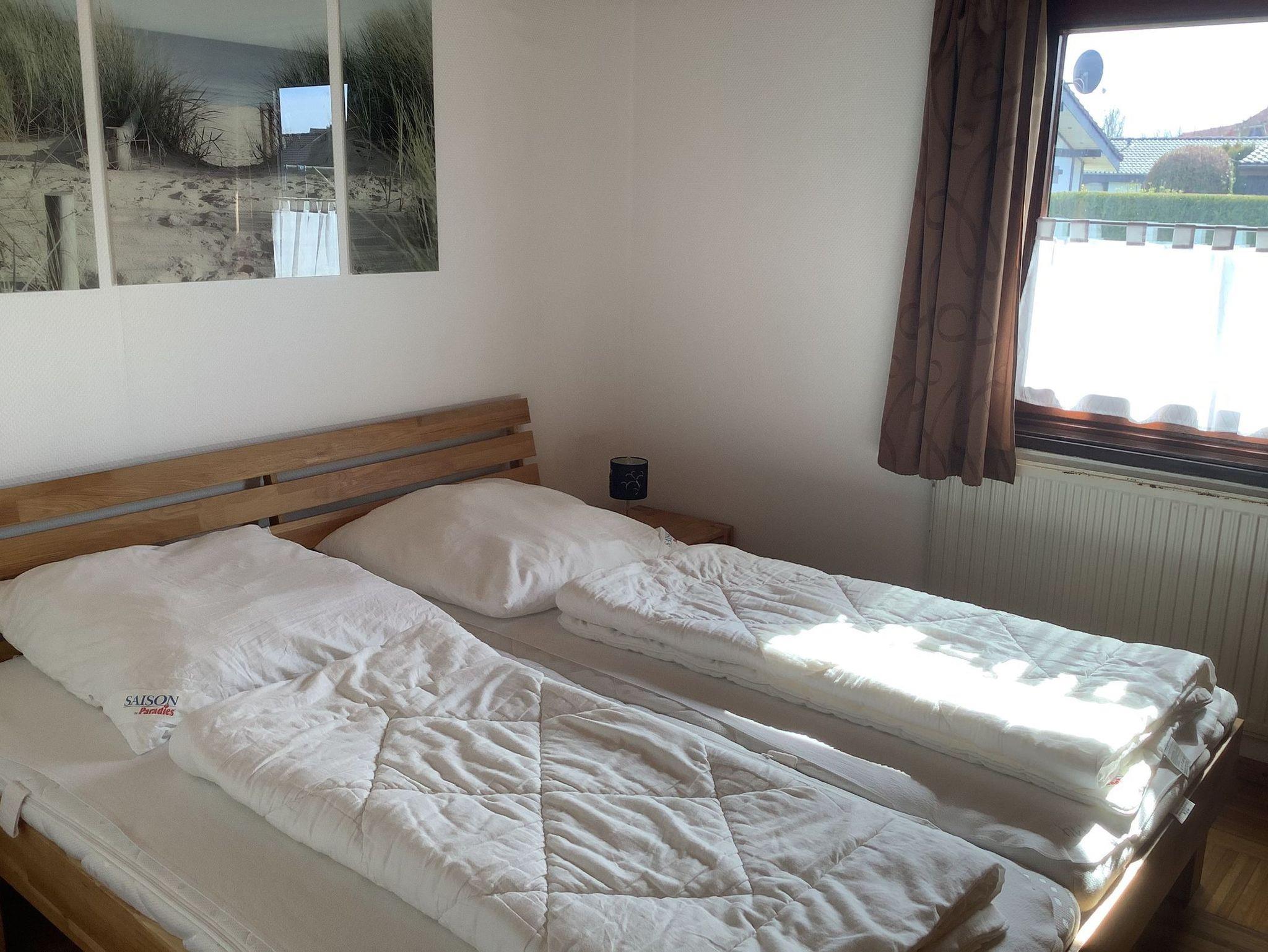Das erste Schlafzimmer verfügt über ein Doppelbett, das zweite Schlafzimmer über drei Schlafmöglichkeiten, davon eines als Hochbett. Das Badezimmer verfügt über eine Dusche, ein WC und ein Waschbecken. Außerdem können Sie in einem kleinen Abstellraum Ihre Habseligkeiten verstauen.