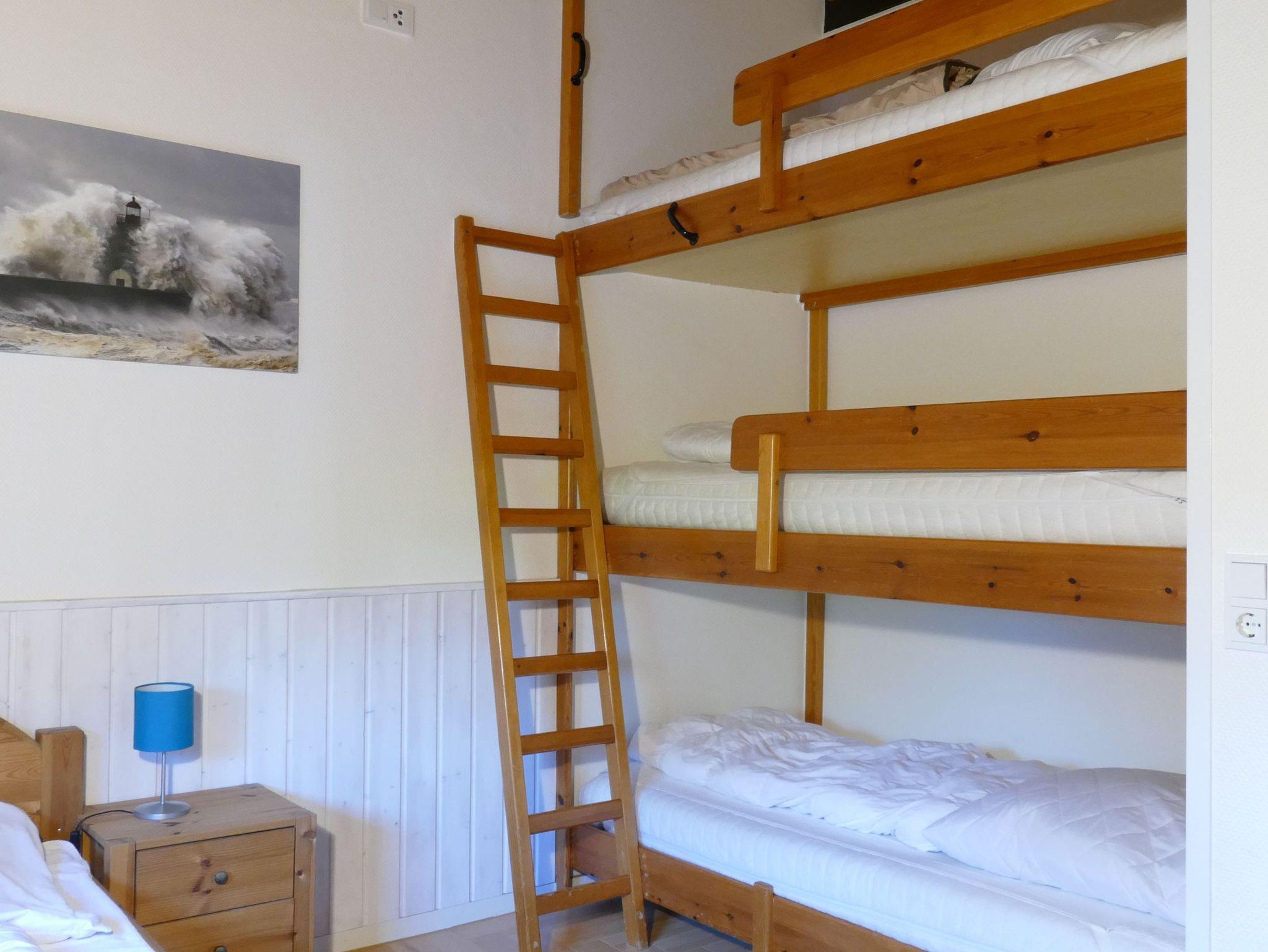 Das erste Schlafzimmer verfügt über ein Doppelbett, das zweite Schlafzimmer über drei Schlafmöglichkeiten, davon eines als Hochbett. Das Badezimmer verfügt über eine Dusche, ein WC und ein Waschbecken. Außerdem können Sie in einem kleinen Abstellraum Ihre Habseligkeiten verstauen.