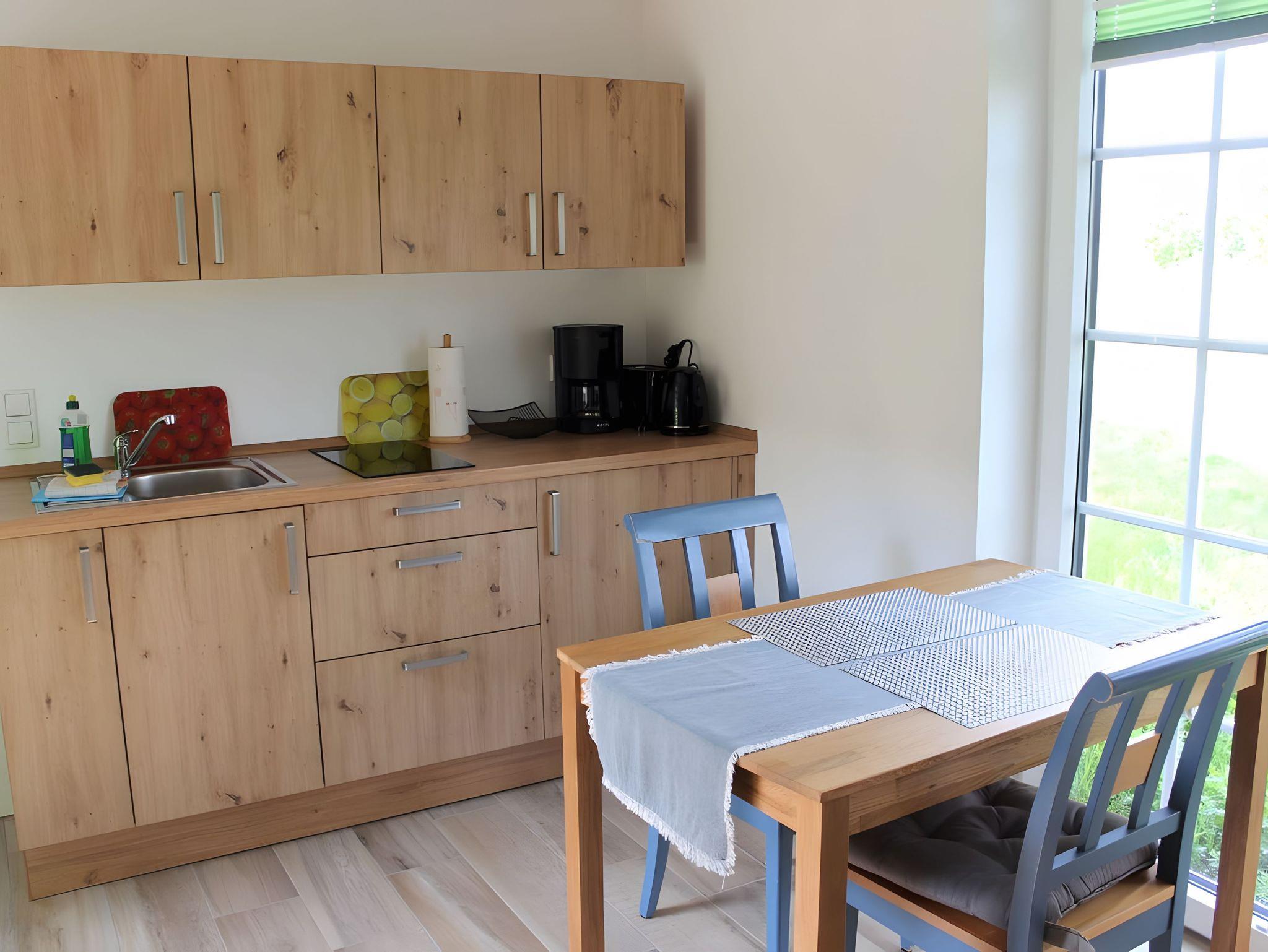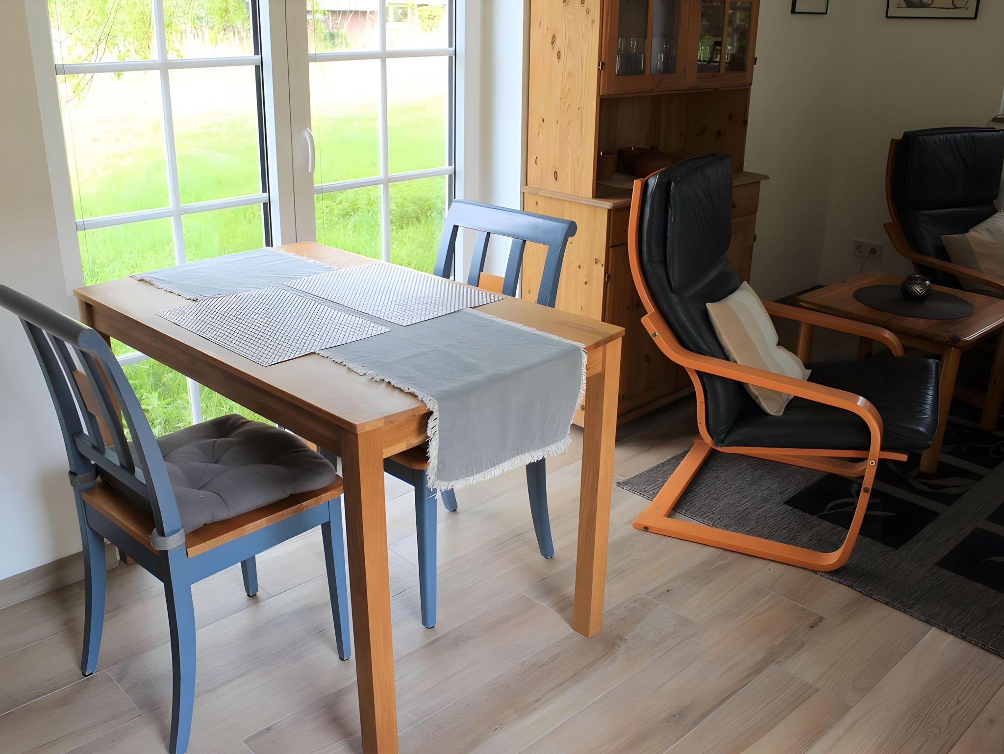 Die gemütlich eingerichtete Ferienwohnung Möwennest bietet auf 25m² ausreichend Platz für zwei Erwachsene und ein Kleinkind bis 3 Jahre und befindet sich im Erdgeschoß. Sie ist über einen separaten Eingang zugänglich und verfügt über eine kleine Terrasse mit Gartenmöbeln.