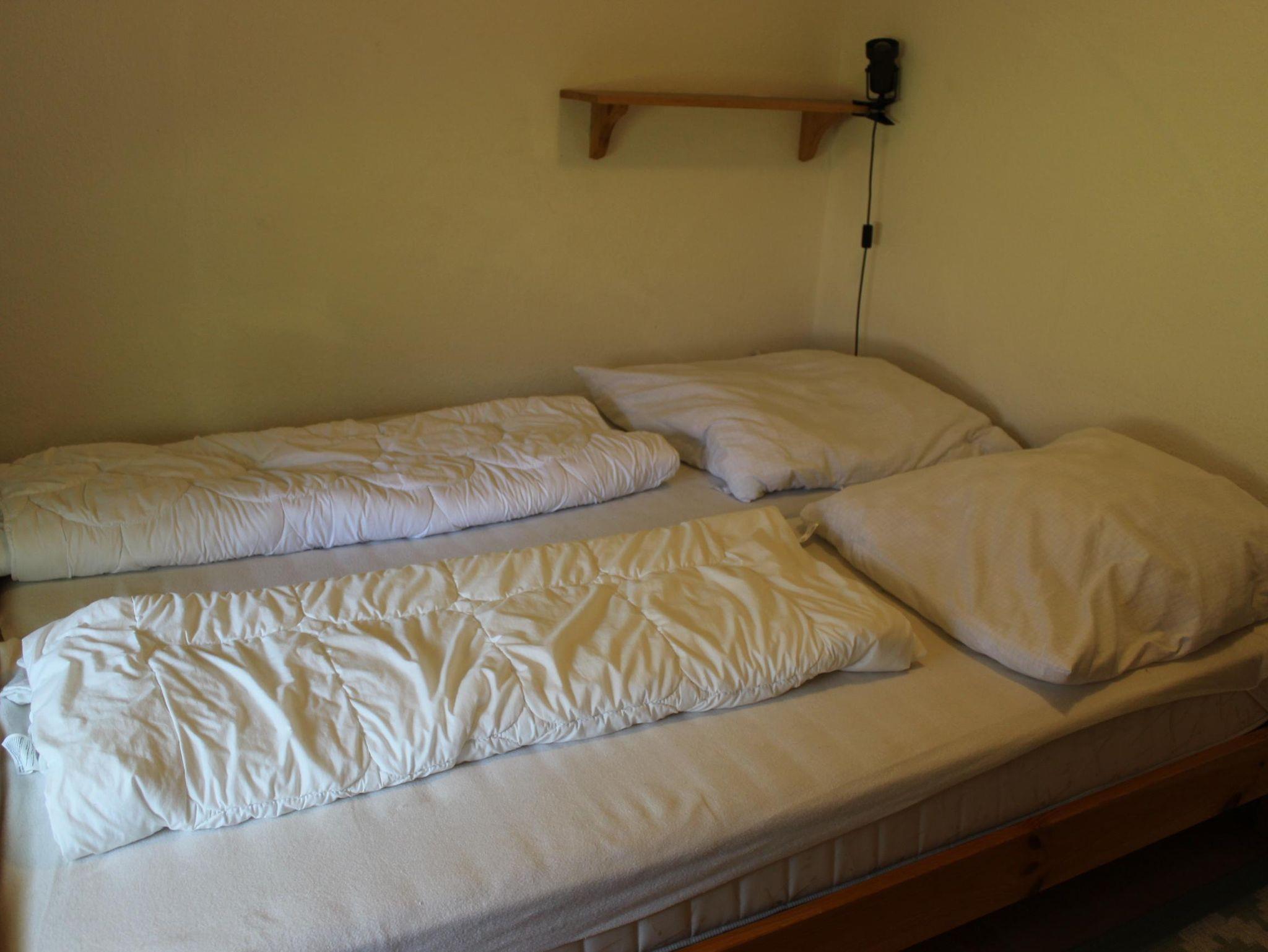 Die 57m² große Nichraucherwohnung befindet sich im Erdgeschoss und bietet Platz für max. 4 Personen plus Baby. Sie verfügt über ein Wohn-/Esszimmer mit Sat-TV, Radio, Sofa, Sessel sowie Esstisch mit 4 Stühlen und Kinderstuhl. Die offene Küche ist mit Ceranfeld, Backofen, Mikrowelle, Kühlschrank, Wasserkocher, Toaster, Eierkocher und Toaster ausgestattet. Die Wohnung verfügt über 2 Schlafzimmer mit Doppelbetten und Kleiderschrank sowie ein Babybett. Das Bad ist mit WC, Dusche Waschbecken und Fön ausgestattet.