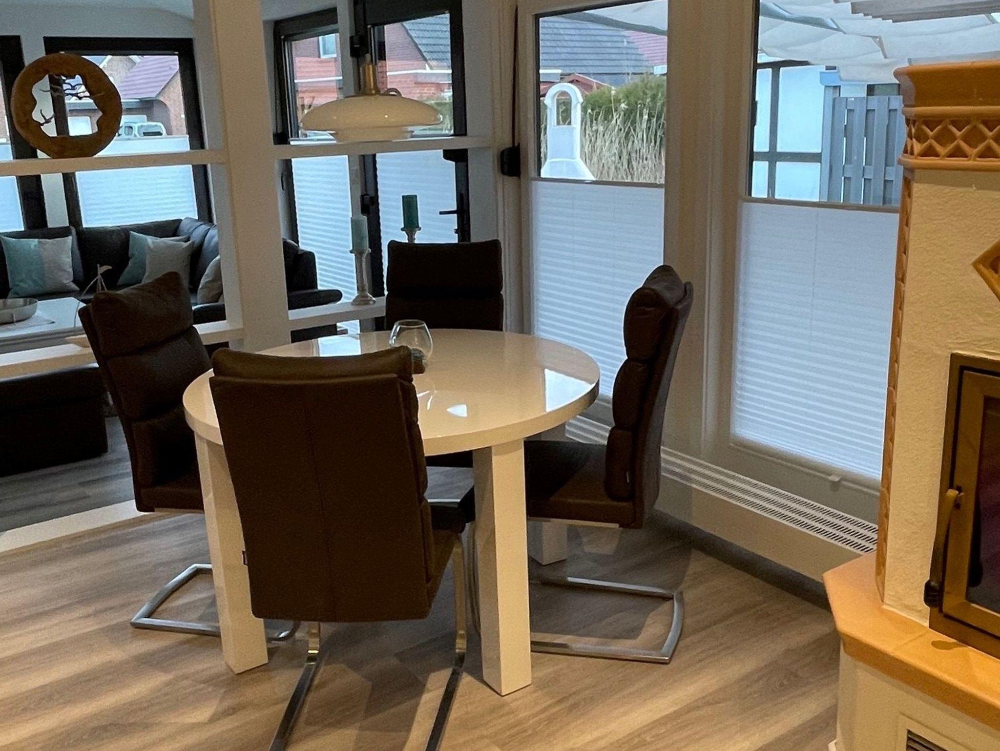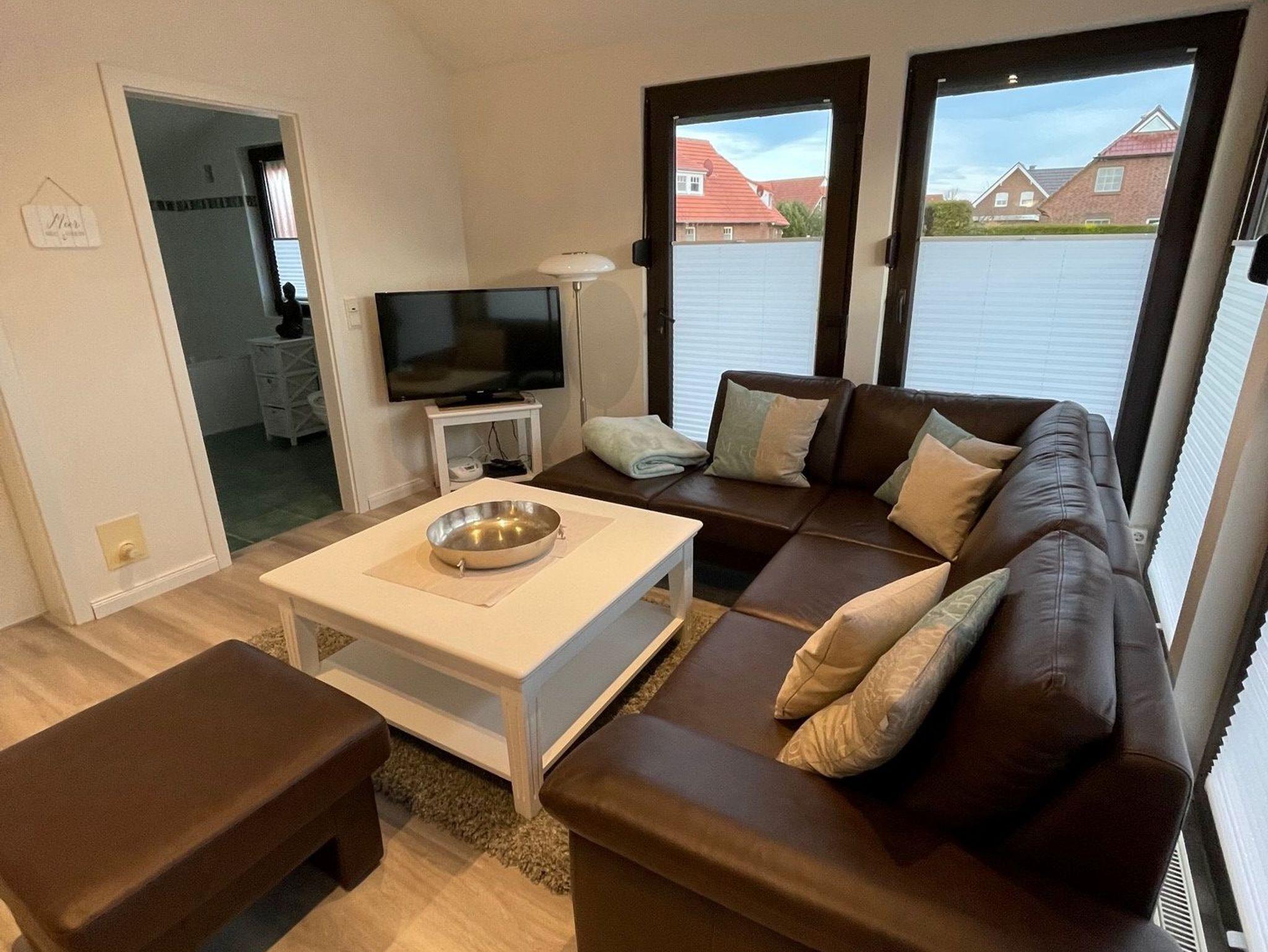 Anschließend am Wohnzimmer befindet sich eine komplett eingerichtete Küche. Auch erwartet Sie hier eine Terrasse. Genießen Sie beim Frühstücken oder Relaxen die Sonnenstrahlen und die frische Nordseeluft! Aber auch außerhalb der Hautsaison ist das Haus ein idealer Ausgangspunkt für Ihre Erkundungen an der Nordseeküste.