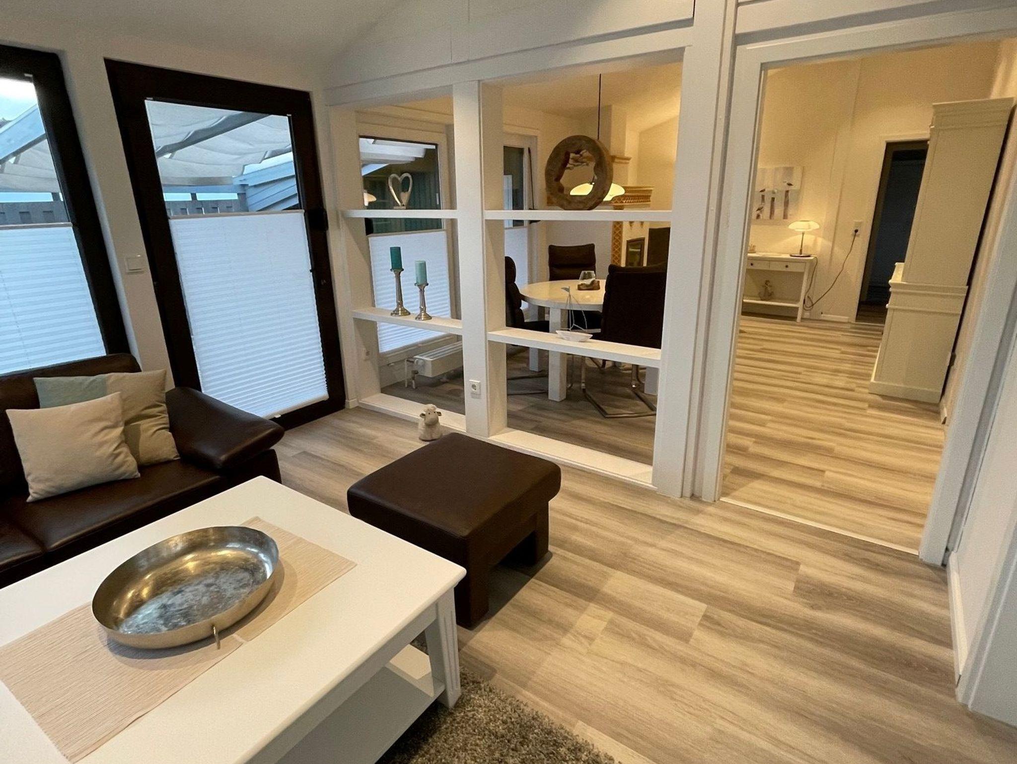 Der freistehende Ferienbungalow im Fachwerkstil bietet auf 65m² ausreichend Platz für vier Erwachsene und einem Kleinkind bis 2 Jahre. Im Wohnraum befinden sich komfortable Sitzmöglichkeiten, ein Fernseher und eine offene, vollständig ausgestattete Küche. Von hier können Sie auf Ihre eigene Sonnenterrasse treten und das herrliche Nordseewetter genießen.