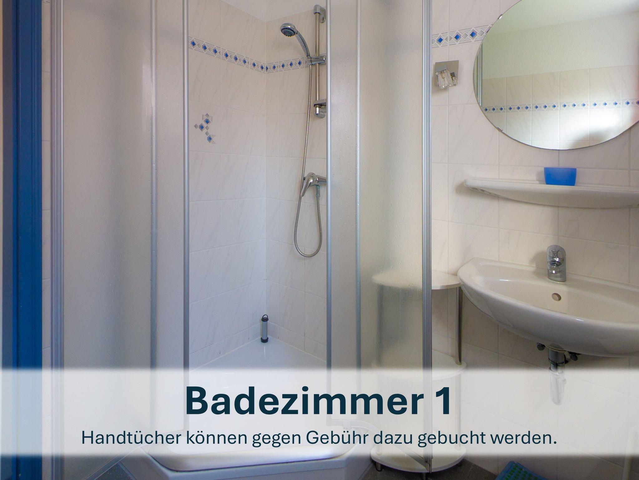 Zwischen den beiden Zimmern liegt das zweite Badezimmer mit Dusche, WC und Waschbecken.