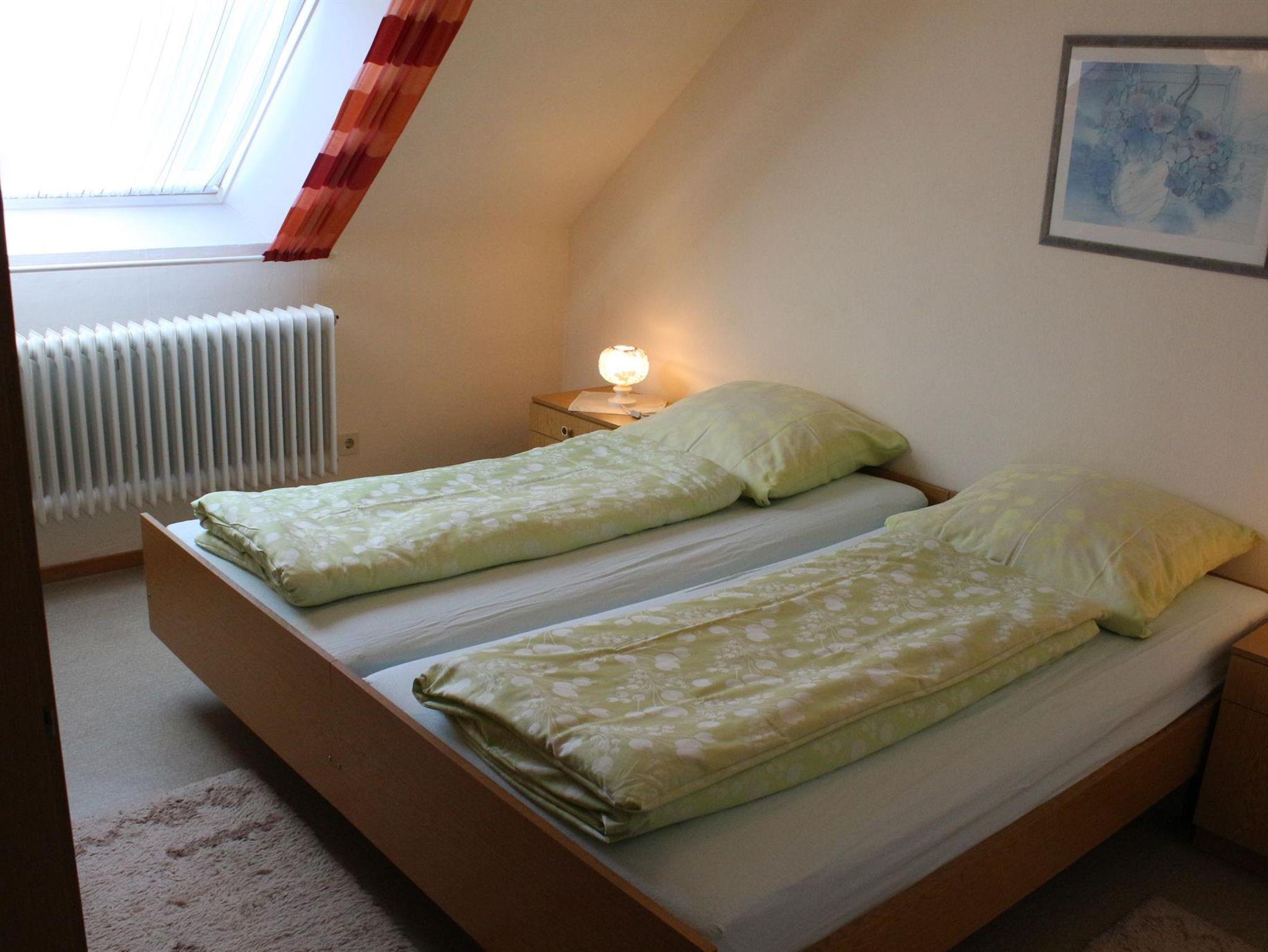 Die Ferienwohnung liegt im 1. Obergeschoss und hat eine Wohnküche mit gemütlicher Sofaecke (Schlafsofa120x200cm), TV, Essecke, und einer Küchenzeile mit Kühlschrank, Mini-Backofen, Kaffeemaschine, Wasserkocher. Ein Schlafzimmer mit Doppelbett und Kleiderschrank und ein Bad mit Dusche, WC und Waschtisch steht Ihnen zur Verfügung. Im Garten finden Sie eine Gemeinschaftsterrasse mit Gartengrill, wo man den Urlaubstag schön ausklingen lassen kann. Ein Fahrradschuppen steht ebenfalls zur Verfügung.