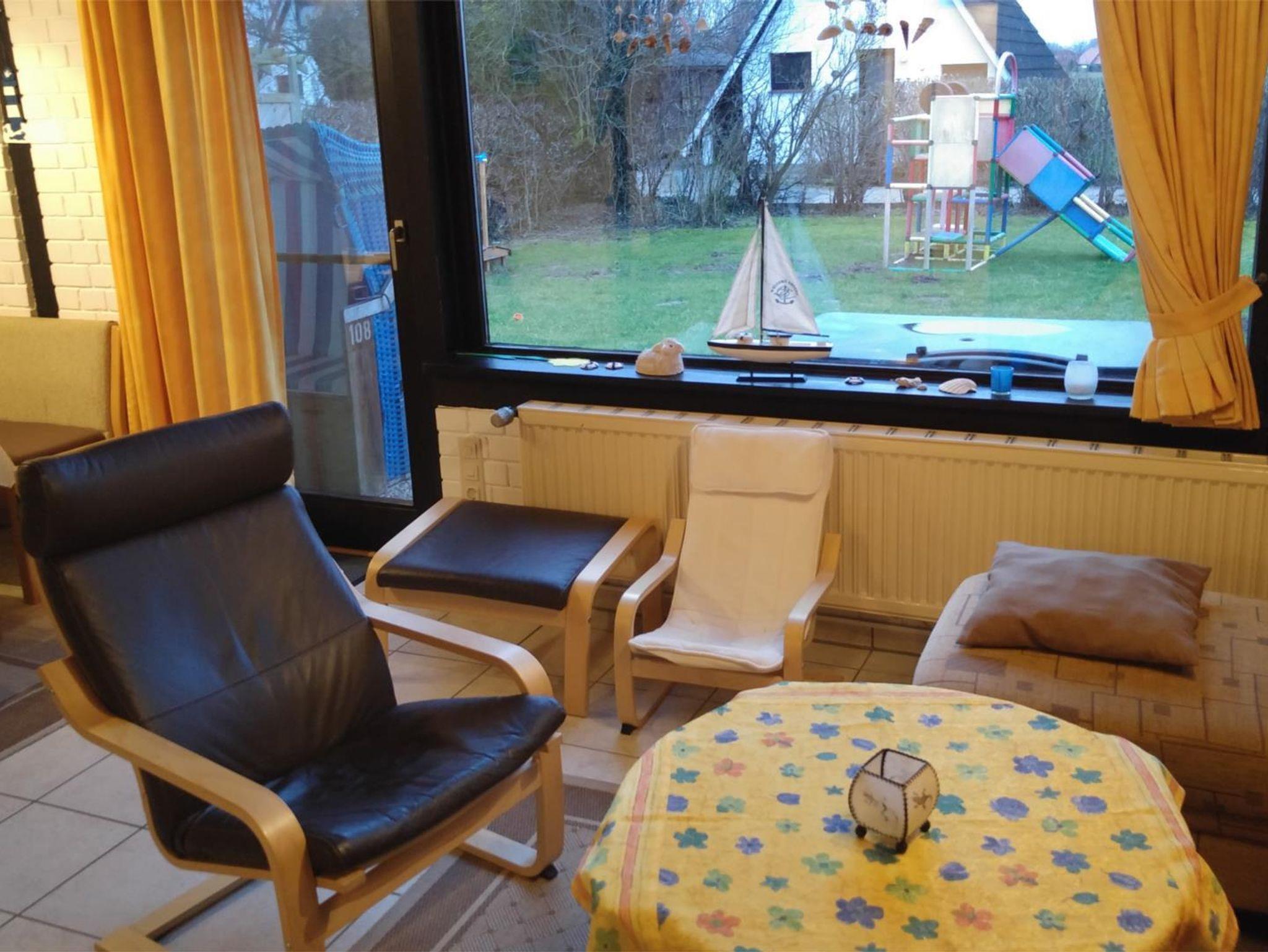 Das Nichtraucher-Nurdachhaus mit Anbau und Gaszentralheizung liegt ruhig und deichnah in der Feriensiedlung Achtern Diek in Burhave. Es verfügt im gefliesten Erdgeschoss über ein Wohnzimmer (Sat-TV, DVD-Player, Stereoradio) mit großer Fensterfront, eine Ess- und Sitzecke mit integrierter Schlafcouch, ein Doppelzimmer mit Kleiderschrank, ein Duschbad und ein separates WC, eine Küche (4-Plattenherd (Ceran), Kaffeemaschine, Toaster, Wasserkocher, Mikrowelle mit Backfunktion) und ein Hausarbeitsraum mit Wasch- und Geschirrspülmaschine. Eine Raumspartreppe (Kinderschutzgitter ist montiert) führt ins Obergeschoss mit einem Dreibettzimmer und einem Zweibettzimmer. Einbauschränke sind in beiden Geschossen vorhanden. Eine möblierte Terrasse mit Markise und Gartengrill steht zur Verfügung.