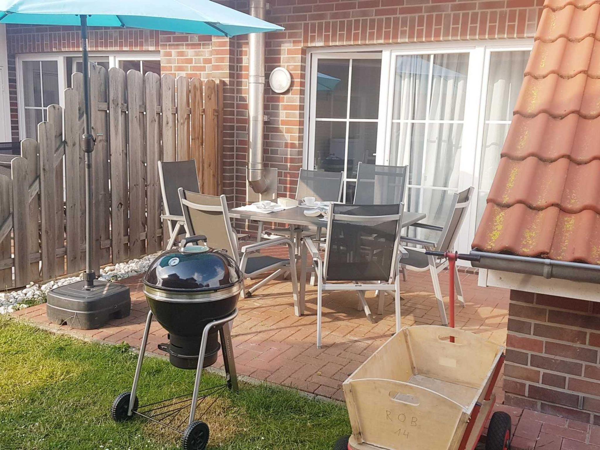Gartenmöbel und Holzkohlegrill sind für die Terrasse vorhanden. Im Sommer können Fahrräder sicher im Abstellraum eingeschlossen werden.