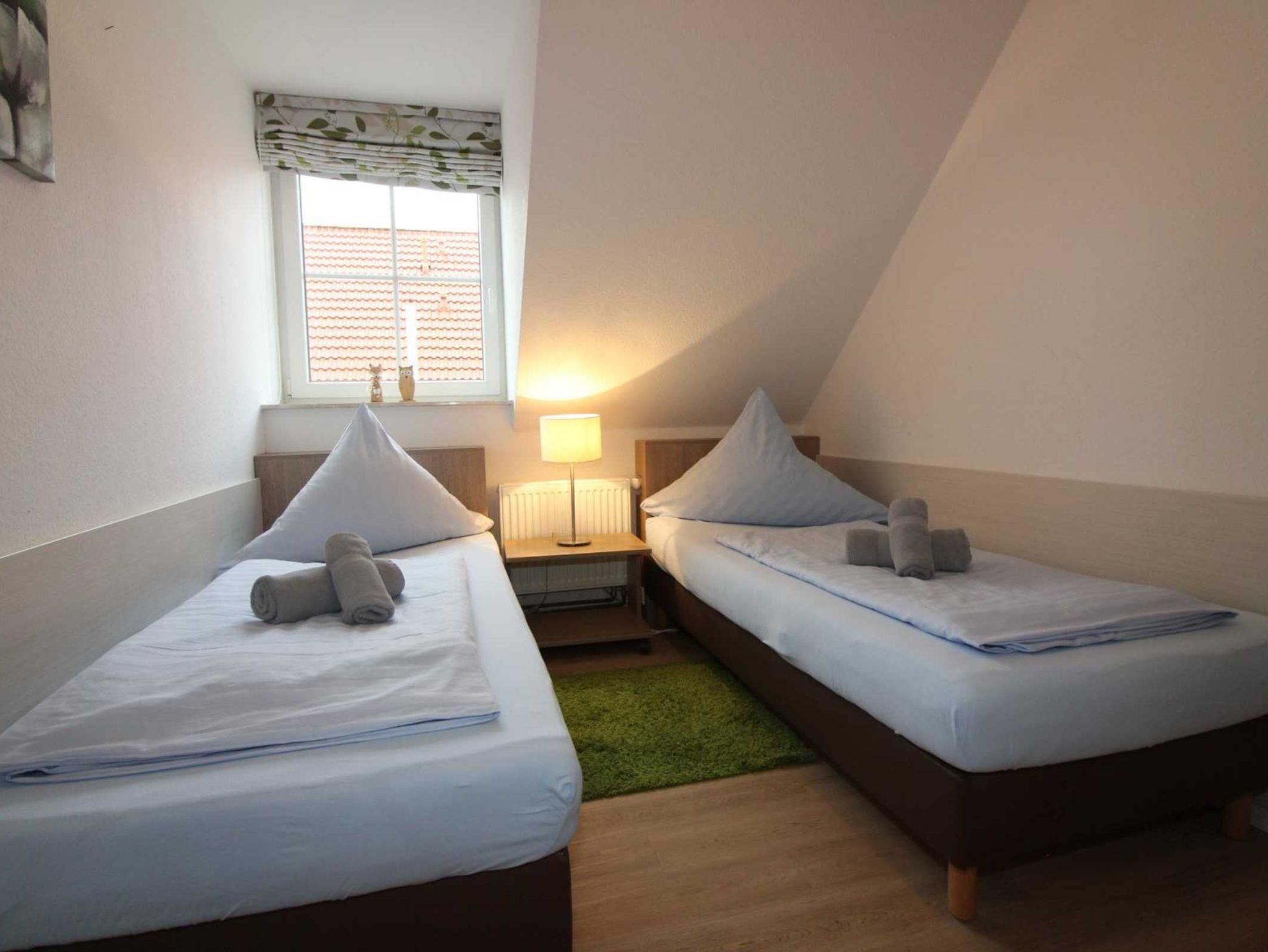 - drei Schlafräume: ein Zimmer mit Doppelbett, ein Zimmer mit getrennten Betten und ein Zimmer mit Einzelbett und Ausziehbett