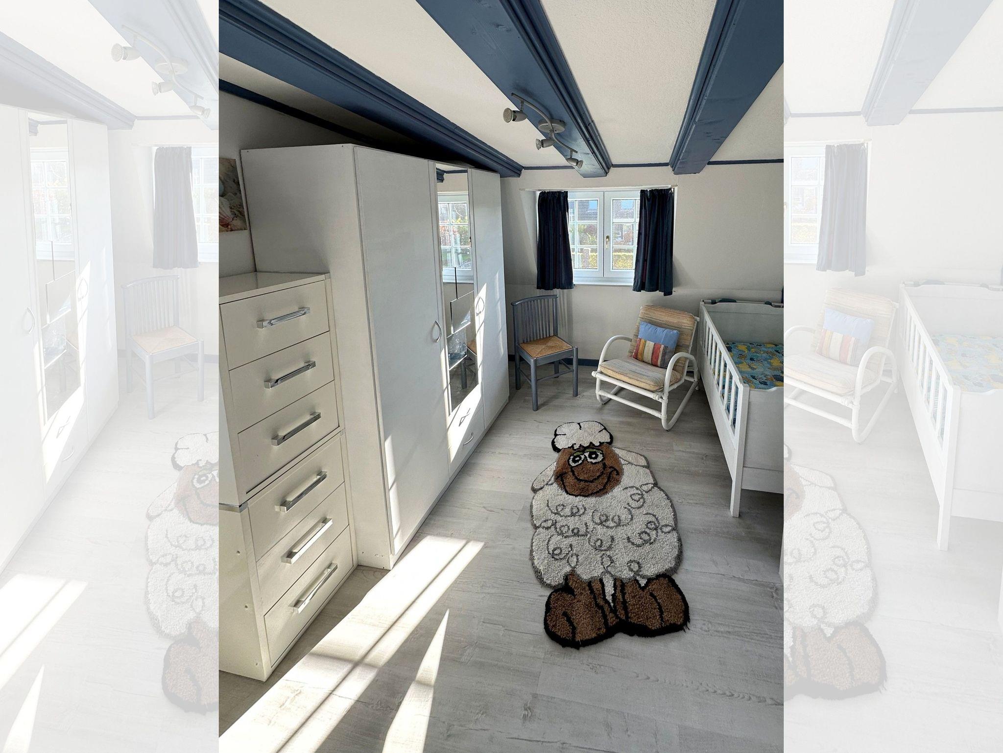 Im Obergeschoss liegen zwei separate Schlafzimmer, die flexible Schlafmöglichkeiten bieten: Eines ist mit einem Doppelbett und einem zusätzlichen Kinderbett ausgestattet, das zweite verfügt ebenfalls über ein Doppelbett sowie einen Smart-TV für gemütliche Filmabende. Beide Schlafzimmer sind mit Kojenbetten gestaltet, was für eine besonders behagliche und geschützte Schlafatmosphäre sorgt.