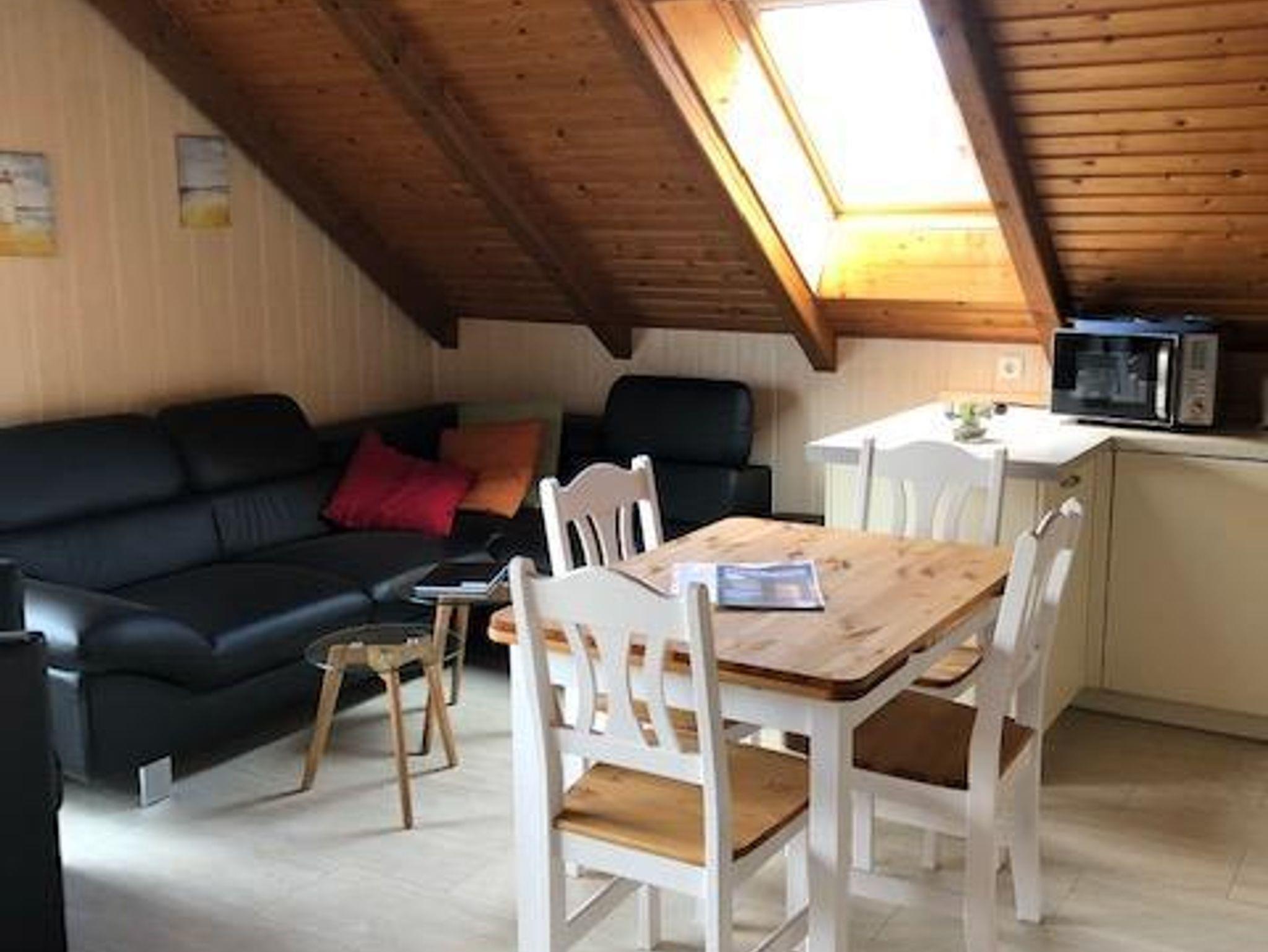 Unsere Ferienwohnung liegt im 1. Obergeschoss des Gästehauses Windrose und bietet Platz für insgesamt 6 Personen; sie liegt nach hinten raus mit Blick in den großzügigen Garten. Freundliche Vierbeiner dürfen gerne mitreisen!