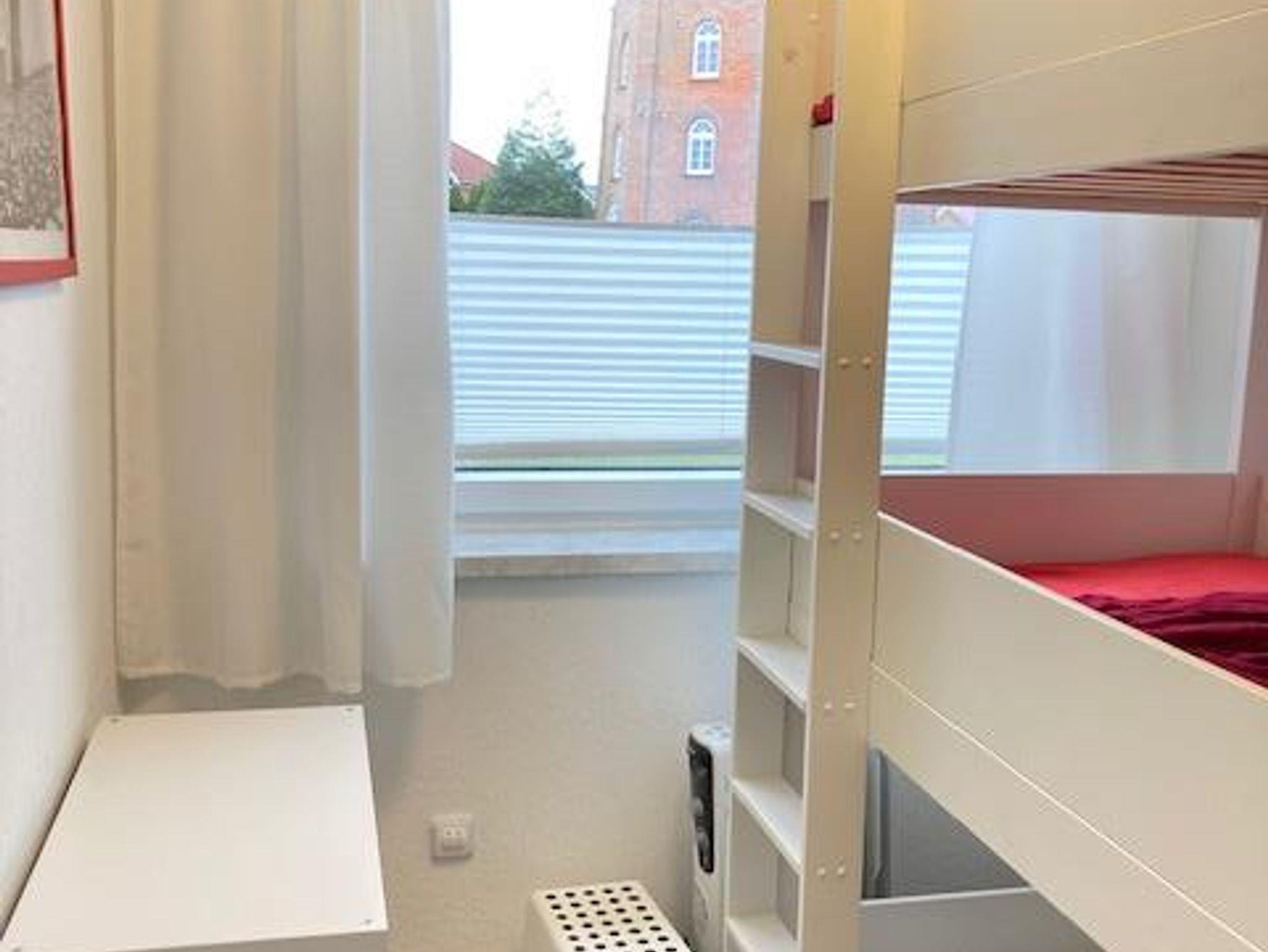 Die Wohnung wird standardmäßig mit 2 Erwachsenen belegt. Weiterhin gibt es ein Dreier-Hochbett für Kinder.