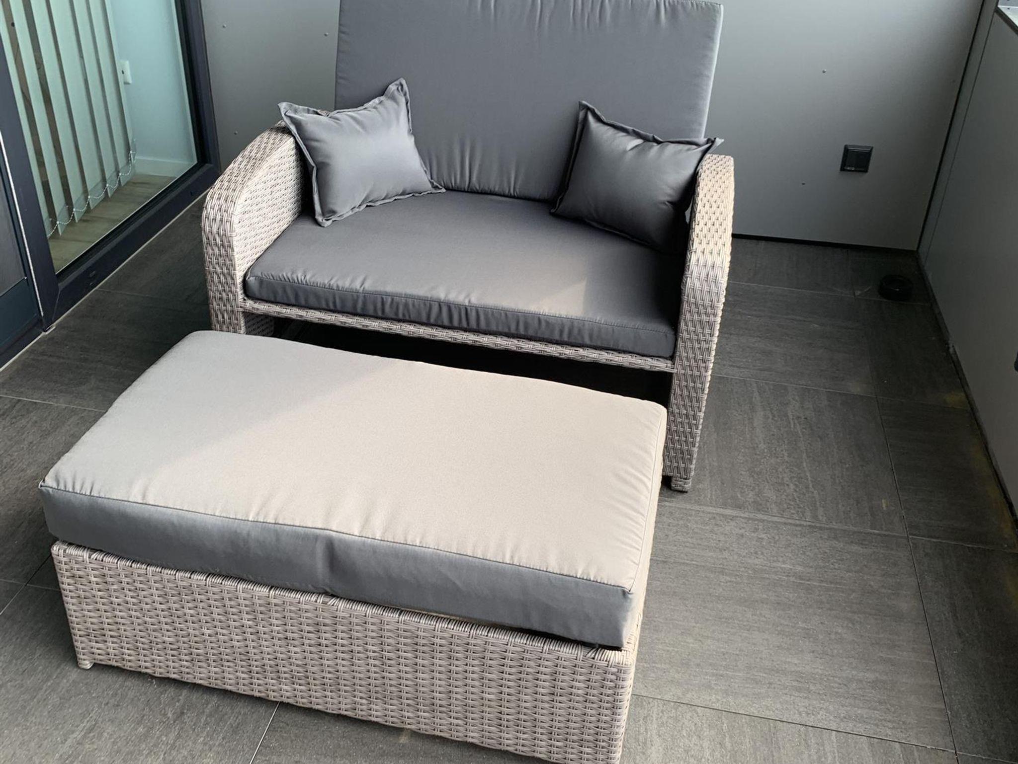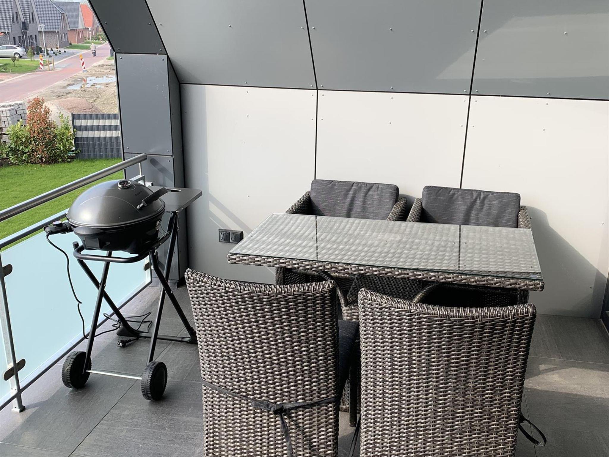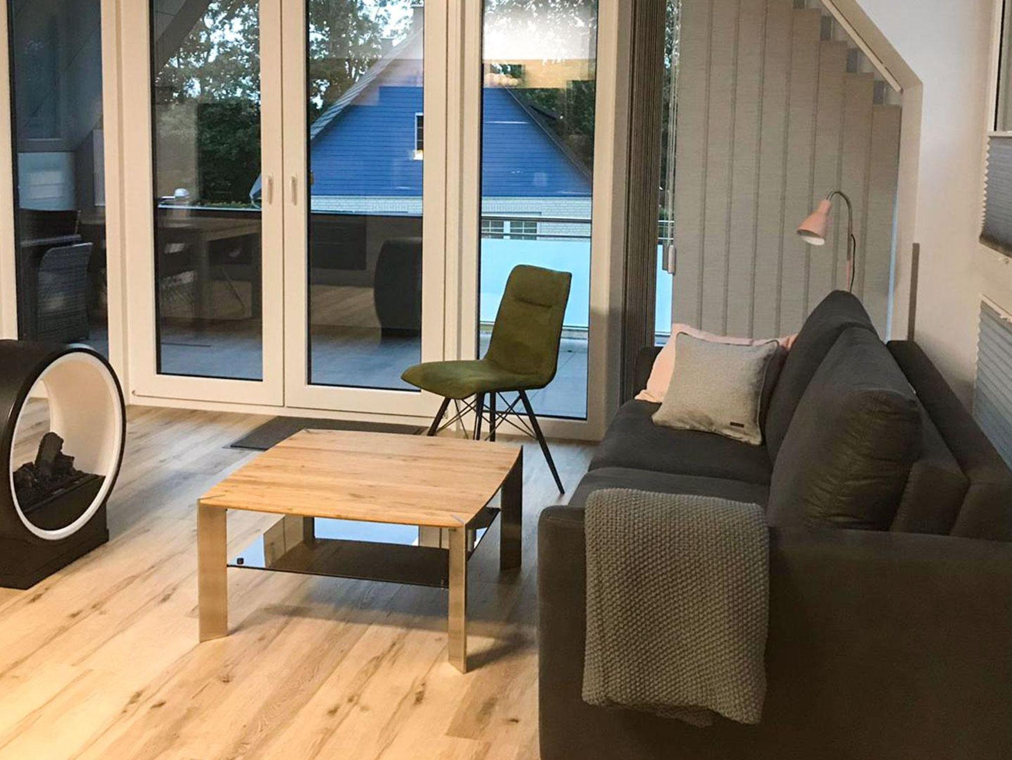 Für erholsame Stunden drinnen wie draußen sorgen das dekorative elektrische Kaminfeuer sowie die überdachte, nach Süden gerichtete Loggia mit Rattan-Möbeln, Lounge-Garnitur und Elektrogrill.