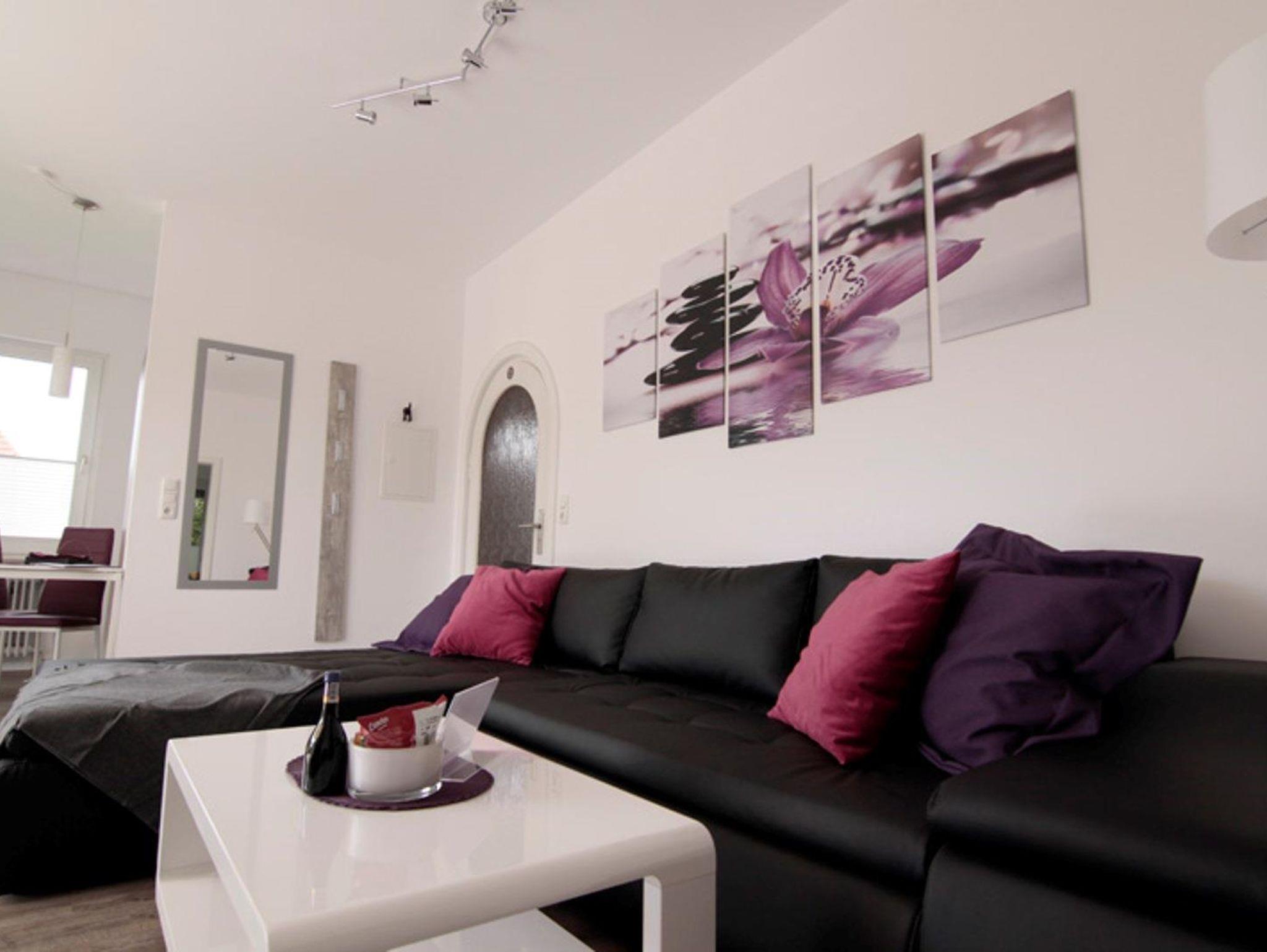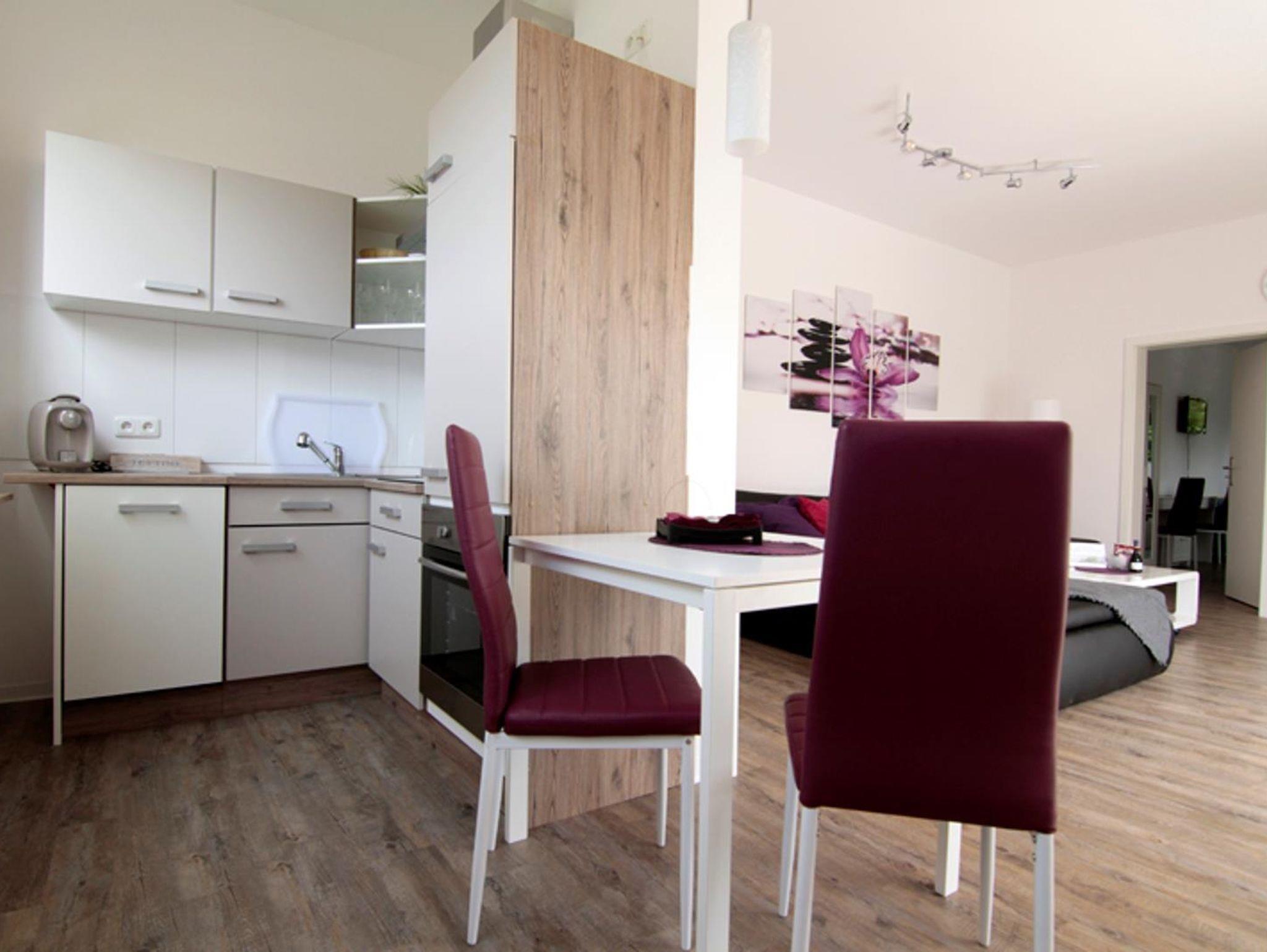 Auf 52 qm können Sie sich in unserer modern eingerichteten Wohnung wohlfühlen und entspannen. Die Wohnung ist wie folgt aufgeteilt: 1 Schlafzimmer ausgestattet mit einem Doppelbett 1,80 m x 2,00 m. Kopfkissen und Bettdecken sind allergikerfreundlich. Es kann ein Babybett (bitte bei der Buchung angeben) zugestellt werden. 1 kombiniertes Wohnzimmer mit TV und Musikanlage, angrenzend eine möblierte Terrasse. Integrierte Küche mit Essecke, Elektroherd, Backofen, Kühlschrank, Geschirrspüler, Kaffeemaschine und Kaffeekapselautomat , Toaster, Wasserkocher, Mikrowelle. Tageslichtbad mit Dusche/WC und Fön. Die mit kostenlosem WLAN ausgestattete Wohnung befindet sich im Erdgeschoss und wurde saniert und modern gestaltet.