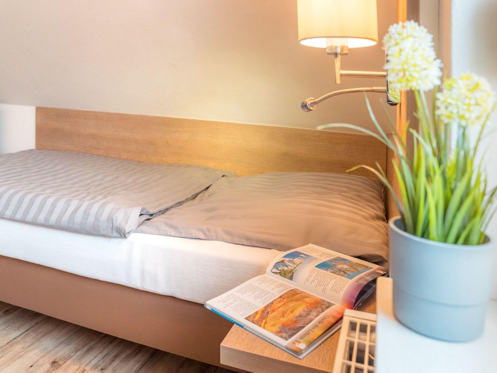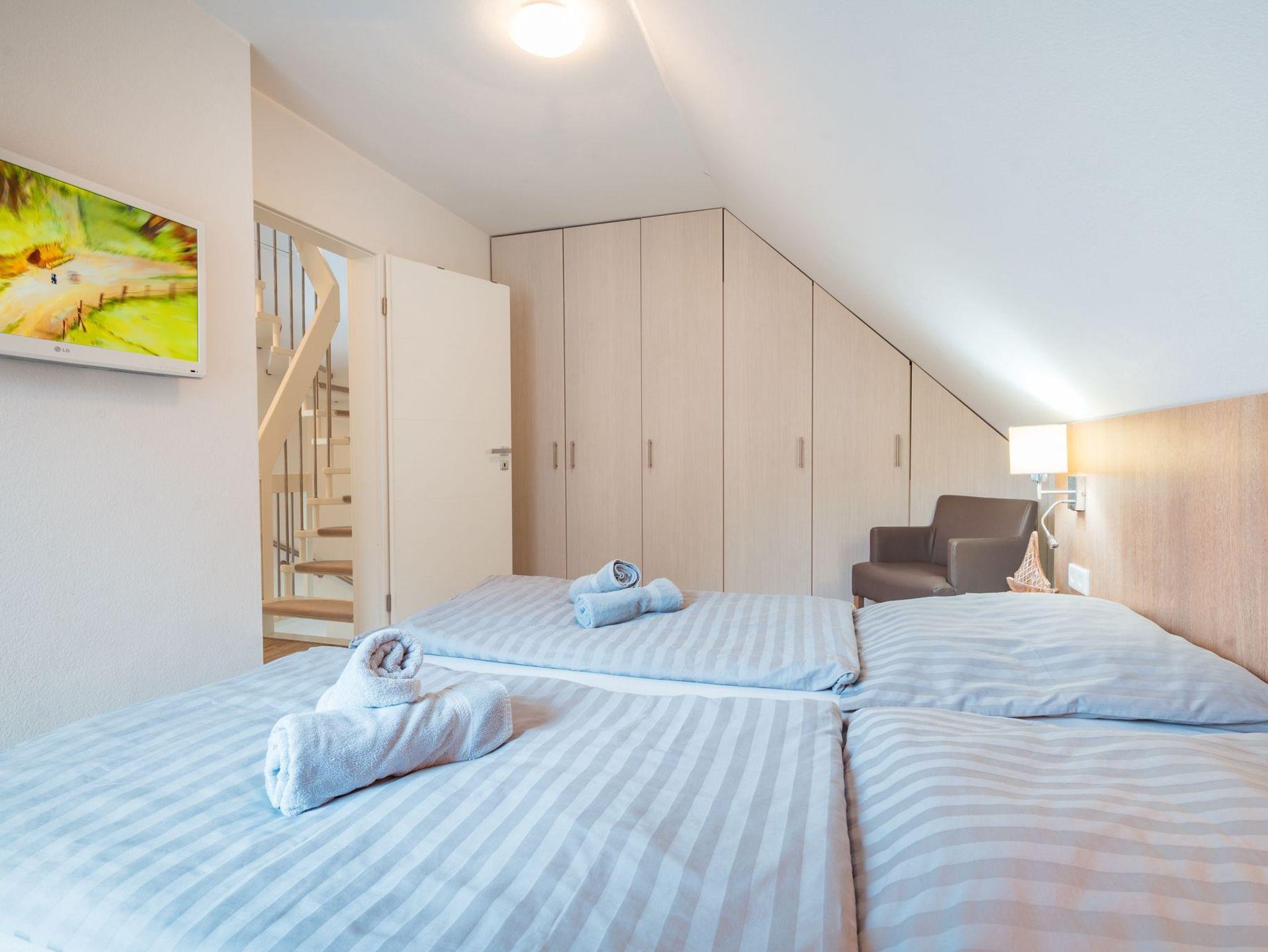 Ein Schlafraum mit zwei Einzelbetten, 26“HD-TV