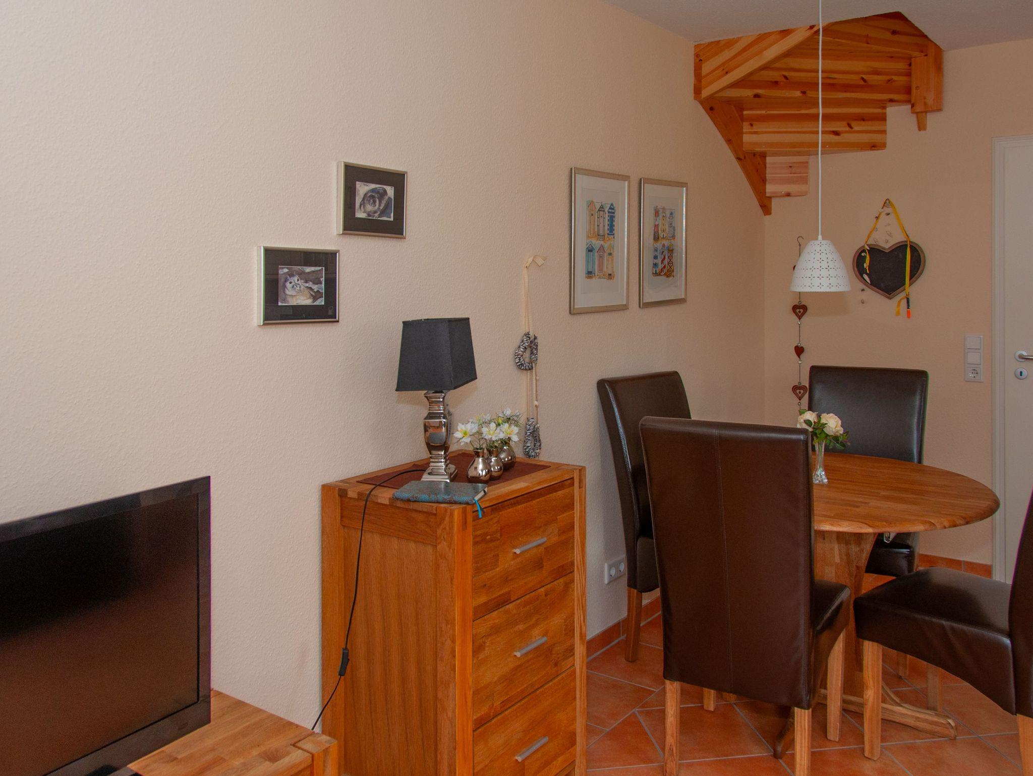 Anschließend an das Wohnzimmer befindet sich eine komplett eingerichtete Küche. Auch erwartet Sie hier eine Terrasse. Genießen Sie beim Frühstücken oder Relaxen die Sonnenstrahlen und die frische Nordseeluft! Aber auch außerhalb der Hautsaison ist das Haus ein idealer Ausgangspunkt für Ihre Erkundungen an der Nordseeküste.
