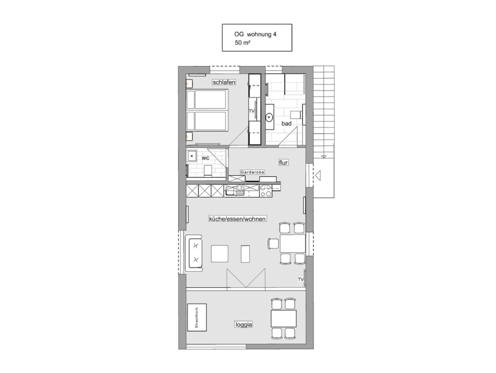 Wohnung 4 ist minimal kleiner und ansonsten, Grundriss und Ausstattung betreffend, identisch mit Wohnung 3. Kleine Hunde mit einer Schulterhöhe bis zu 40 cm sind hier willkommen.