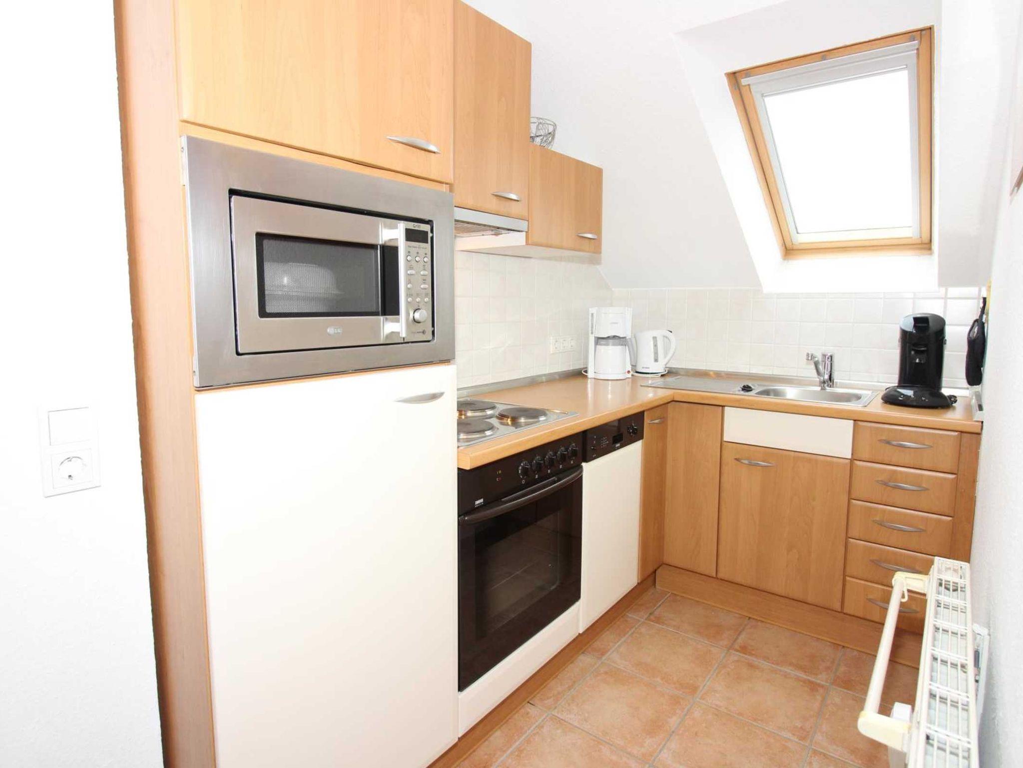 Das 3-Zimmer Apartment umfasst ca. 55 m² bestehend aus: einem Schlafzimmer mit Doppelbett und einem weiterem Schlafzimmer mit zwei getrennten Betten. Ein Badezimmer mit WC und Dusche. Im Wohnbereich ist ein separater Essplatz, dieser grenzt an eine voll ausgestattete Küchenzeile. Sie verfügt über einen Elektroherd mit vier Kochplatten, einen Backofen, eine Mikrowelle, einen Geschirrspüler, einen Toaster, einen Wasserkocher, einen Mixer und zu guter Letzt einer Kaffeemaschine. In der Küche selbst befinden sich ausreichend Geschirr, Gläser, Töpfe, Kuchenformen und kleine Küchenhelfer.