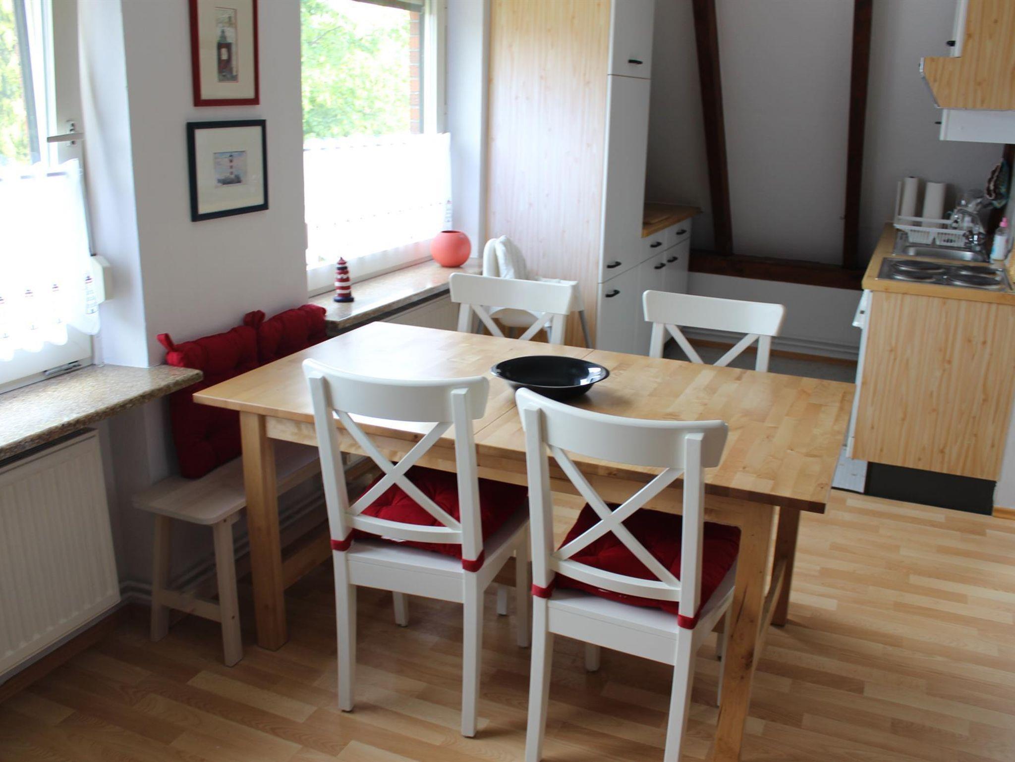 Die gemütliche und helle Ferienwohnung Ankergrund befindet sich in der Nähe zum Burhaver Strand. Sie besteht aus einem Wohnraum (TV und Radio) mit gemütlicher Wohnecke, Essecke und Küchenzeile mit Geschirrspüler, Backofen, Kühlschrank, Kaffeemaschine, Toaster und Wasserkocher. Die Wohnung verfügt über ein Doppelschlafzimmer mit Zugang auf den Balkon, ein Kinderbett und eine gute zusätzliche Schlafcouch, die zwei Schlafplätze bietet. Des Weiteren befinden sich im Dachgeschoss zwei Zweibettzimmer mit jeweils zwei Einzelbetten. Zwei Bäder mit Dusche, WC und Waschtisch und ein zusätzliches WC stehen Ihnen zur Verfügung. Der Garten bietet Ihnen eine Sitzmöglichkeit und einen Grill auf Anfrage.
