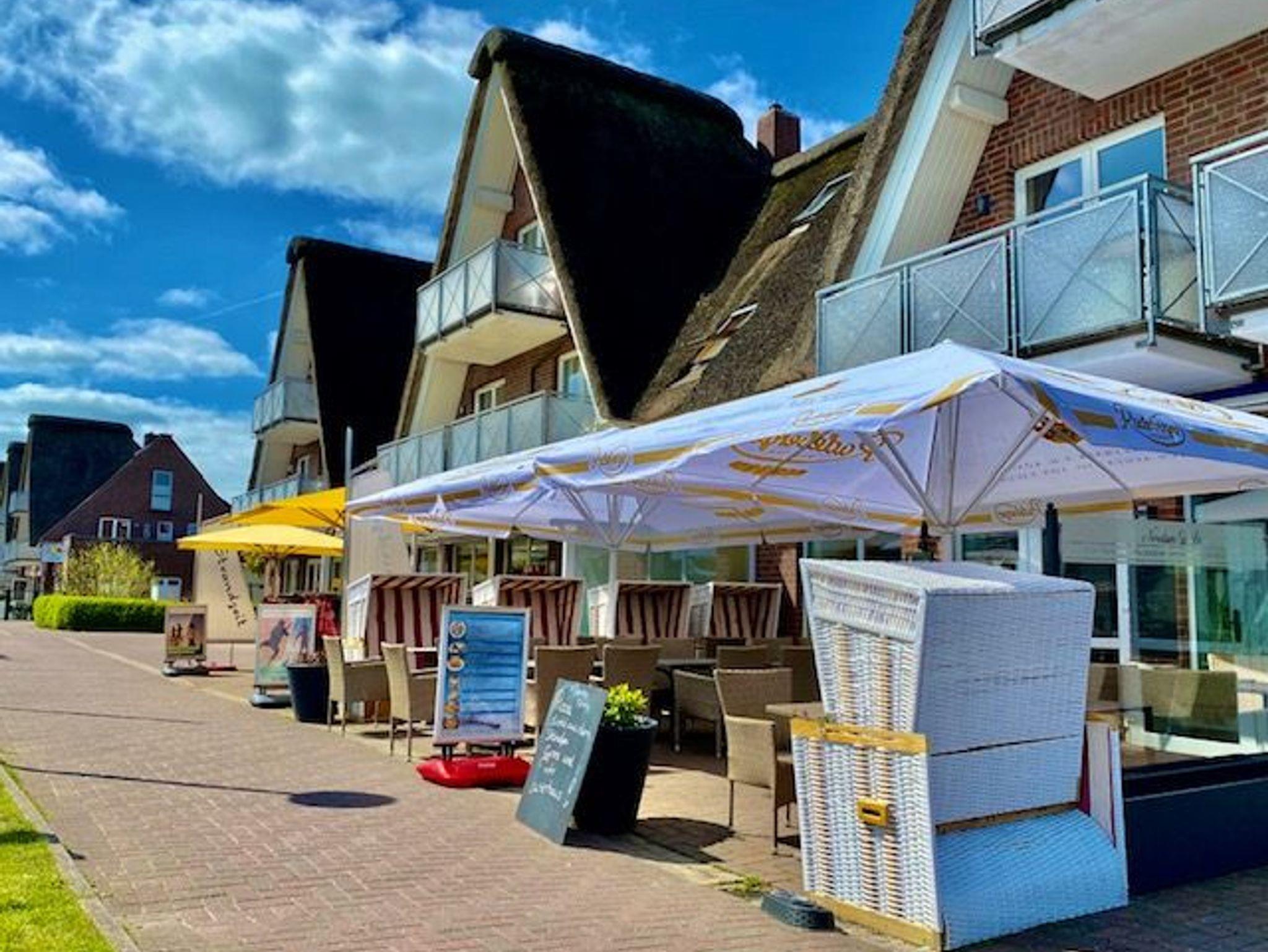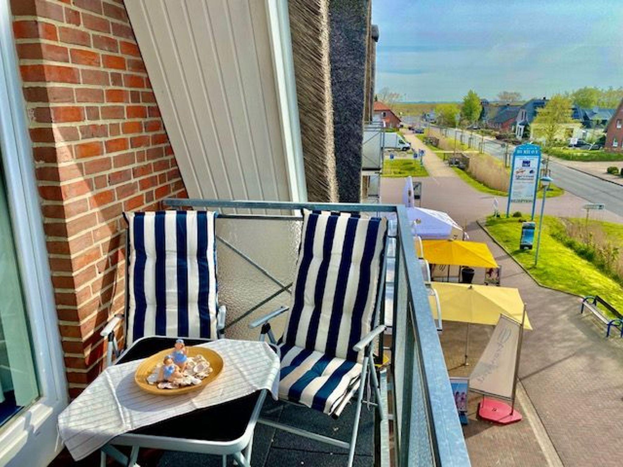 Unsere Ferienwohnung nur 200 m zum Deich und Balkon mit Deichblick befindet sich direkt auf der Flaniermeile Strandallee mit Restaurants und Cafés, welche zum Schlemmen und Genießen einladen.