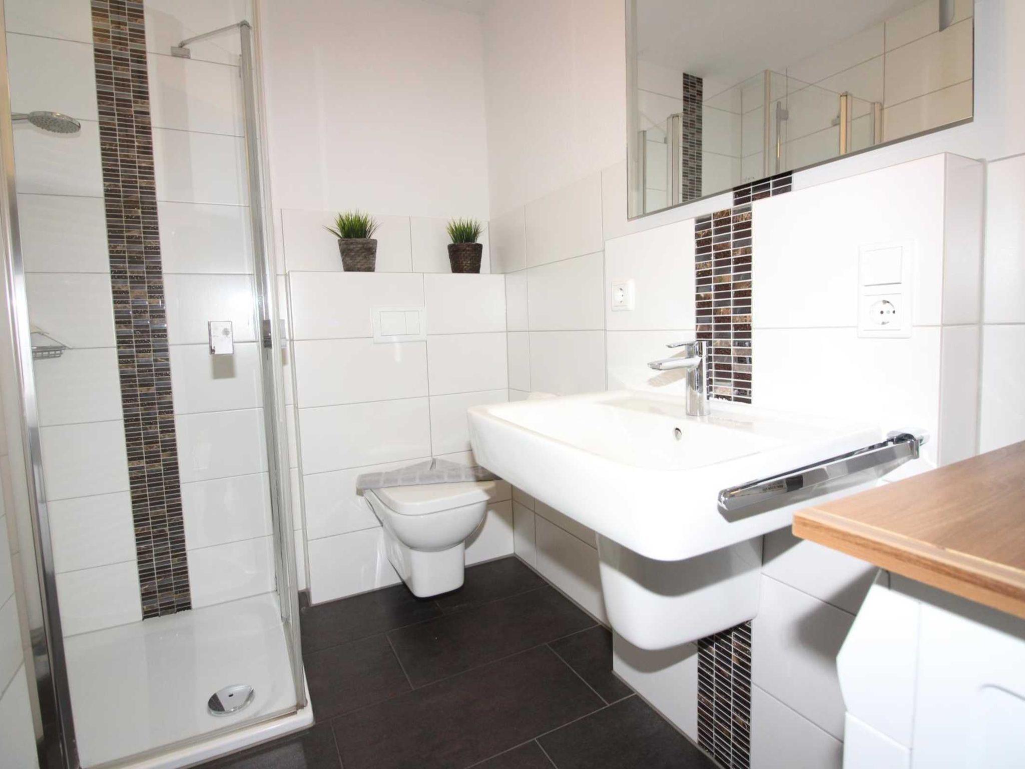 Hier befinden sich zwei Schlafräume, jeweils mit LED-Flachbildfernseher, sowie ein hochwertiges Bad mit Glasduschkabine, Handtuchheizkörper, Fußbodenerwärmung, Waschtischunterschrank, etc.