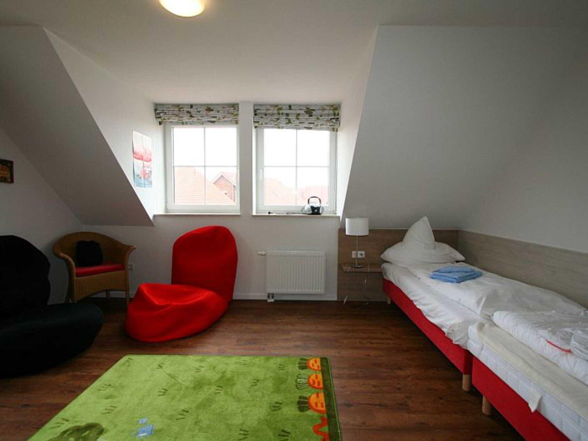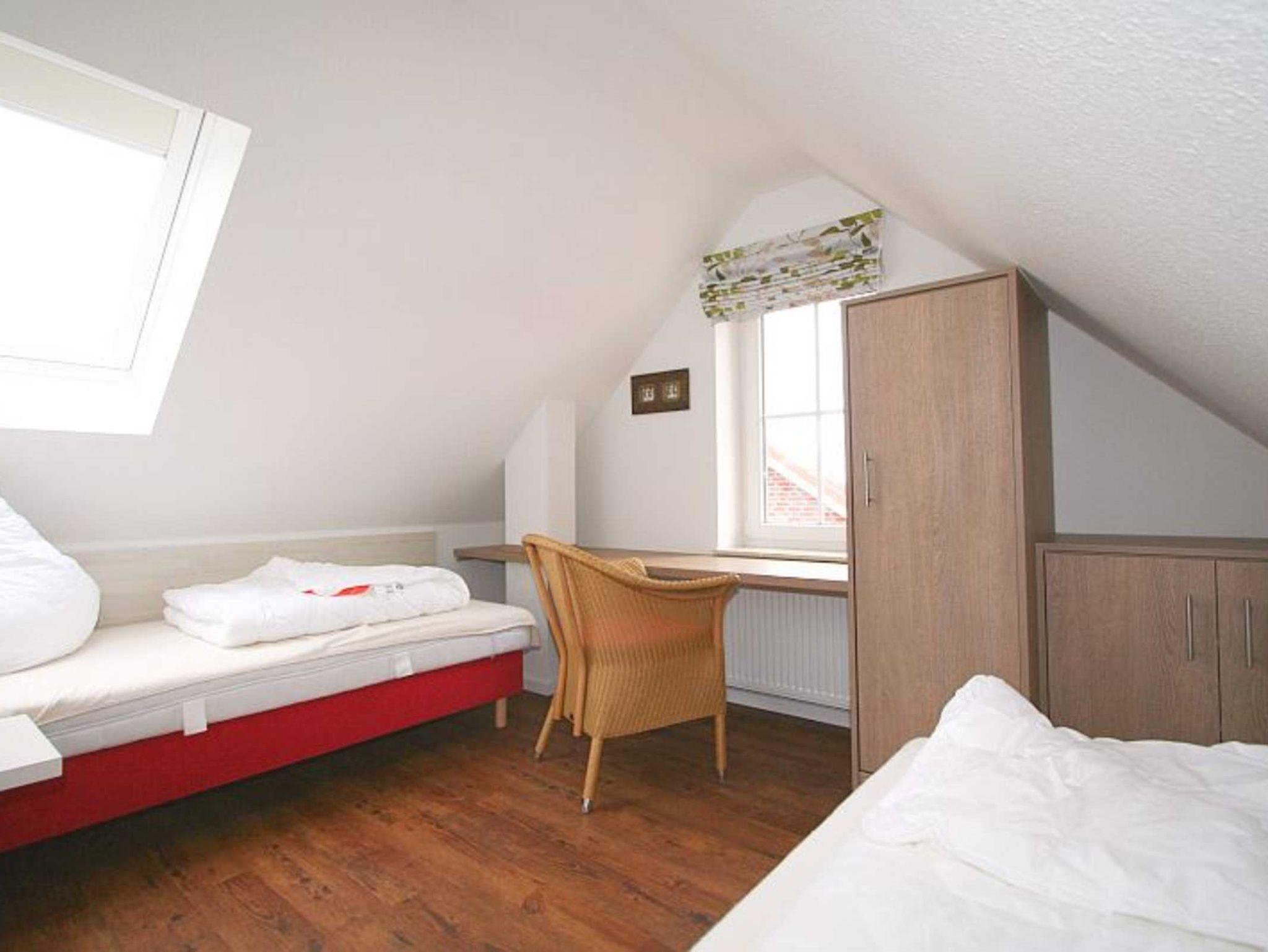 Im ausgebauten Spitzboden ist ein weiteres sehr schönes und gemütliches Schlafzimmer mit zwei Betten aufweist. Hier befindet sich ein weiterer Flachbildschirmfernseher.