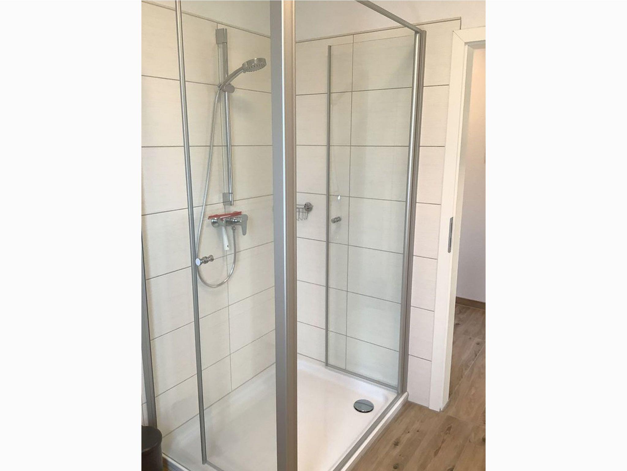 Im Badezimmer erwartet Sie eine Dusche, ein WC, ein Waschbecken und ein Föhn.