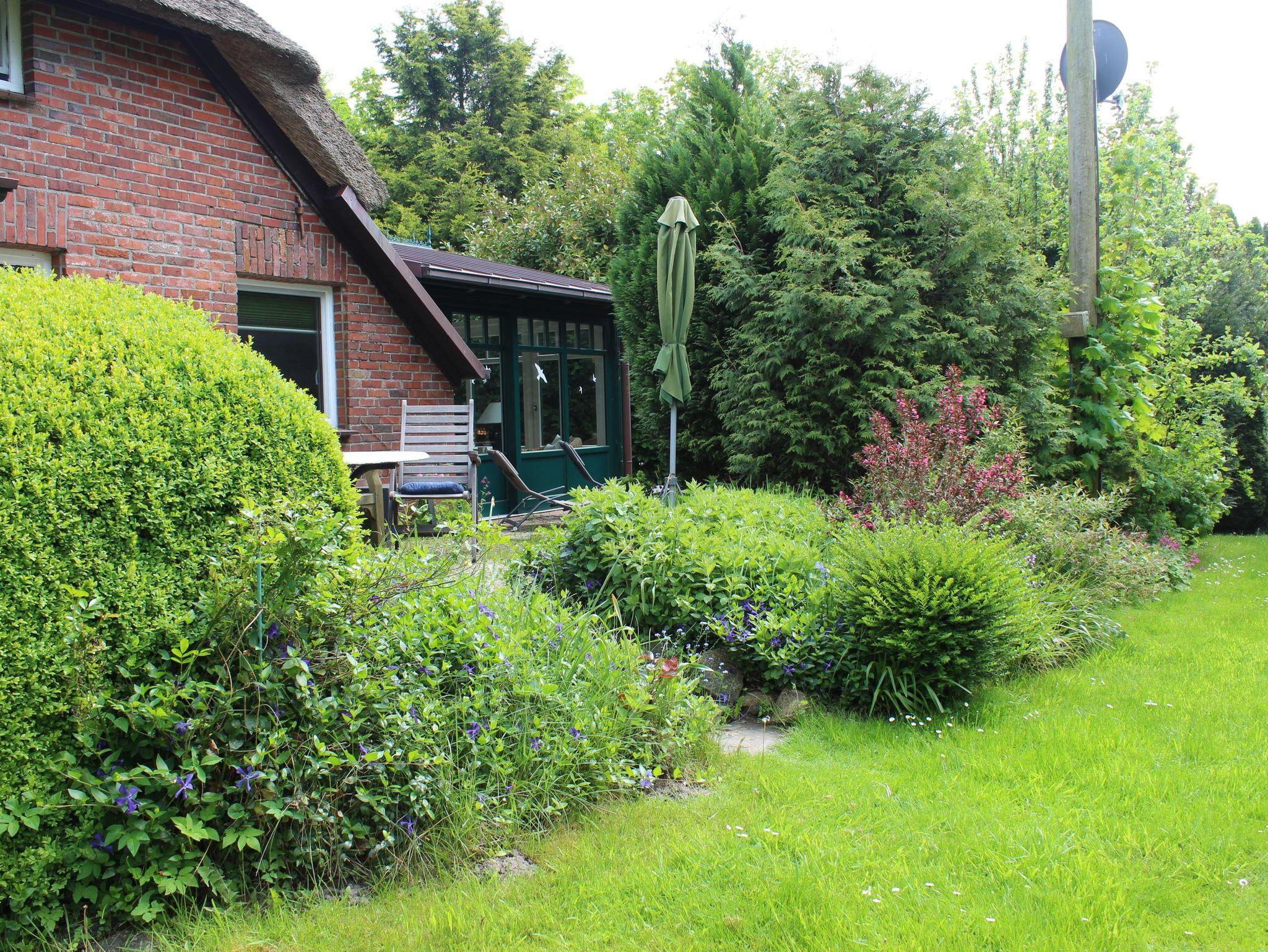 Das Ferienhaus Am Deich 30 ist ein kleines Schmückstück. Direkt am Deich, inmitten einem traumhaft schönen Garten, wo das Wort Natur pur noch hält, was es verspricht, befindet sich das urige, regionstypische Reetdachhaus mit seinen 4 Wohlfühloasen, in denen Sie den Alltag hinter sich lassen können. Jede Wohnung verfügt über eine eigene Terrasse mit Gartenmöbeln sowie einen Parkplatz. Eine Unterstellmöglichkeit für Fahrräder ist ebenfalls vorhanden.