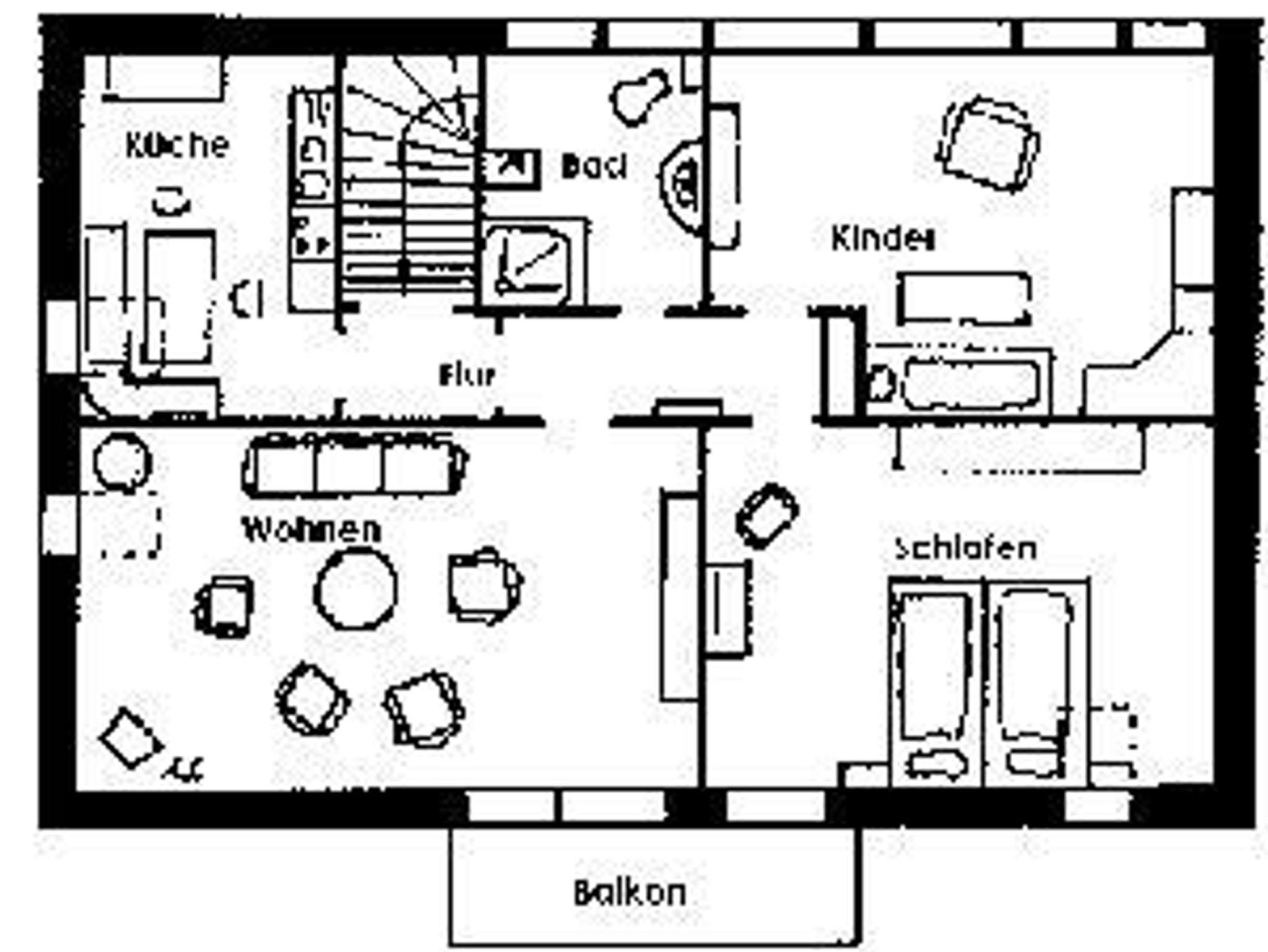 Die Ferienwohnung 1 hat ein gemütlich eingerichtetes großes Wohnzimmer, in dem Sie nicht nur TV sondern auch Spiele zur Verfügung haben. Die Küche mit Essgruppe ist u.a. mit einem Backofen, Kühlschrank mit Gefrierfach, Mikrowelle, Eierkocher und Toaster sehr gut ausgestattet. Im Doppelschlafzimmer steht zusätzlich ein Gästebett und ein Fernseher, im zweiten Schlafzimmer befindet sich, ein Fernseher, ein Kindergitterbett sowie Etagenbetten, die aber auch einzeln stellbar sind. Das Bad hat Dusche/WC und eine Waschmaschine (die gegen eine Gebühr benutzt werden kann). Diese Wohnung verfügt über einen Balkon mit Sitzmöbel.