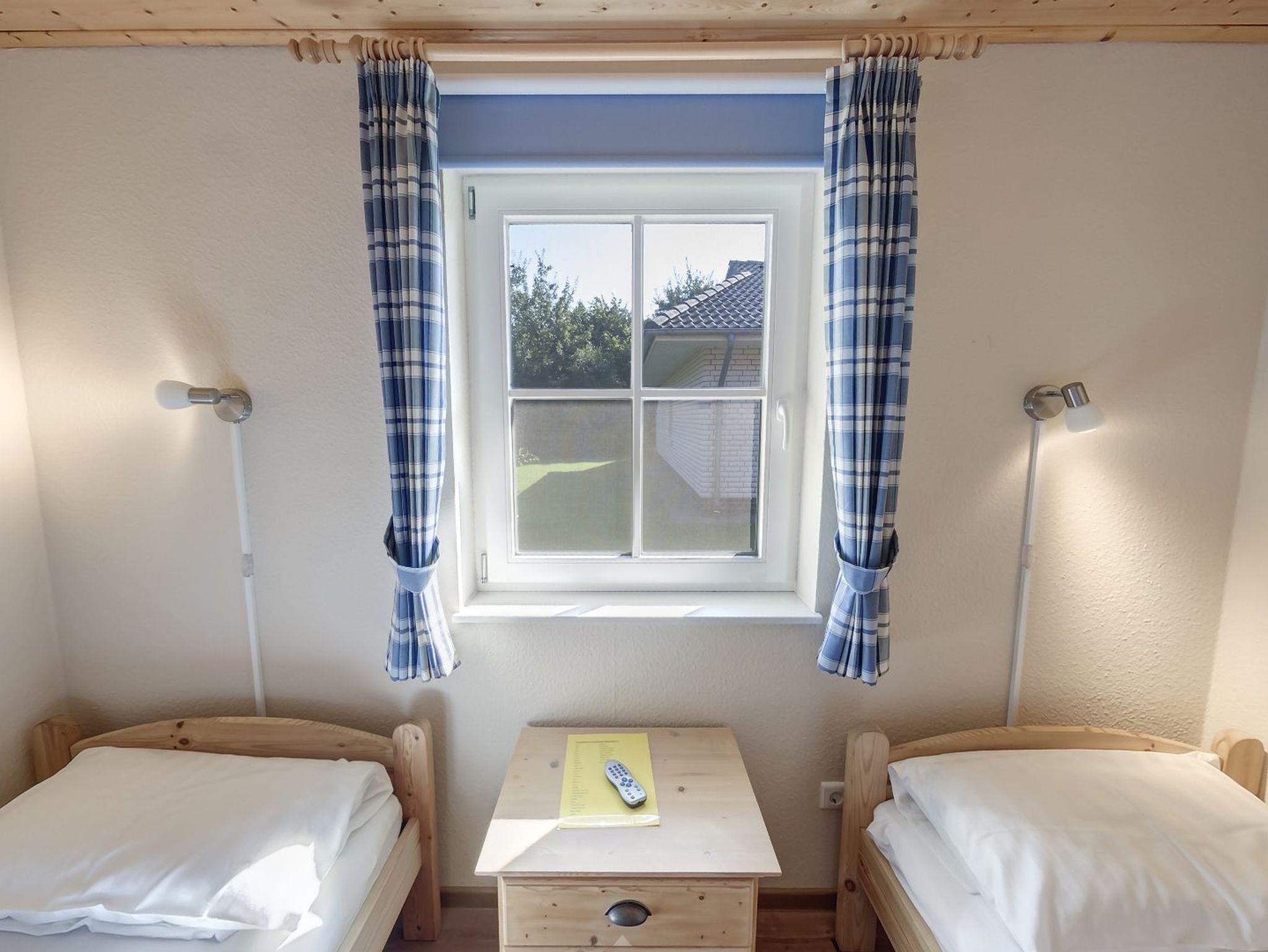 Großzügig geschnittener Bungalow für max. 6 Personen (zzgl. einem Kleinkind). Gemütlicher Wohnraum mit Kaminofen, eine gut ausgestattete Küche mit Essbereich sowie 2 Bäder mit Dusche und WC und 3 Schlafräume (einmal mit Doppelbett, zweimal mit zwei Einzelbetten). Von einem der drei Schlafzimmer führt eine Holztreppe zur 2. Wohnebene mit einem zweiten Fernseher - ein eigenes kleines Reich für kleine und große Kinder!