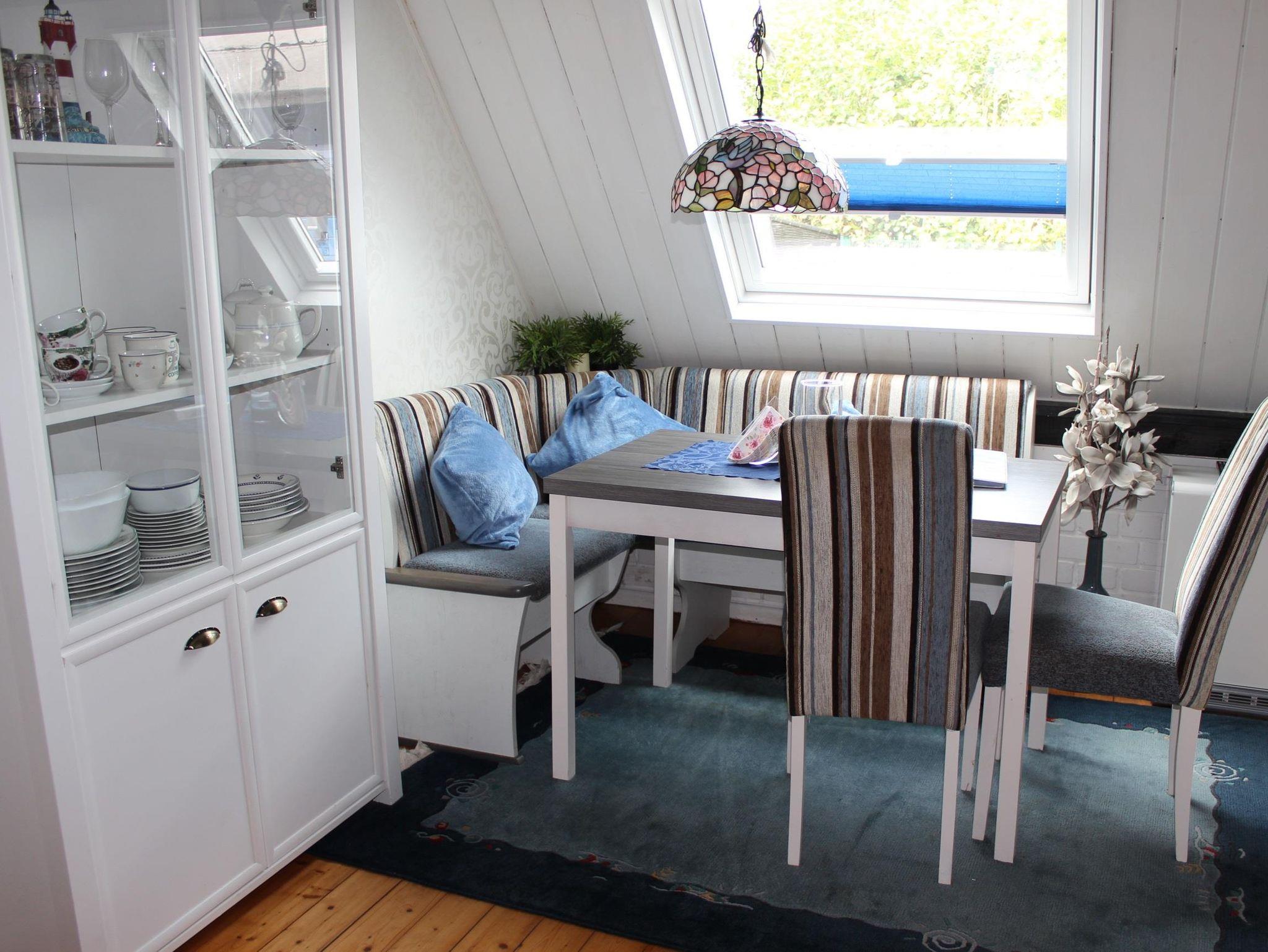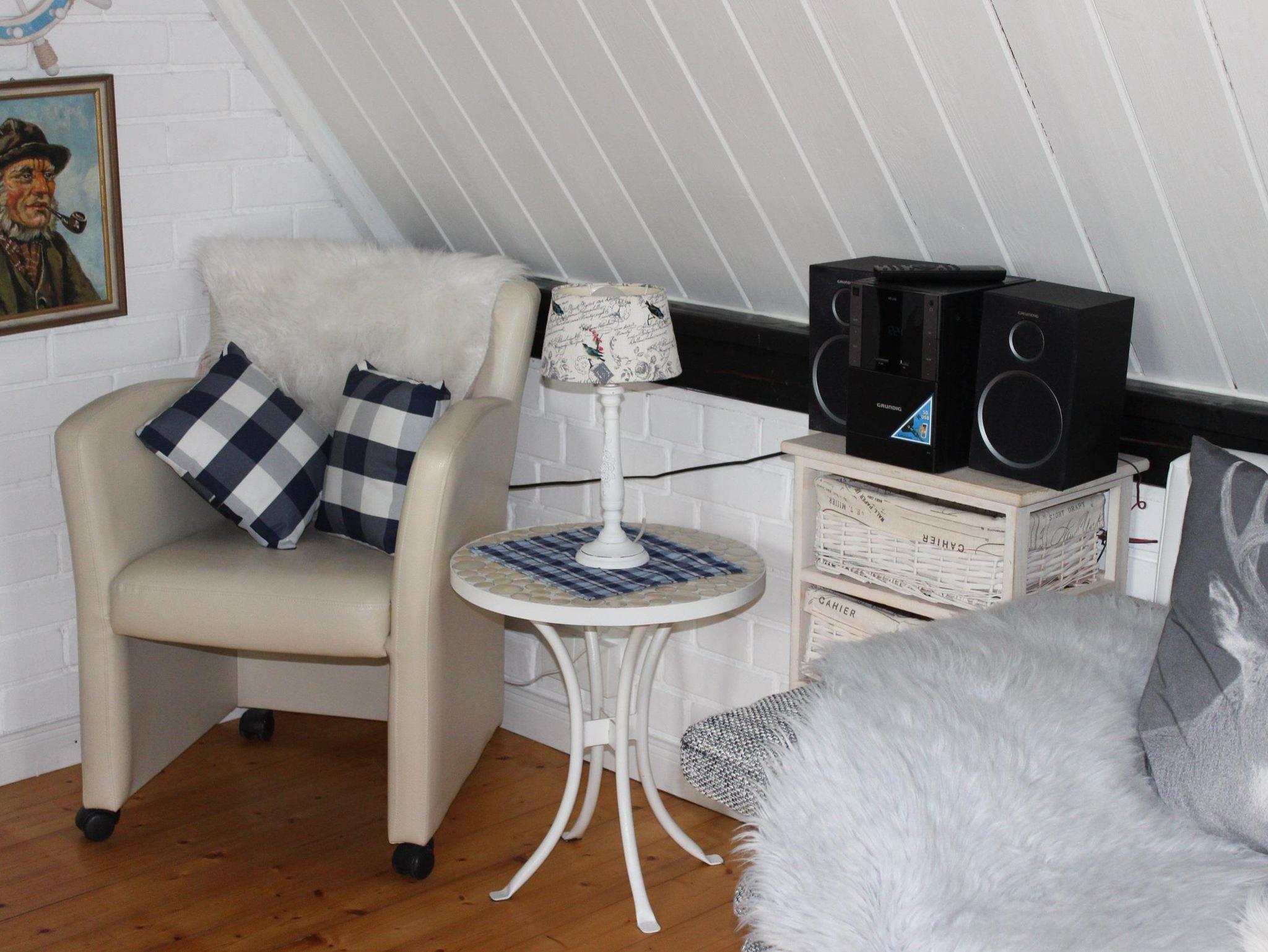 Das kleine aber sehr gemütliche Ferienhaus in Burhave wurde im Jahr 2016 um ein Schlafzimmer vergrößert und renoviert. Es besteht im Erdgeschoss aus einem hellen Wohnraum mit Essecke und einer Schlafcouch, einer offenen Küchenzeile mit Senseo-Kaffeemaschine und Spülmaschine, einem Doppelschlafzimmer und einem renovierten kleinen Bad. Im Dachgeschoss befindet sich das Schlafzimmer, in dem bei Bedarf auch ein Kinderbett aufgestellt werden kann.