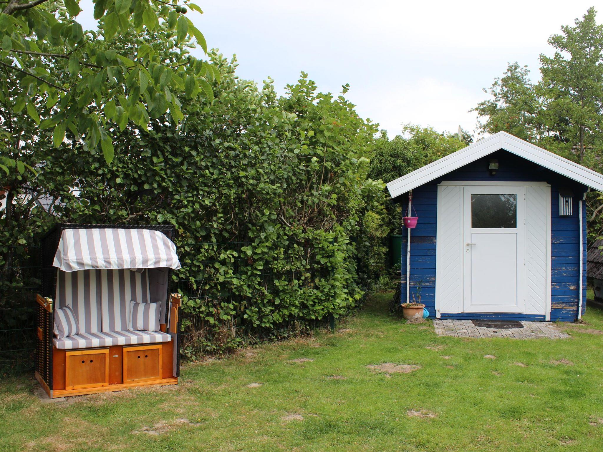 Fahrräder können in einem kleinen Gartenhaus untergestellt werden. Am Strand Burhave steht Ihnen ein gemieteteter Strandkorb zur Verfügung.