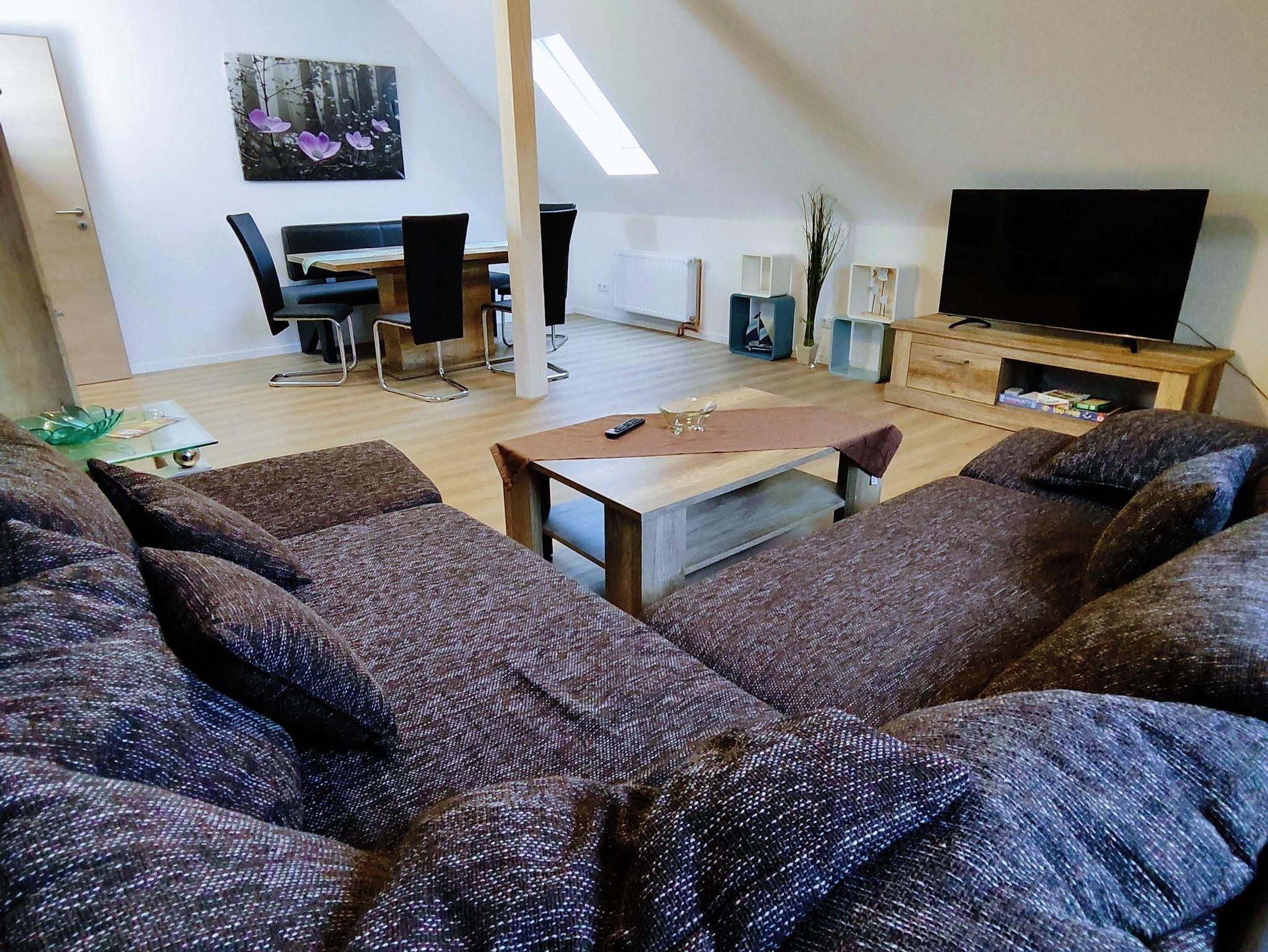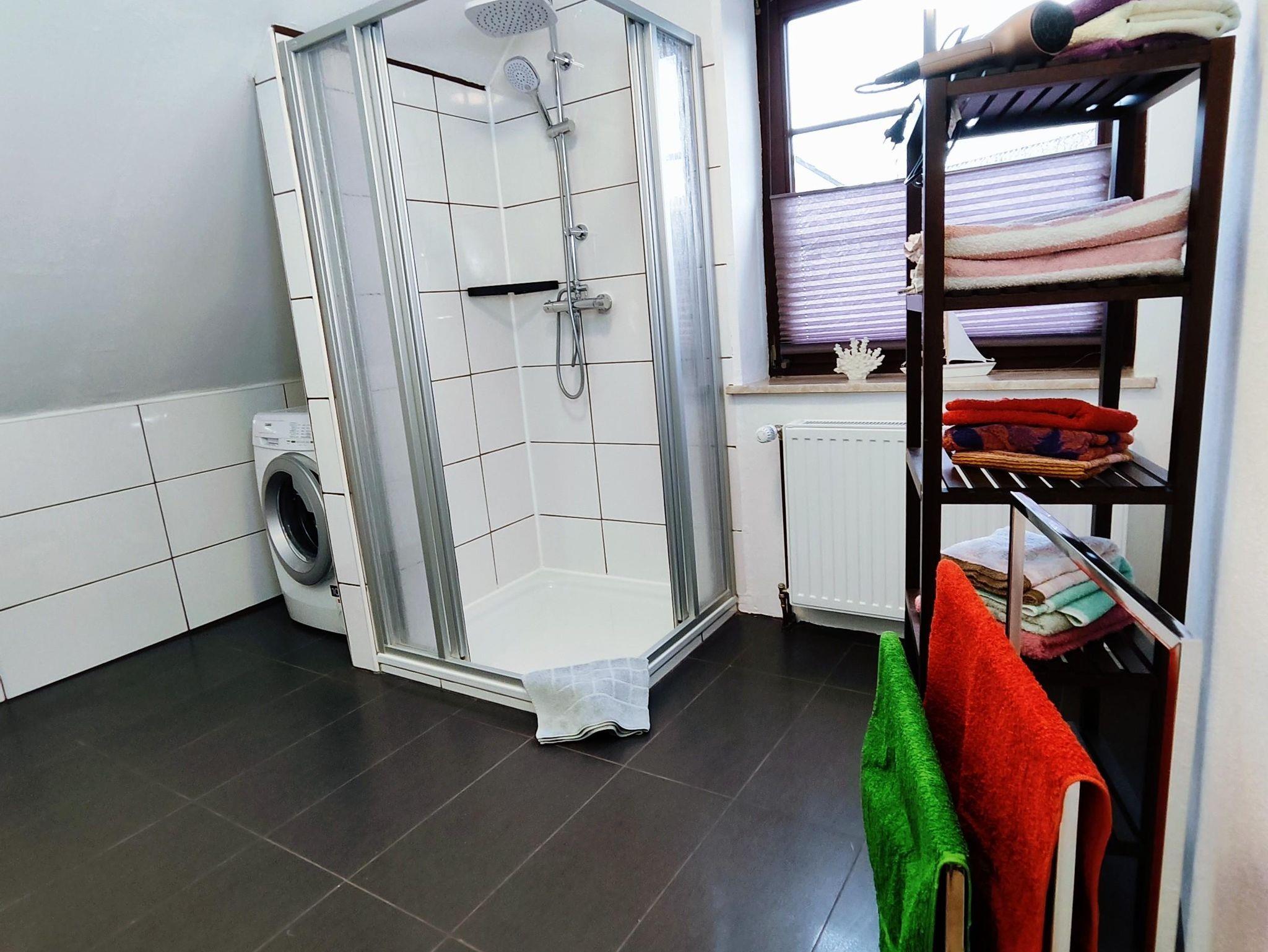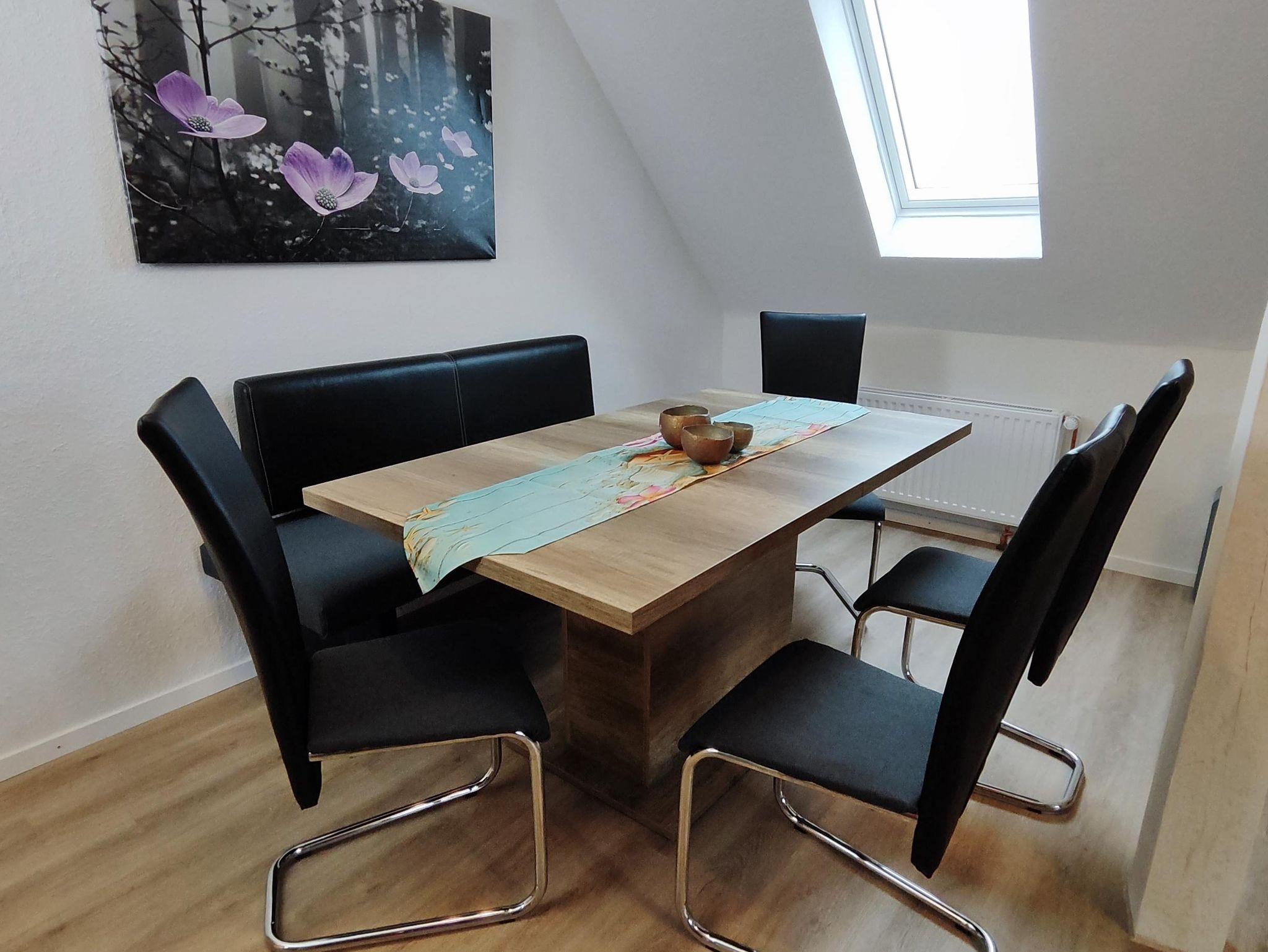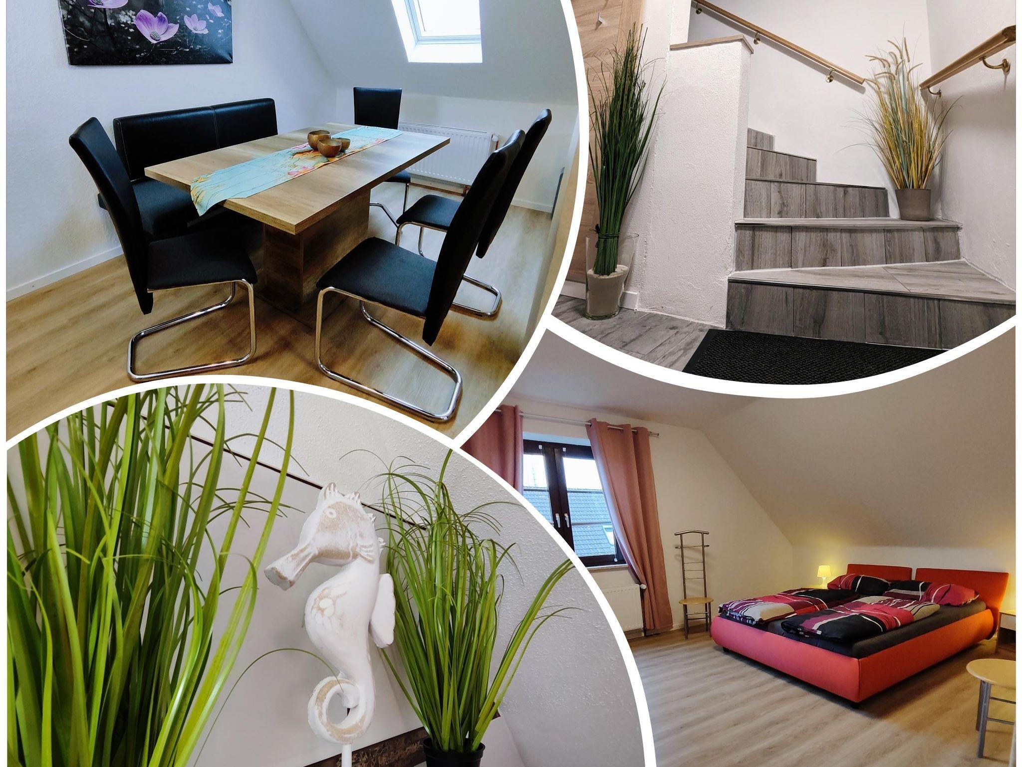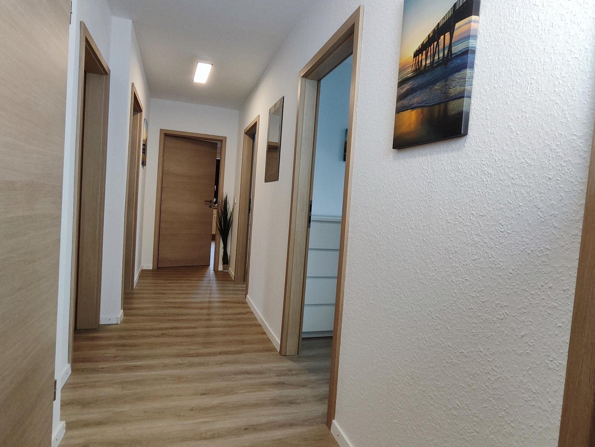 Die 2022 neu ausgebaute Ferienwohnung ist großzügig und modern eingerichtet. Sie befindet sich im 1. Stock und verfügt über 3 Schafzimmer. Eins ist augestattet mit einem Doppelbett, eins mit einem Einzelbett und eins mit einem Bett mit Auszug zum Doppelbett. Das großzügige Wohnzimmer verfügt über einen Essbereich, in dem alle Platz finden. Im Duschbad befindet sich eine Rainshowerdusche, ein WC und die Waschmaschine.In der Küche findet man alles, was die Familie braucht: Kaffeemaschine, Kühlgefrierschrank, Mikrowelle, Geschirrspülmaschine, Backofen mit Ceranfeld,einen Wasserkocher und natürlich einen kleine Sitzecke. Zur Wohnung gehört zudem eine Terrasse und ein eigener Gartenbereich.