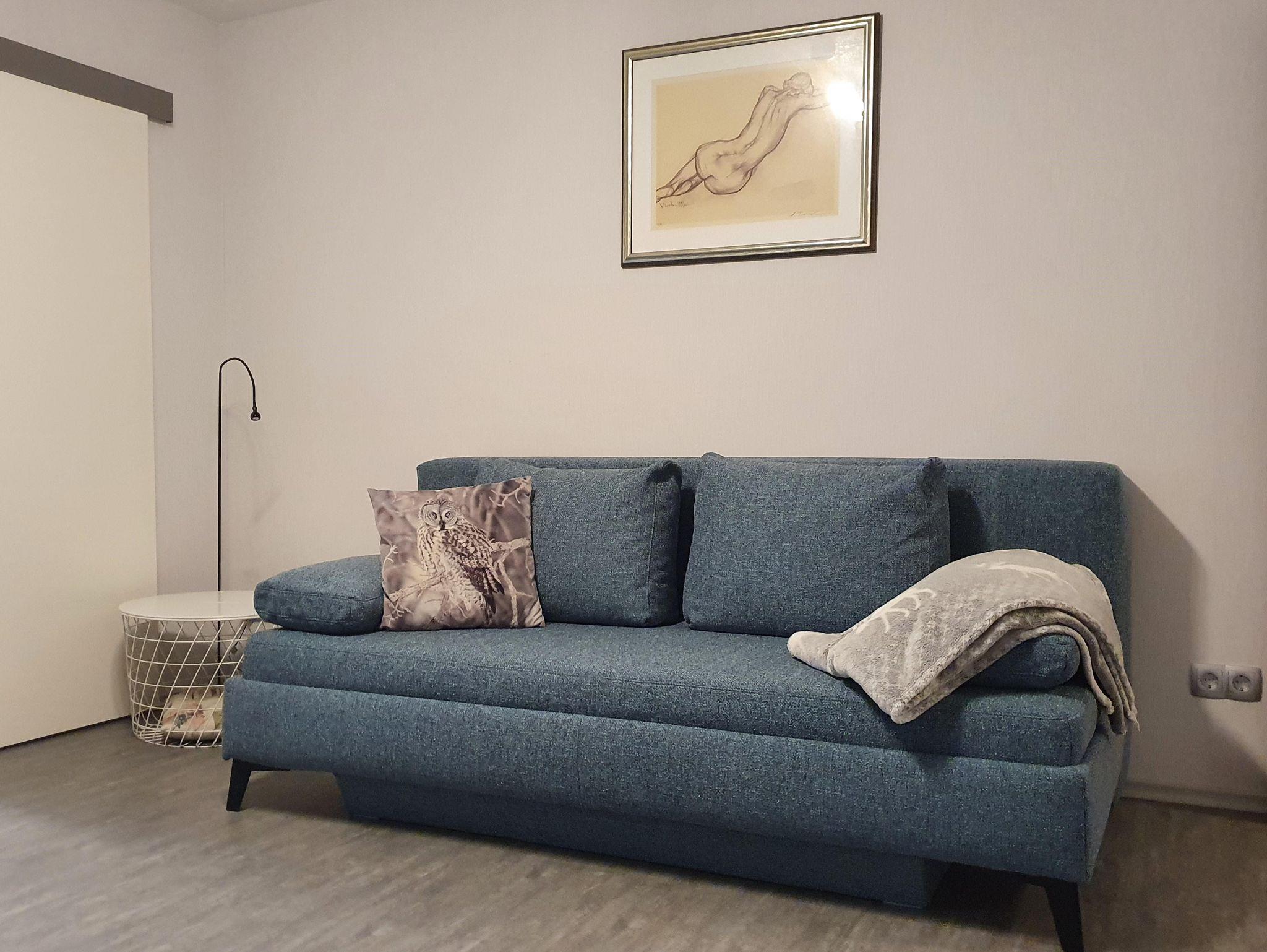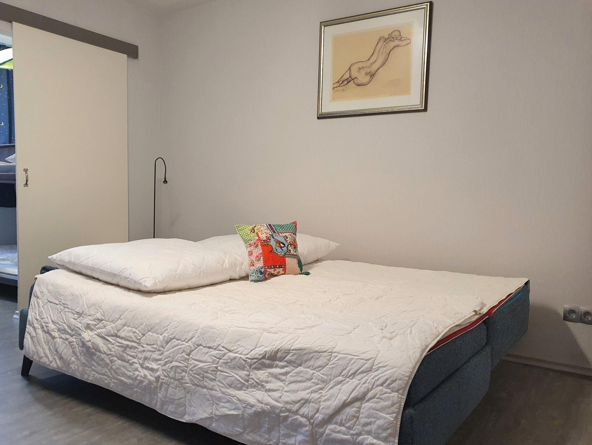 Die renovierte Ferienwohnung Kajüte ist klein aber fein. In der ersten Etage befindet sich unsere helle und gemütliche Ferienwohnung mit einem Wohn-, Essbereich und einer gemütlichen Wohnecke mit TV und einer Essecke. Der Wohn-/Schlafraum ist mit einem Schlafsofa (Schlaffläche 160 x 200 cm) ausgestattet. Durch eine Schiebetür abgetrennt befindet ein separates Schlafzimmer (Kinderzimmer) mit einem Bett mit einer Schlaffläche von 140 x 200 cm. Eine kleine und vollausgestattete Küche mit Küchenzeile, Herd, Kühlschrank, Kaffeemaschine, Wasserkocher, ein Raclette und eine Heißluftfriteuse stehen Ihnen zur Verfügung. Das Bad hat eine Badewanne, Waschtisch und WC. Auf dem Balkon lässt sich ein toller Urlaubstag gemütlich ausklingen. Diese Ferienwohnung lässt keine Wünsche offen.
