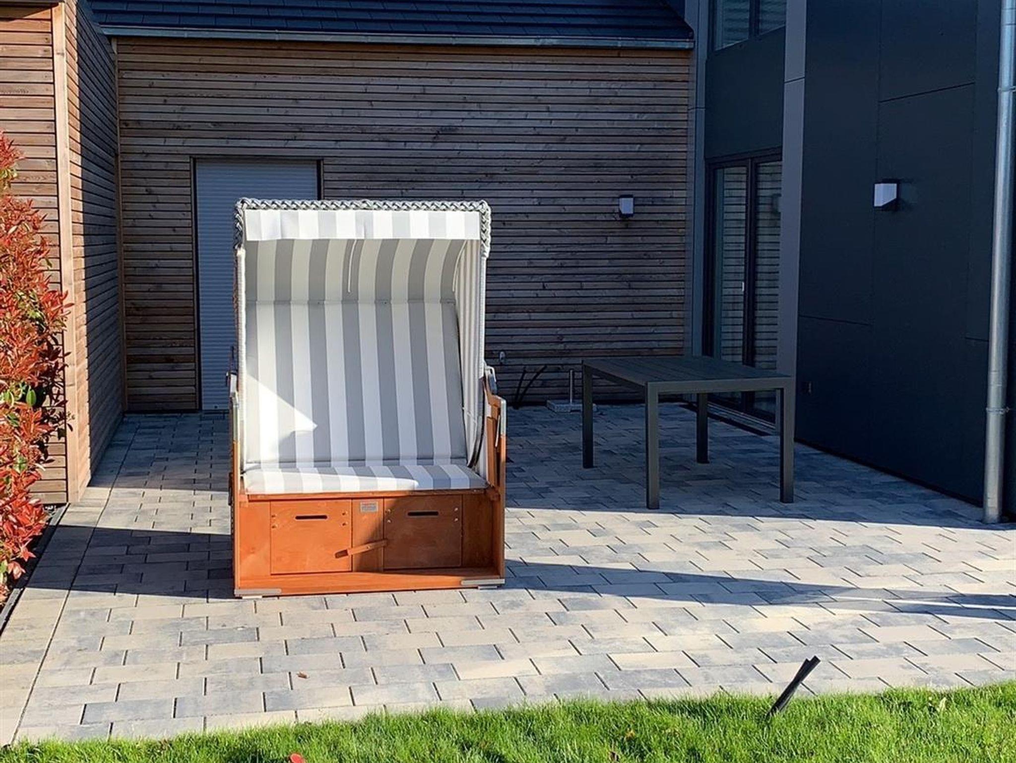 Die ebenerdige und barrierefreie Wohnung lässt keine Urlaubswünsche offen, auch für Menschen mit Gehbehinderung und Rollstuhlfahrer bietet sie tollen Komfort. Ankommen und Wohlfühlen ist hier die Devise. Schon beim Betreten besticht der offene und luxuriöse Koch- und Wohnbereich. Die Küchenzeile mit Mittelblock ist mit allem ausgestattet, was das Herz begehrt und garantiert gesellige Stunden. Vom Wohn-/Essbereich mit Smart-TV und Hifi-Anlage geht es auf die großzügige Terrasse, die mit Strandkorb, Gartenmobiliar und Kugelgrill für erholsamen Aufenthalt im Freien sorgt.