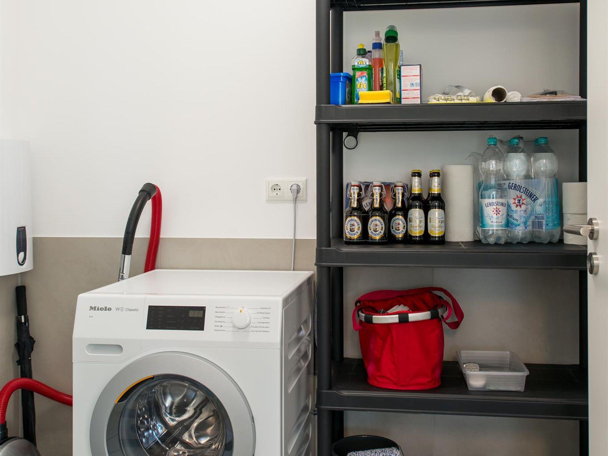 Weitere Extras: eigener Hauswirtschaftsraum mit Waschmaschine und Bügelmöglichkeit, Alarmsystem in den Badezimmern, ein Fensterelement mit Insektenschutzgitter in jedem Zimmer, Zimmertürelemente alle 1 m breit.