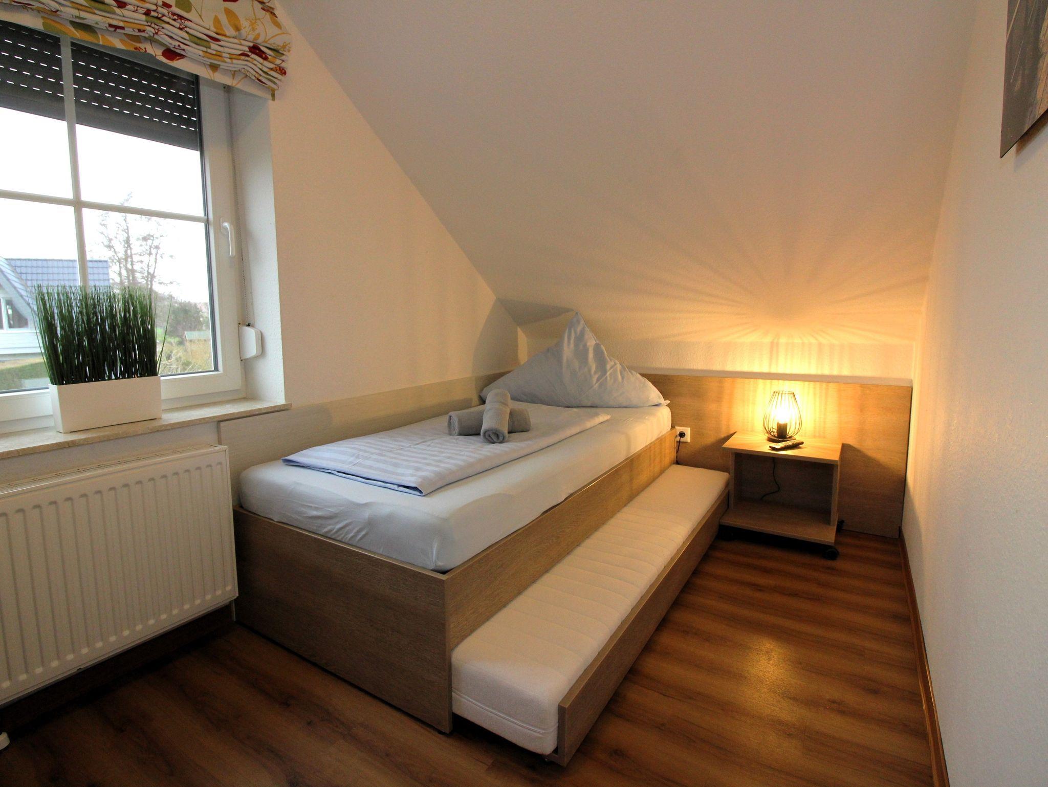 ein drittes Schlafzimmer mit Einzel- und Ausziehbett, 32“-LED-Fernseher