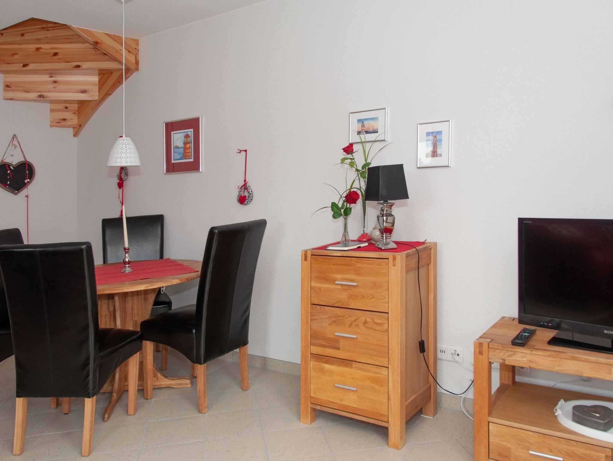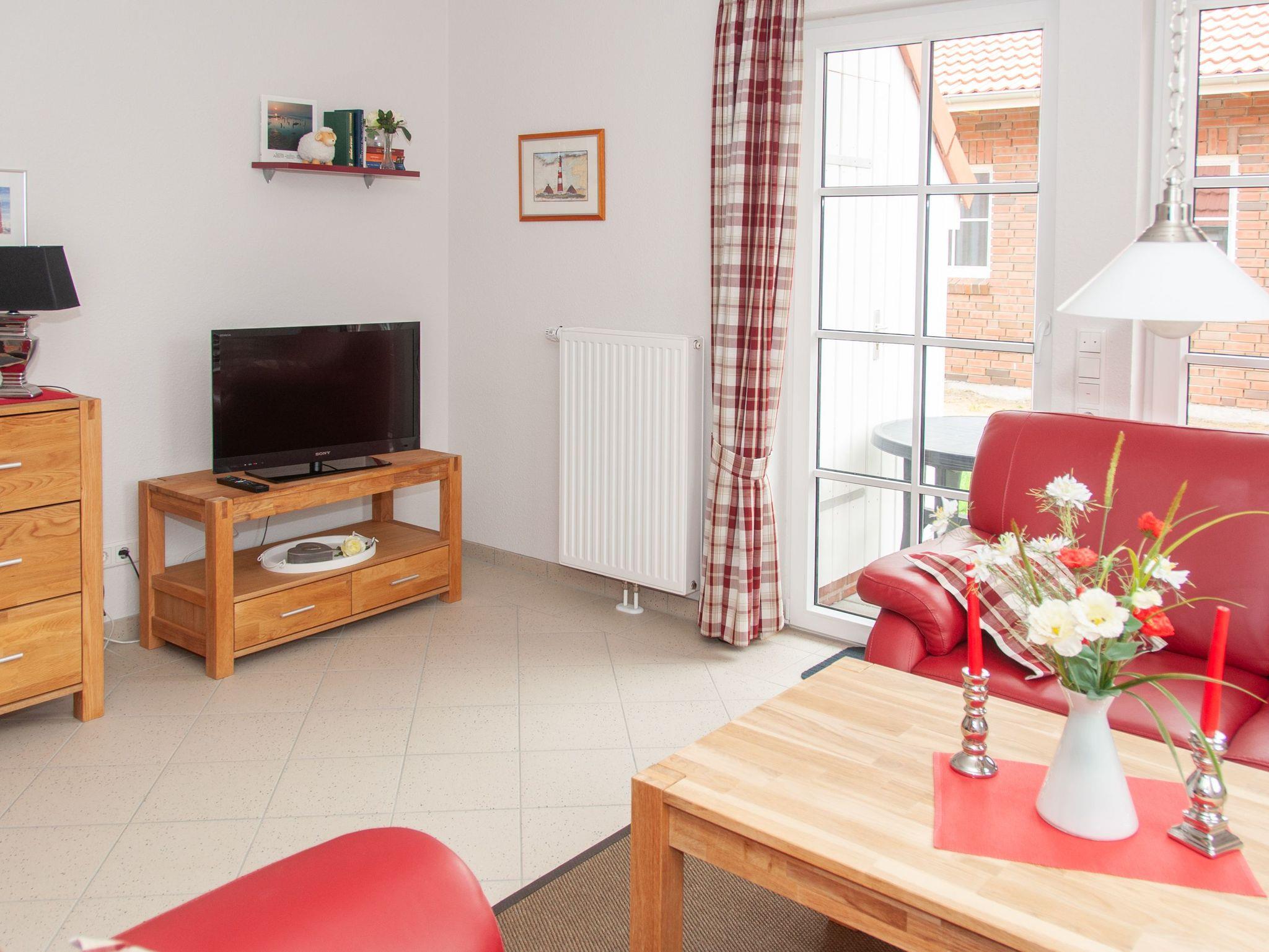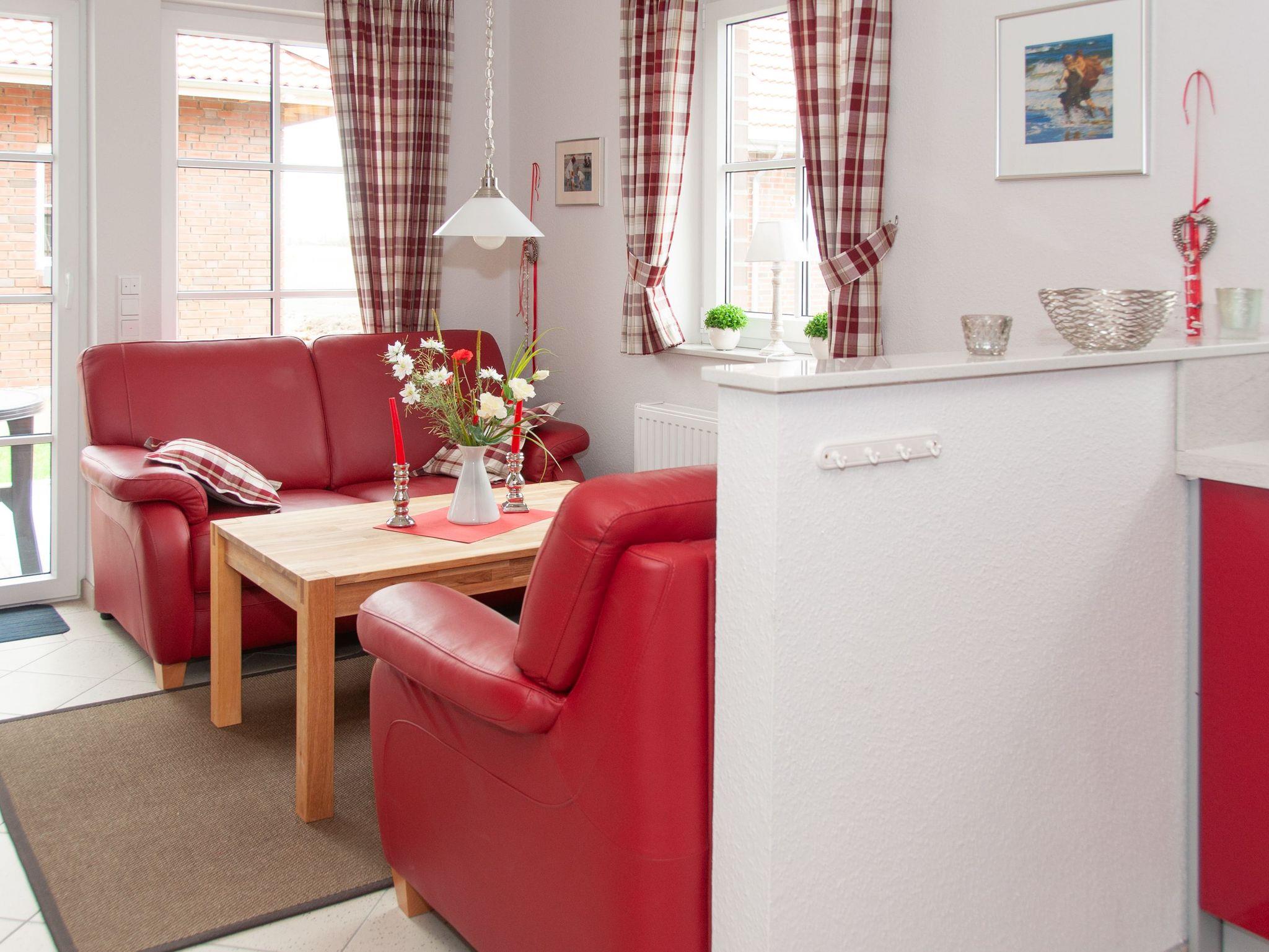 Anschließend an das Wohnzimmer befindet sich eine komplett eingerichtete Küche. Auch erwartet Sie hier eine Terrasse. Genießen Sie beim Frühstücken oder Relaxen die Sonnenstrahlen und die frische Nordseeluft! Aber auch außerhalb der Hautsaison ist das Haus ein idealer Ausgangspunkt für Ihre Erkundungen an der Nordseeküste.