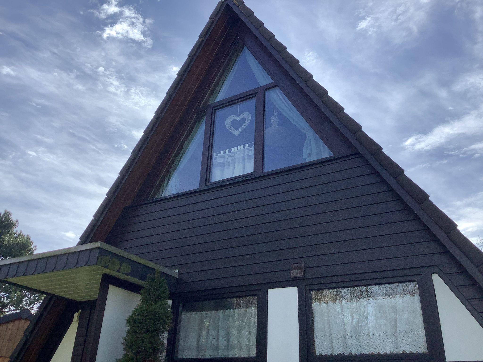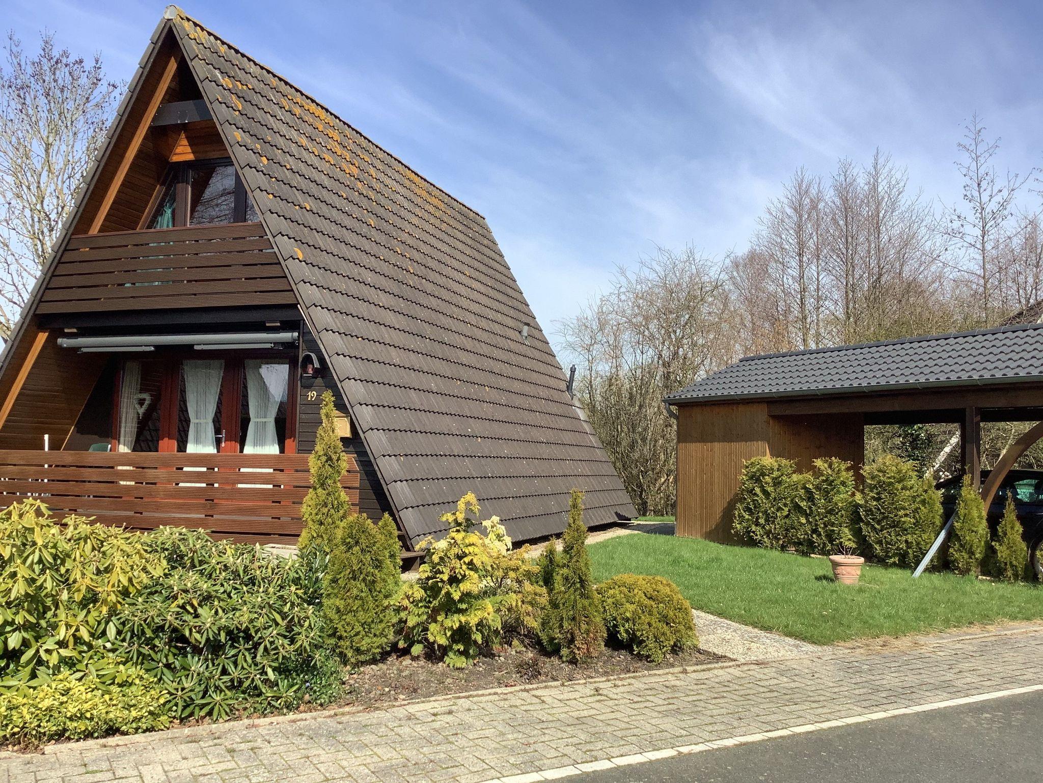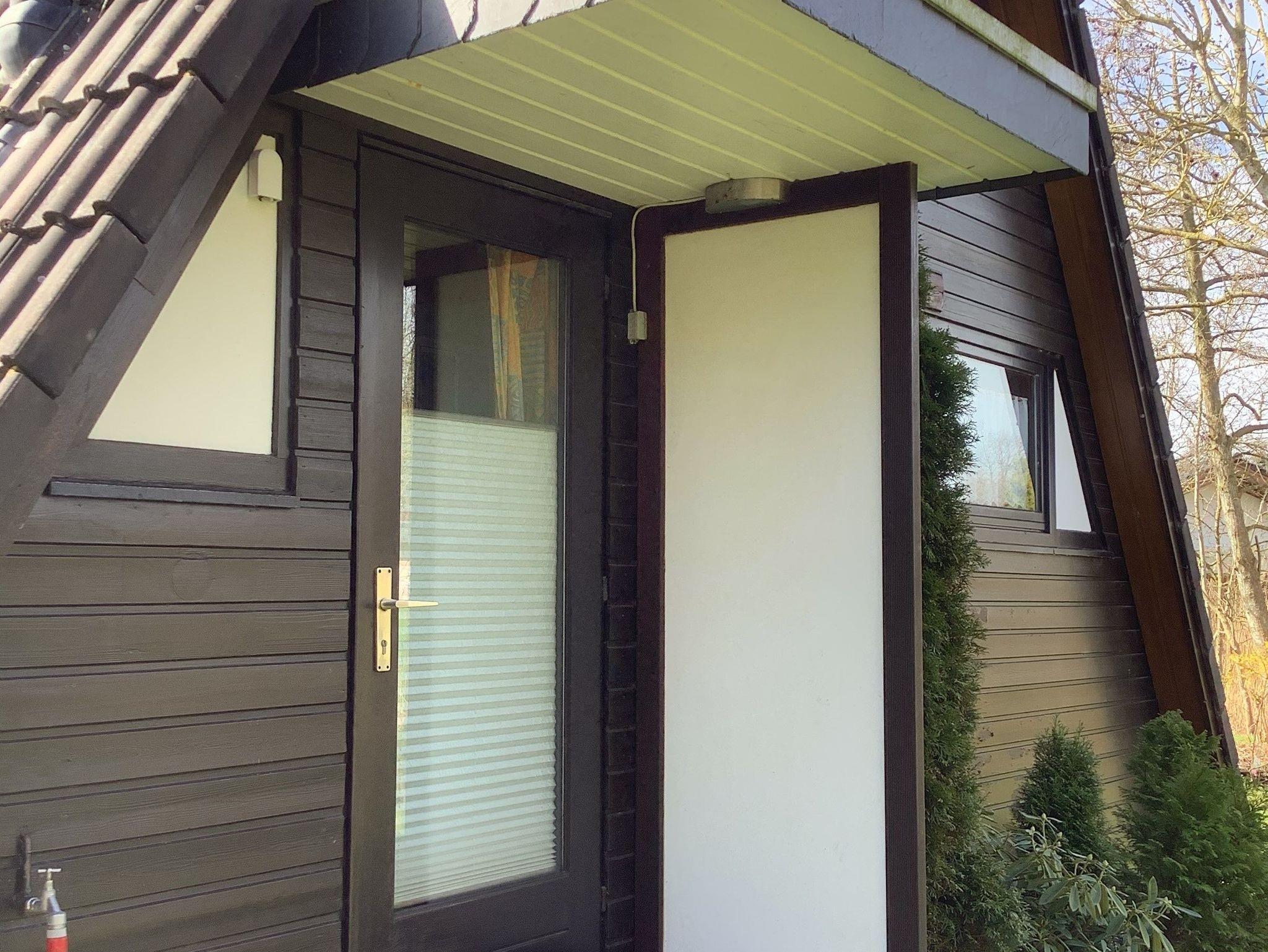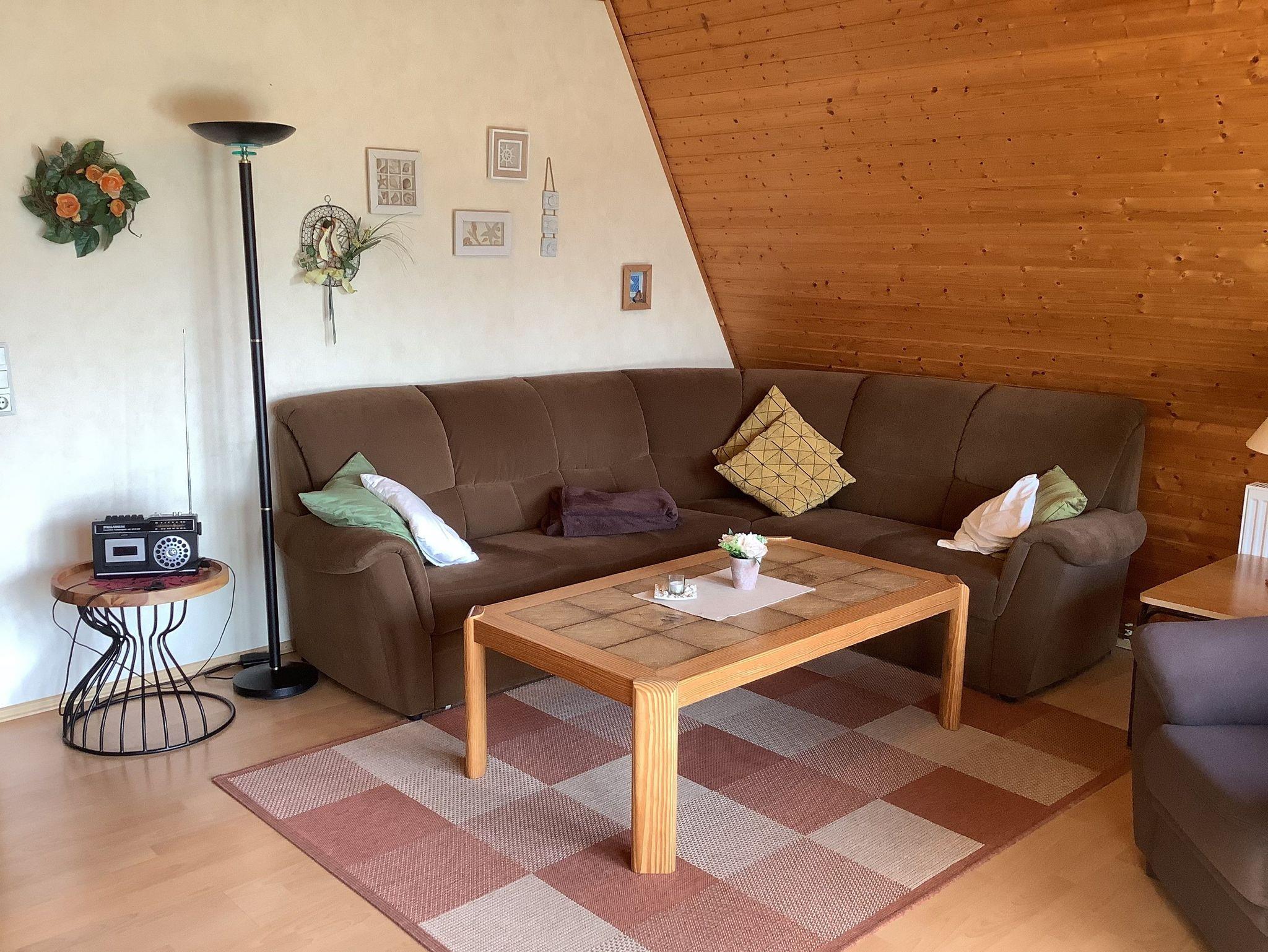 Urgemütliches Ferienhaus im Stil einer Finnhütte, ca. 68 qm, für max. 4 Personen, Wohnraum mit Essecke, Küche Bad mit Dusche und WC