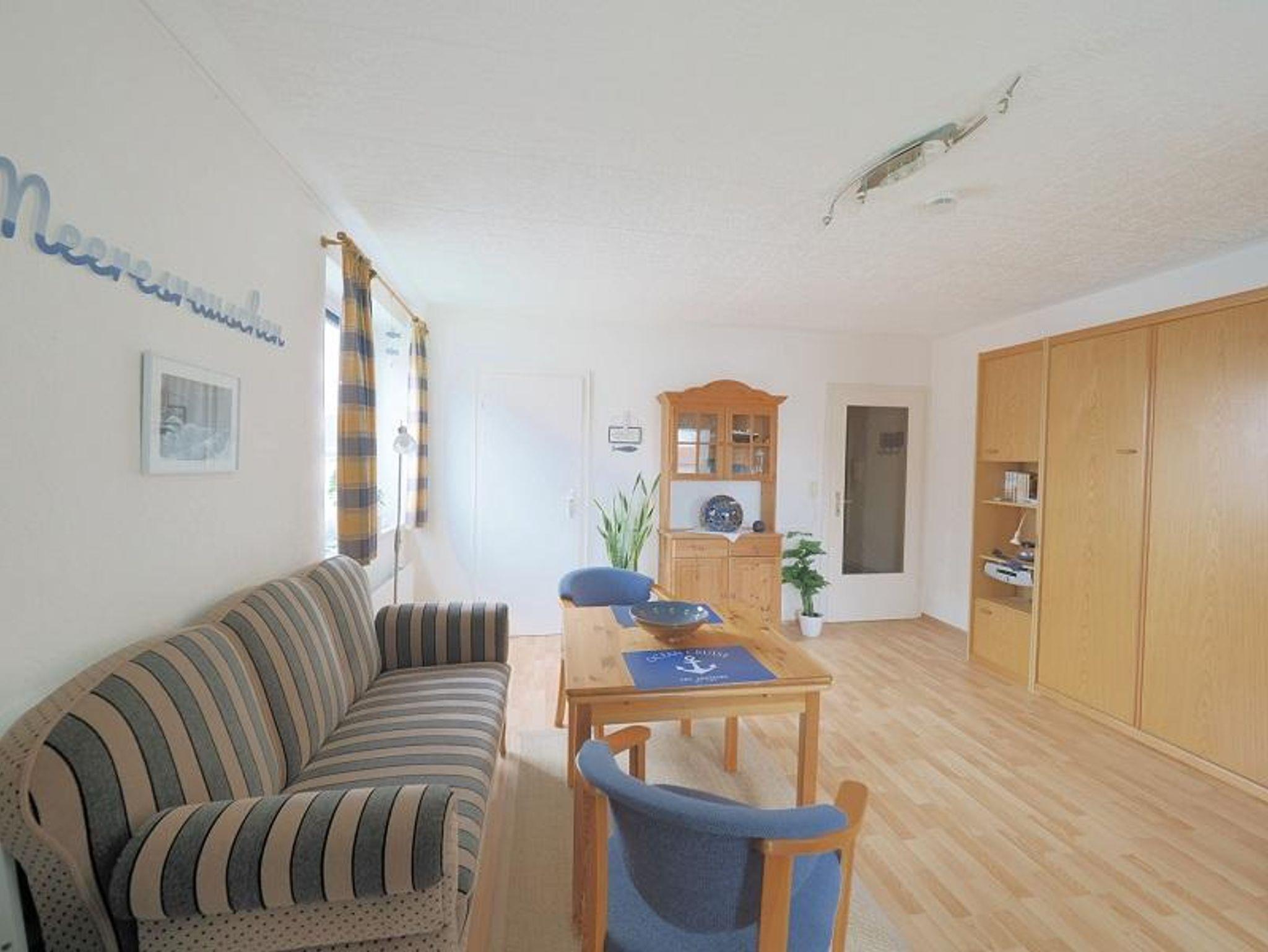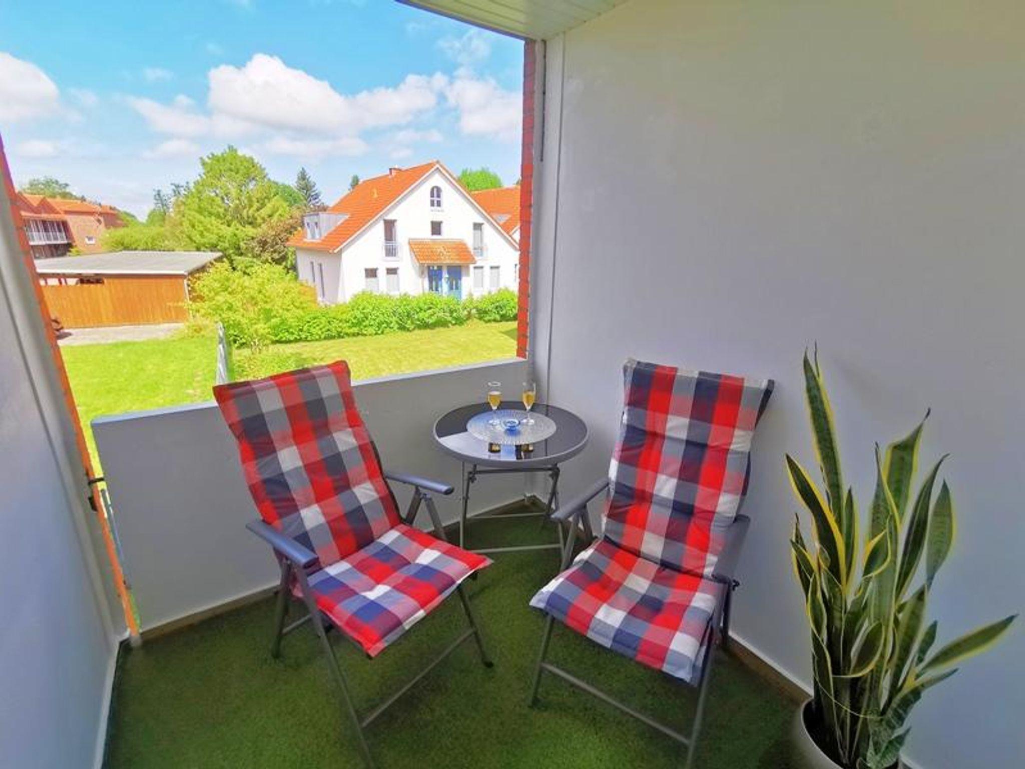 Gemütliche Ferienwohnung mit Balkon, Hallenbad und Sauna, zentral in Burhave, nahe Strand und Einkaufsmöglichkeiten.