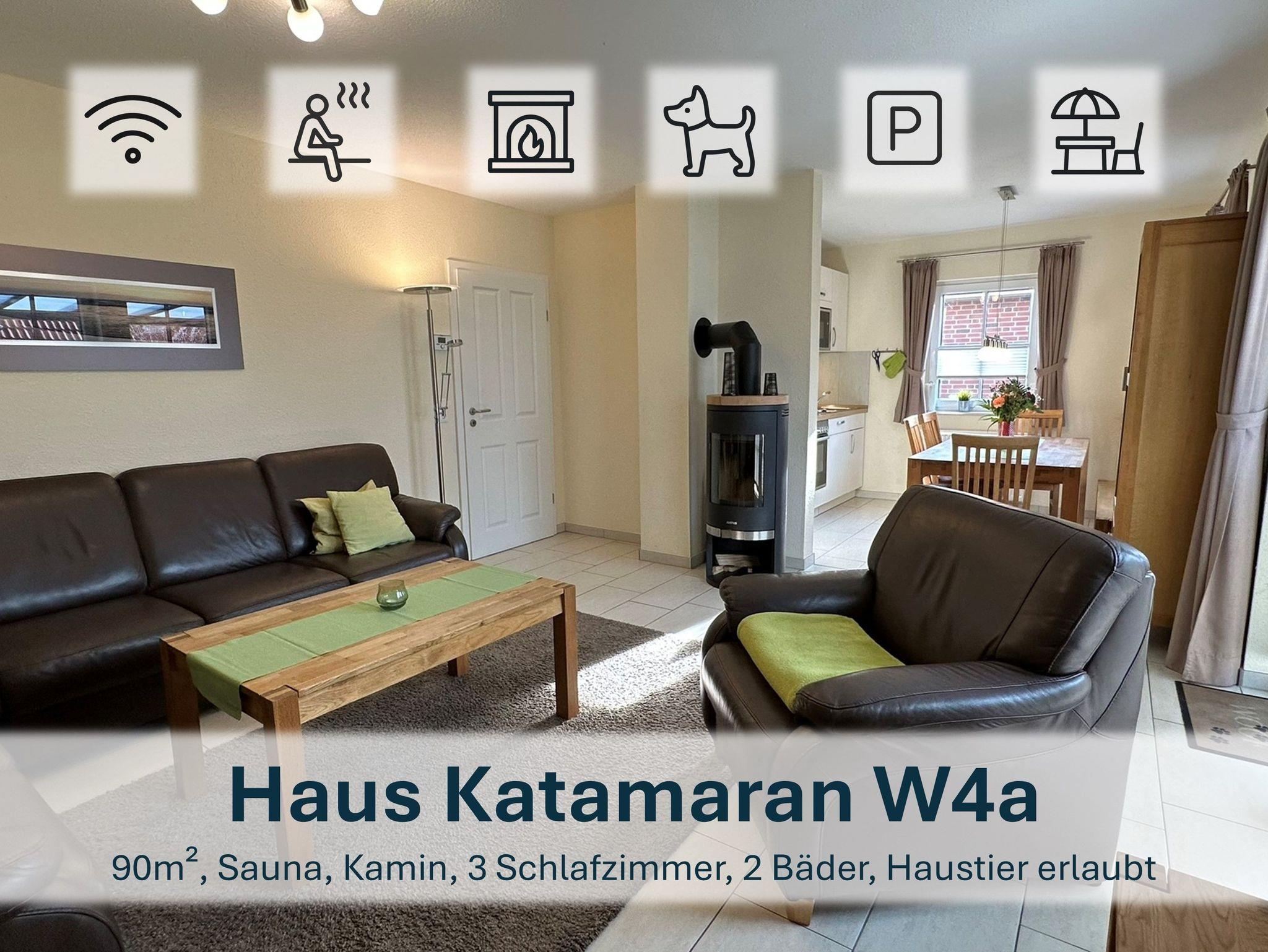 Erleben Sie Komfort und Entspannung im Ferienhaus Katamaran in Nordseebad Burhave mit Sauna und Kaminofen.