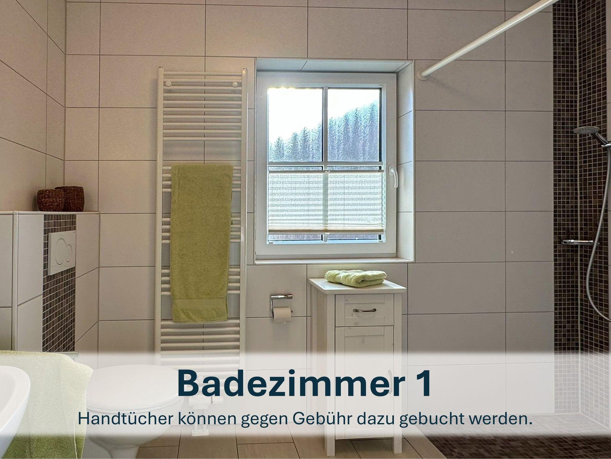 Zwischen den beiden Zimmern liegt das zweite Badezimmer mit Dusche, WC und Waschbecken.