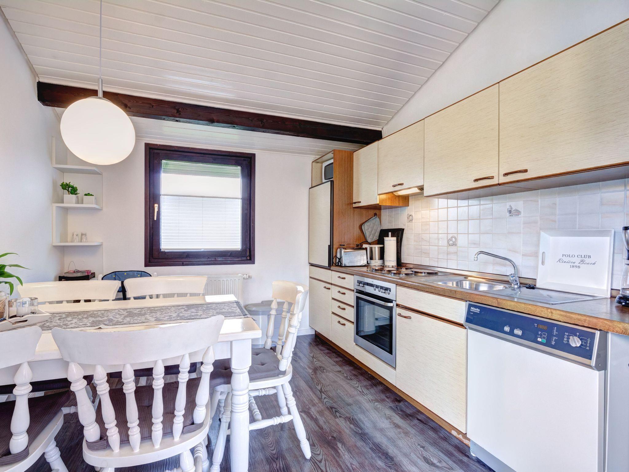 Anschließend am Wohnzimmer befindet sich eine komplett eingerichtete Küche. Auch erwartet Sie hier eine Terrasse. Genießen Sie beim Frühstücken oder Relaxen die Sonnenstrahlen und die frische Nordseeluft! Aber auch außerhalb der Hautsaison ist das Haus ein idealer Ausgangspunkt für Ihre Erkundungen an der Nordseeküste.