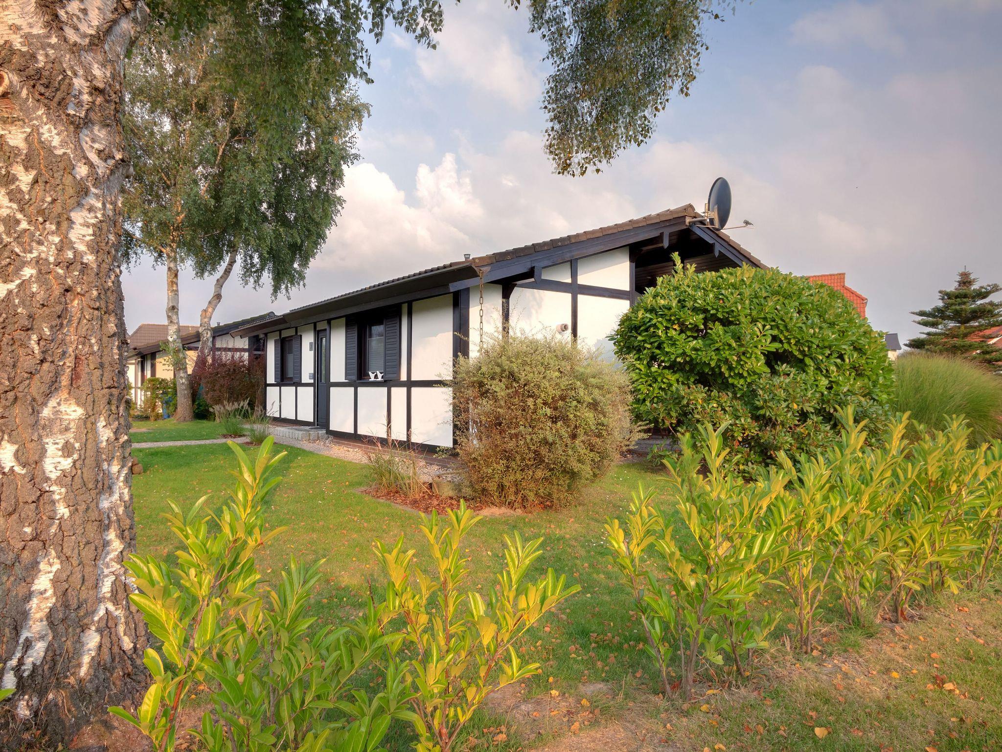 Angelehnt an den traditionellen Fachwerkstil verzaubert das Haus Silbersee nicht nur Freunde der Handwerkskunst. Der Kontrast aus dunklem Holz und der modernen Ausstattung verleiht dem Haus einen besondere Charme. In dem freistehenden Bungalow mit Flachdach finden bis zu 5 Personen Platz. Im großzügigen Wohnraum mit angeschlossener Küche sorgen bodentiefe Fenster für einen angenehmen Lichteinfall. Handverlesene Accessoires und Dekoelemente versetzen Sie gleich bei der Ankunft in Urlaubsstimmung. Für süße Träume sorgen die gemütlichen Betten in den beiden Schlafräumen. Diese sind mit einem Doppelbett bzw. zwei Einzelbetten und einem Hochbett ausgestattet. Sonnenstunden genießen Sie am besten auf der Außenterrasse, wobei Sie durch geschickte Begrünung vor den Blicken der Nachbarn abgeschirmt werden. Zur Verfügung steht Ihnen außerdem ein Abstellraum. Falls Sie mit dem PKW anreisen, können Sie diesen direkt vor dem Haus parken.